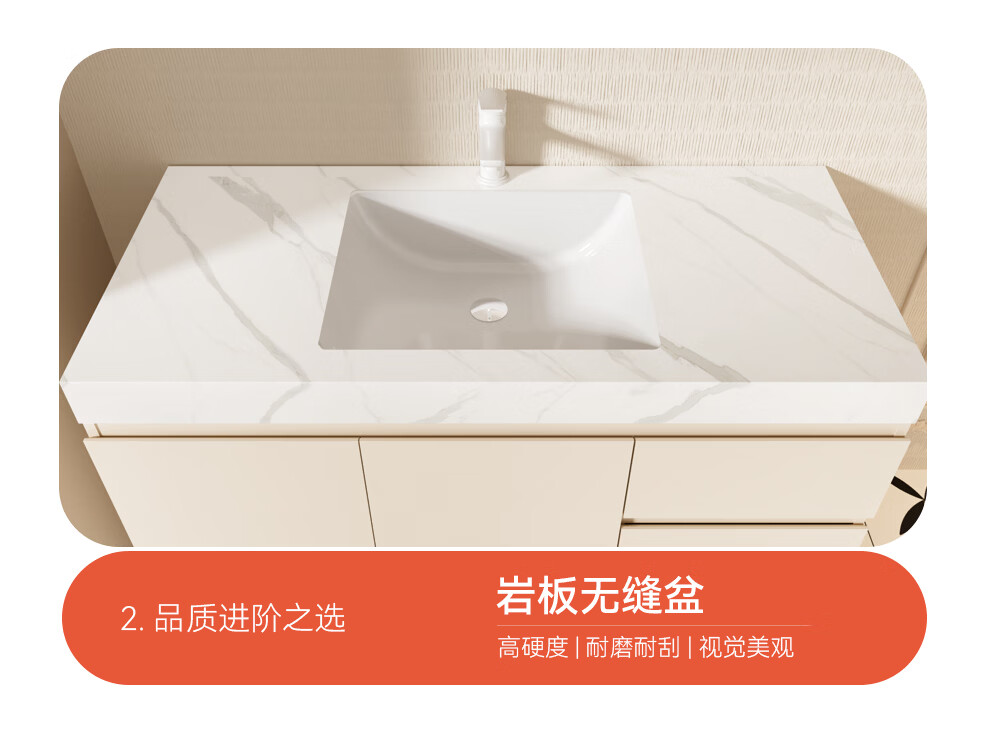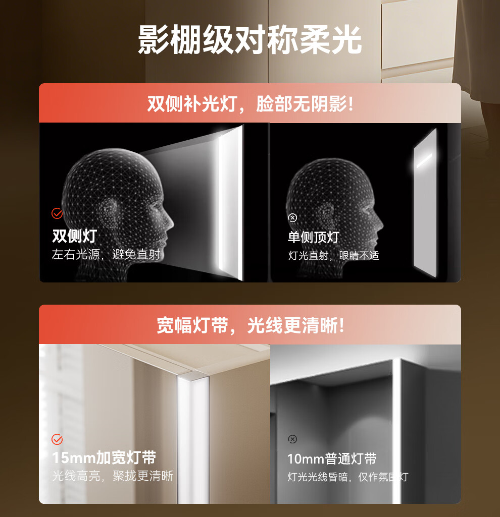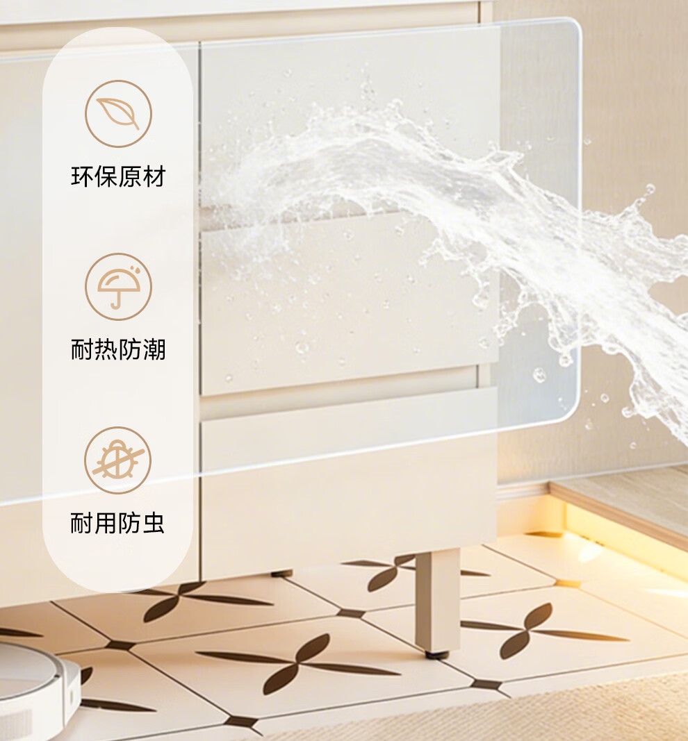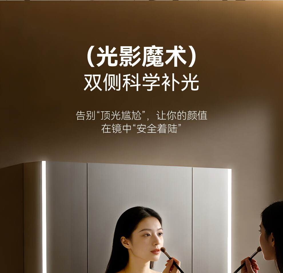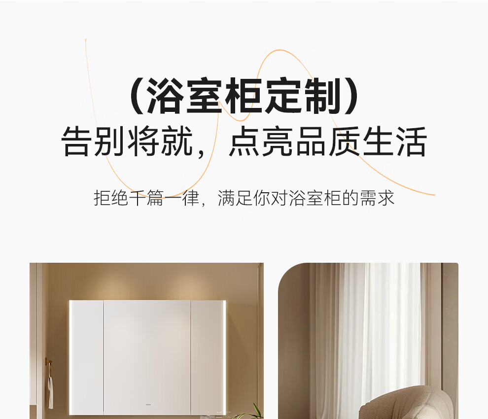 浪鲸(SSWW)卫浴新款奶油风浴室柜陶瓷一体盆多层实木落地智能浴柜可定制0410 环绕灯智能镜柜丨美妆架+除雾+陶瓷盆-80cm 不含龙头