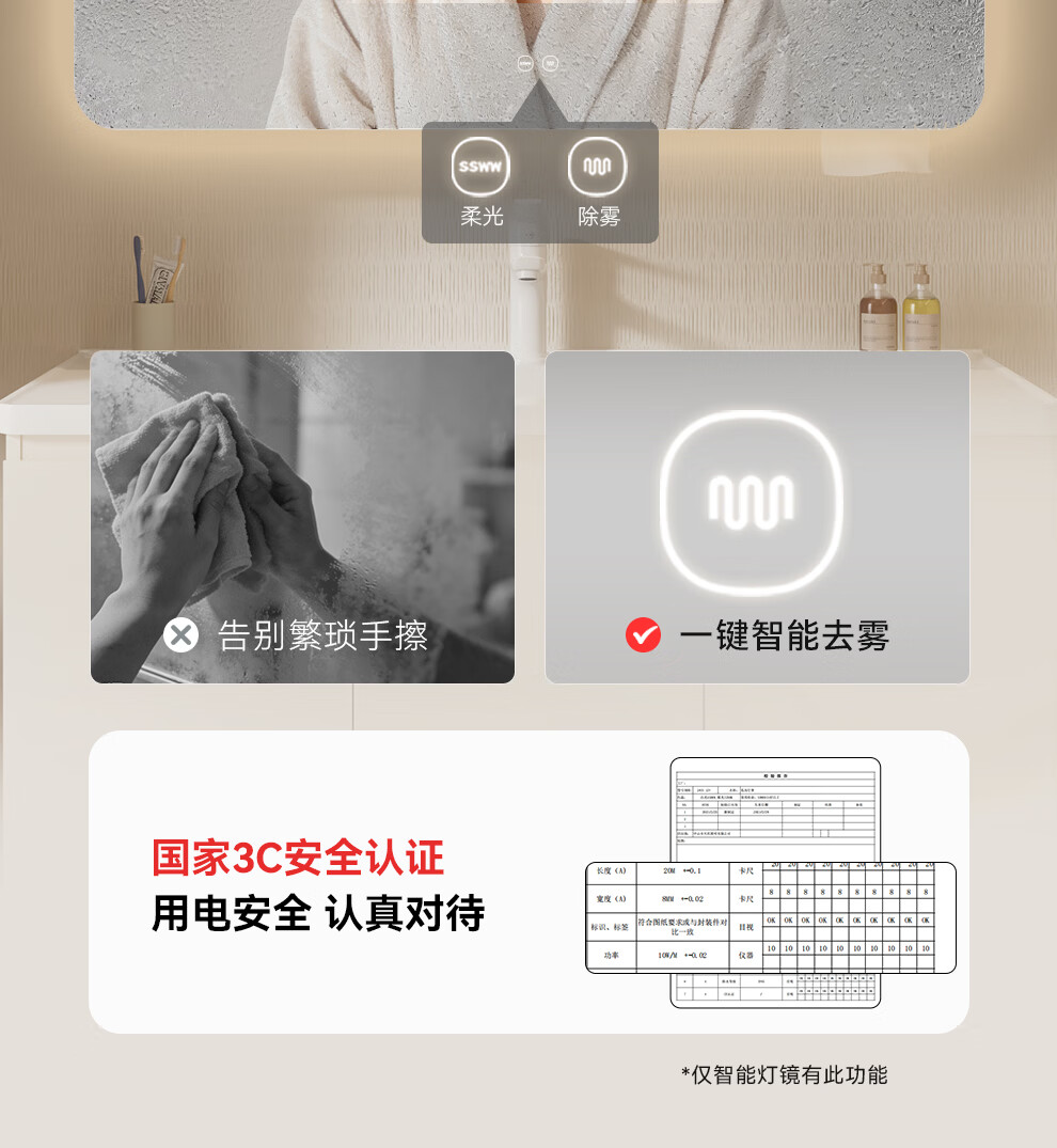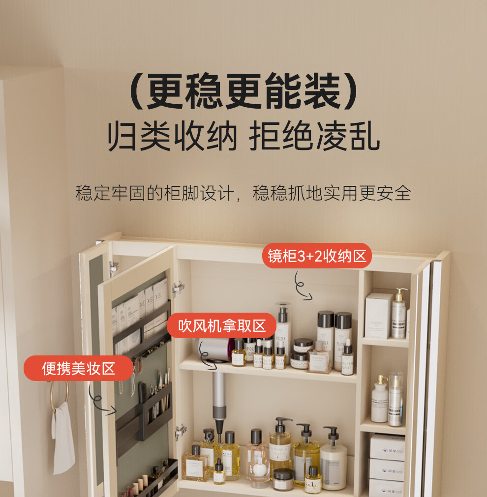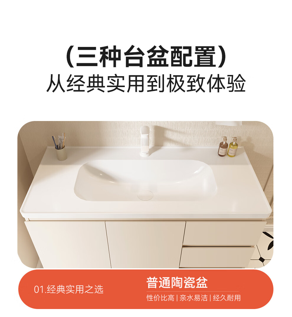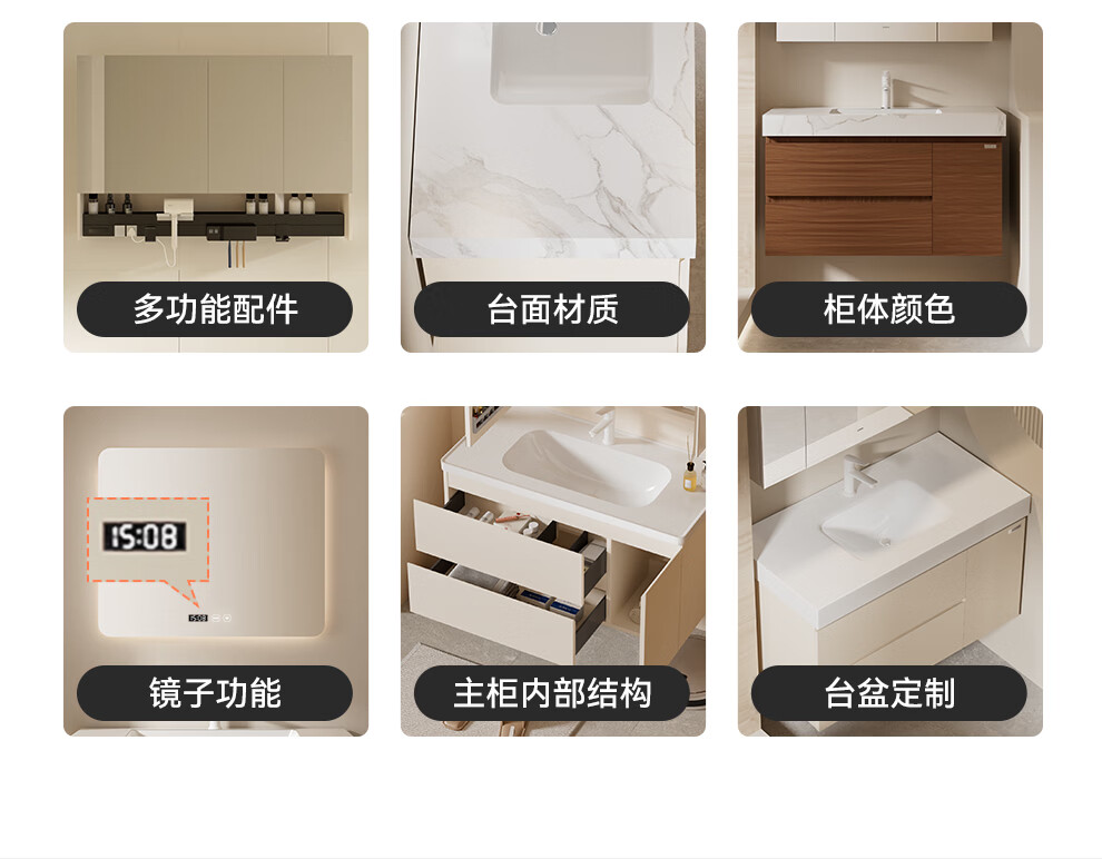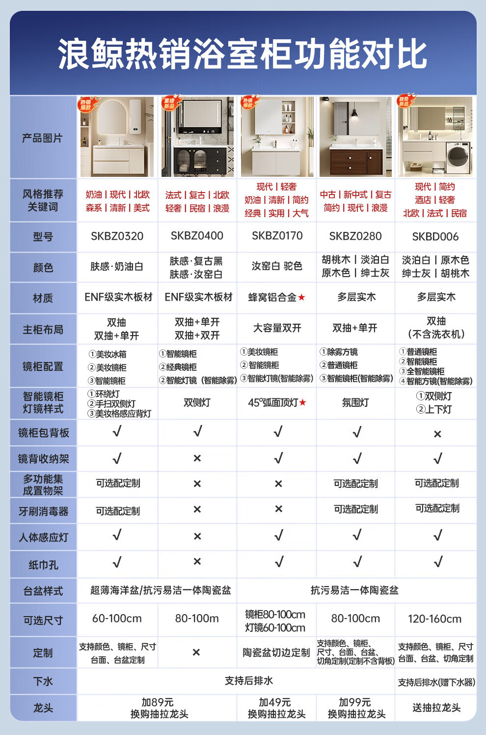 浪鲸(SSWW)卫浴新款奶油风浴室柜陶瓷一体盆多层实木落地智能浴柜可定制0410 环绕灯智能镜柜丨美妆架+除雾+陶瓷盆-80cm 不含龙头