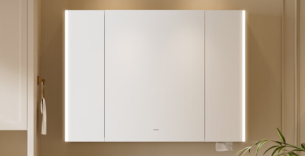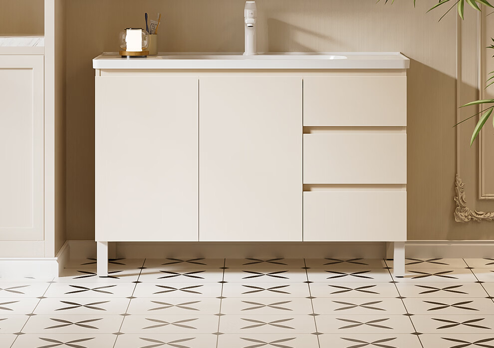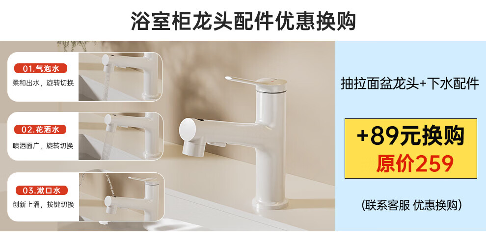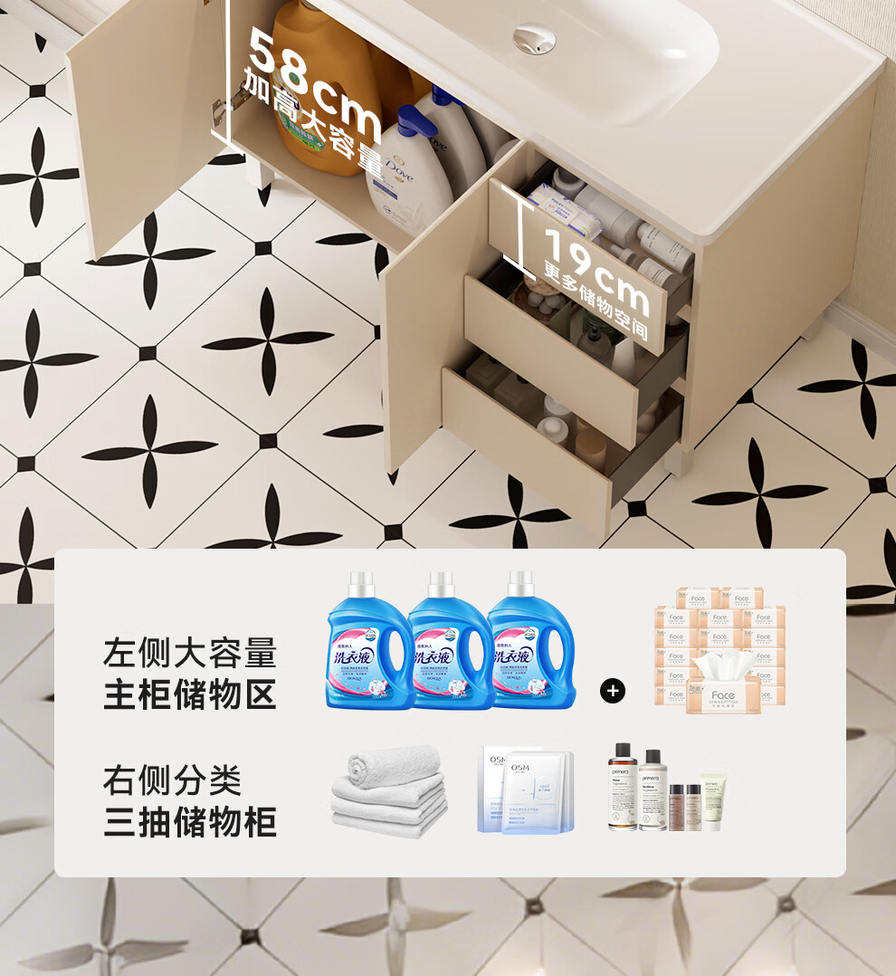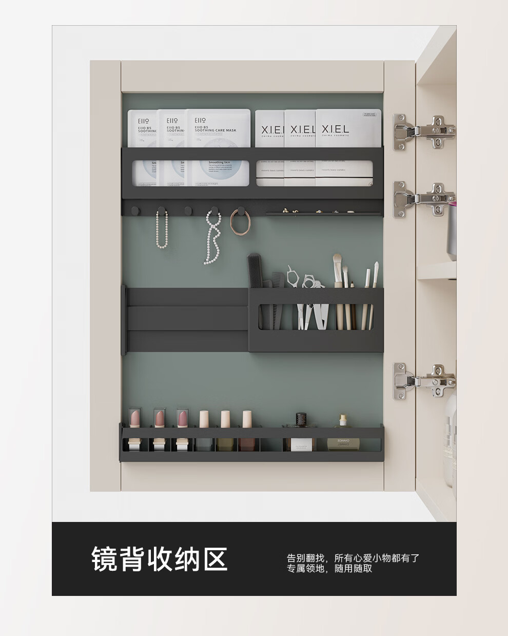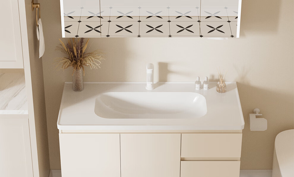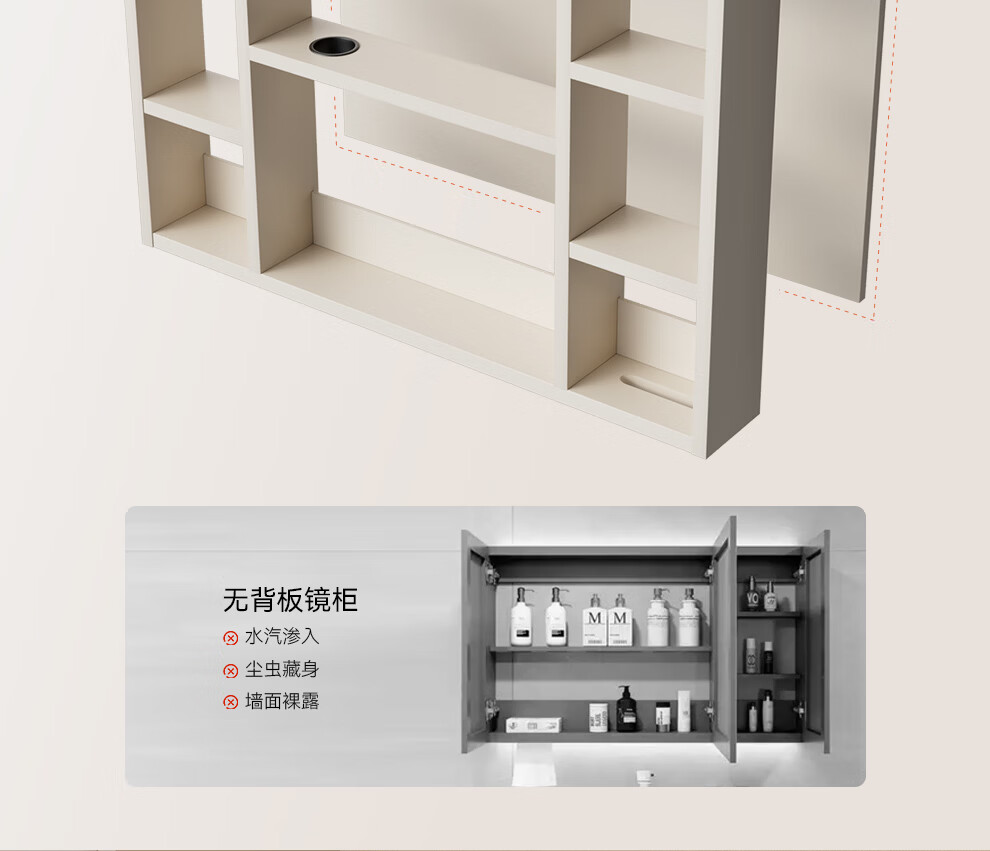 浪鲸(SSWW)卫浴新款奶油风浴室柜陶瓷一体盆多层实木落地智能浴柜可定制0410 环绕灯智能镜柜丨美妆架+除雾+陶瓷盆-80cm 不含龙头