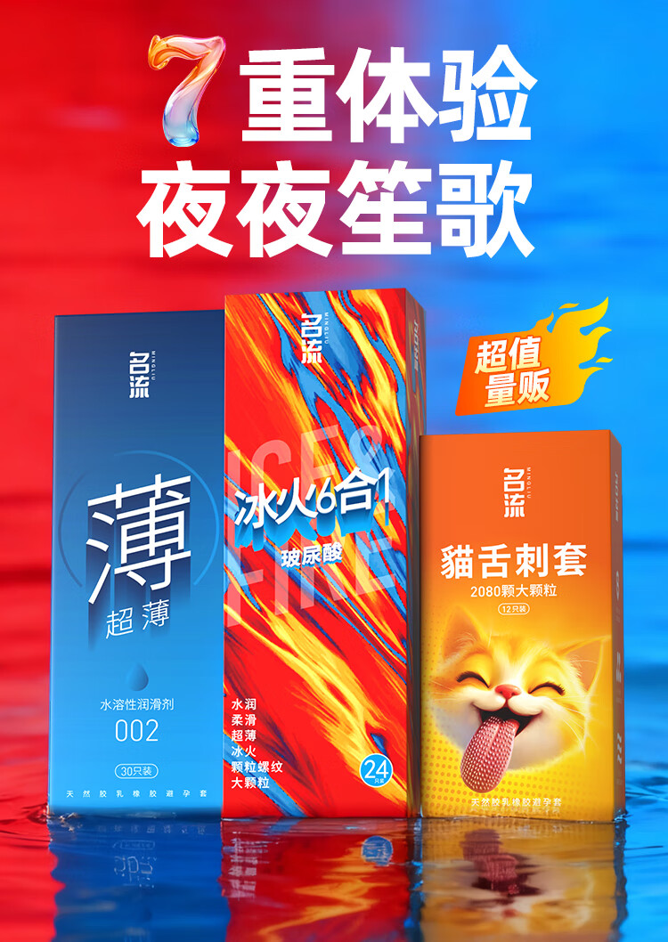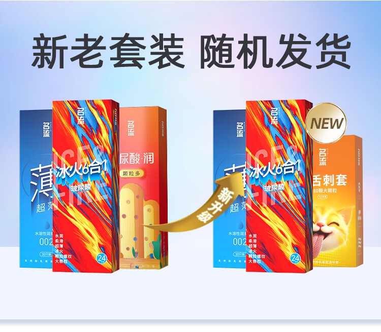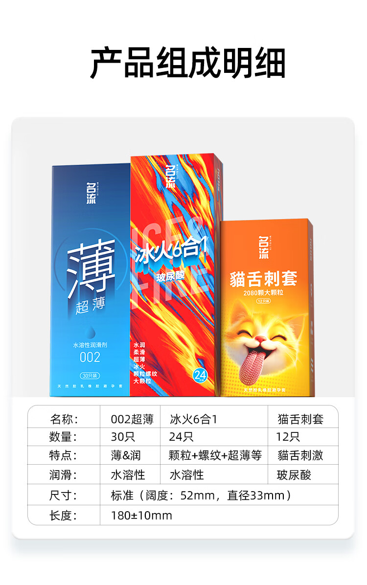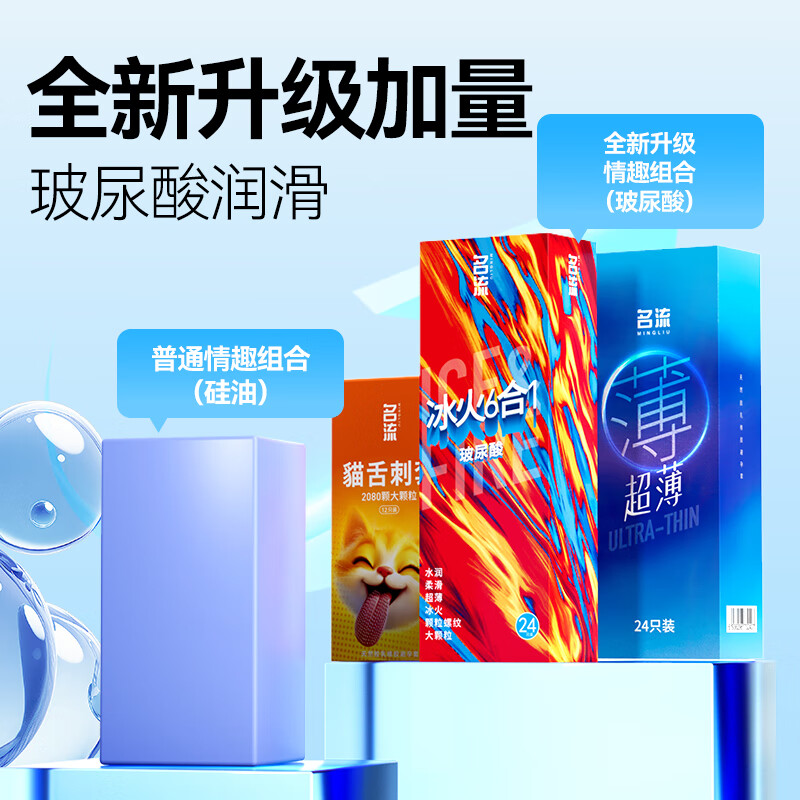 名流避孕套超薄安全套套玻尿酸狼牙颗粒螺纹66只男女性计生用品年货