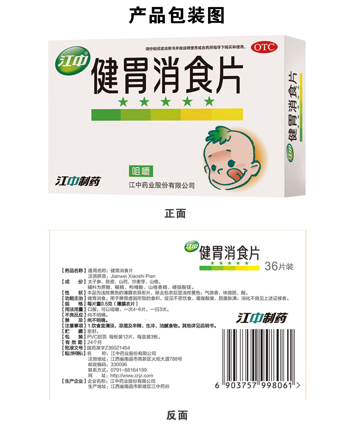 【儿科好药】江中 健胃消食片 36片/盒 儿童 肠胃消 健脾胃 消食健胃 消食化积 脾胃调理 儿童消化不良 积食