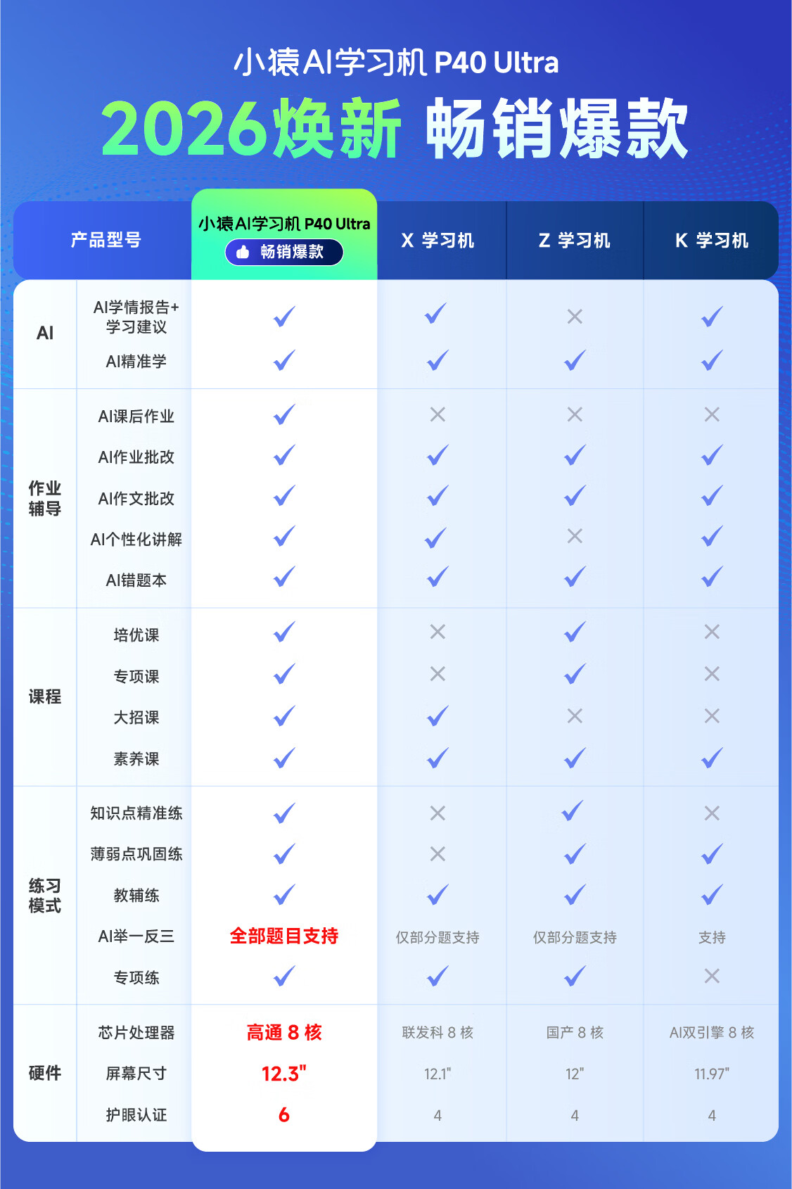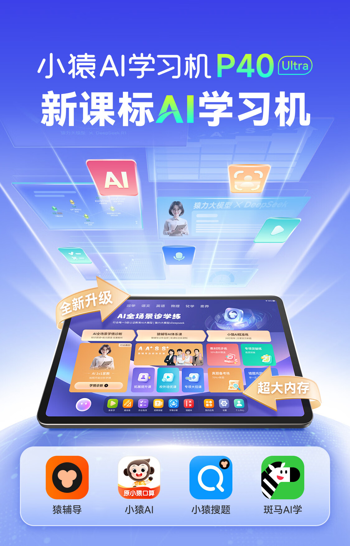 小猿AI学习机P40Ultra2026焕新版【国家补贴85折】1v1全能家教 猿辅导学练机平板护眼屏12.3英寸8+256G
