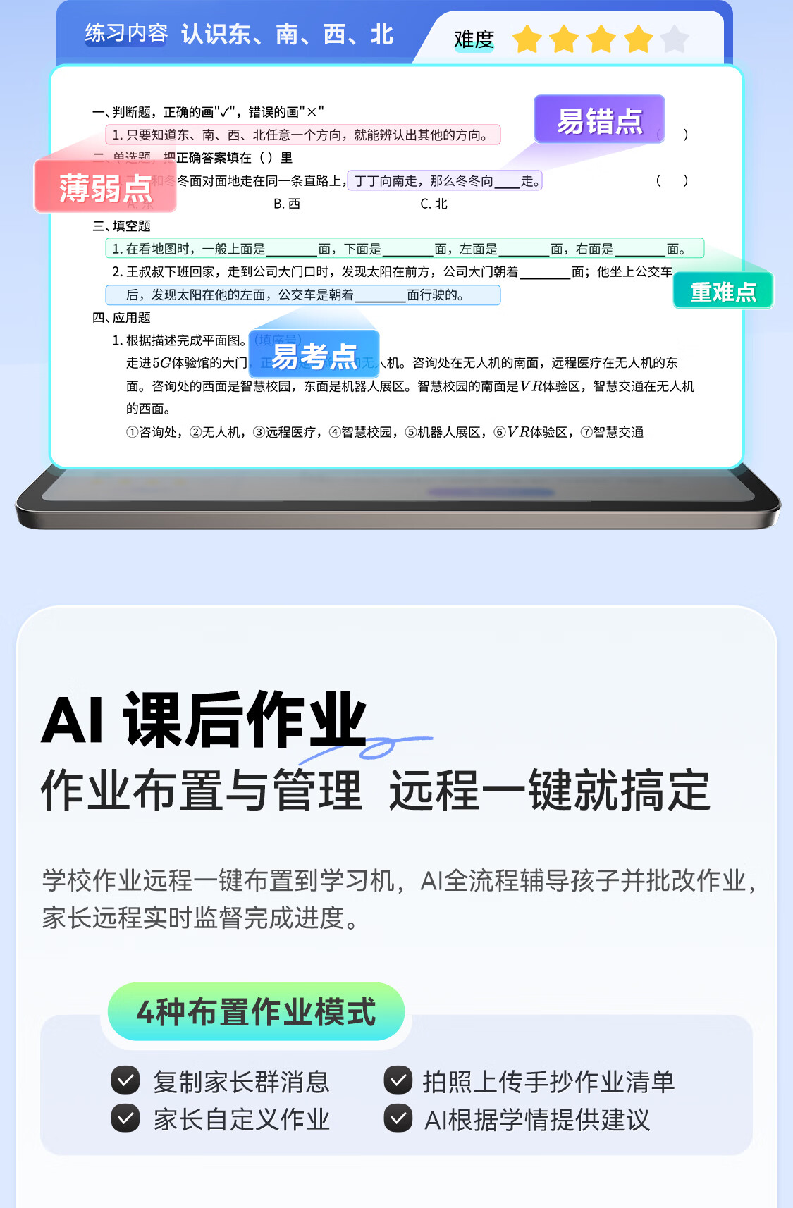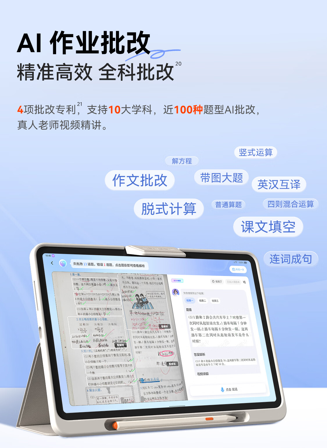 学而思学习机T4 小思AI老师1对1三种智能学习场景纸屏互动学习平板全学段 13.2英寸 8+256GB