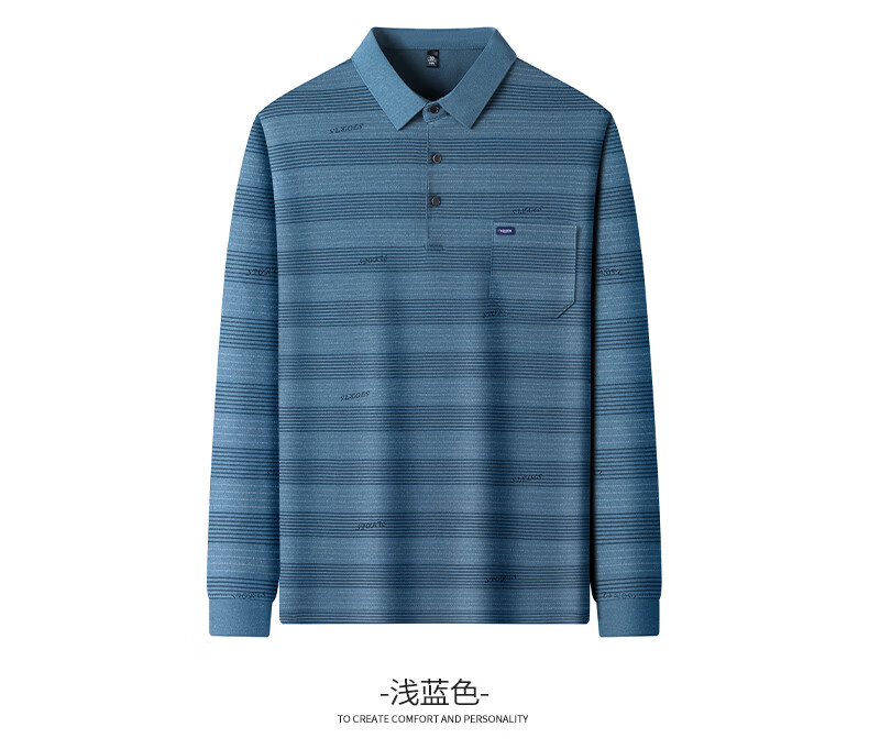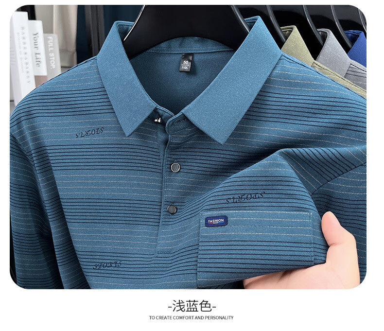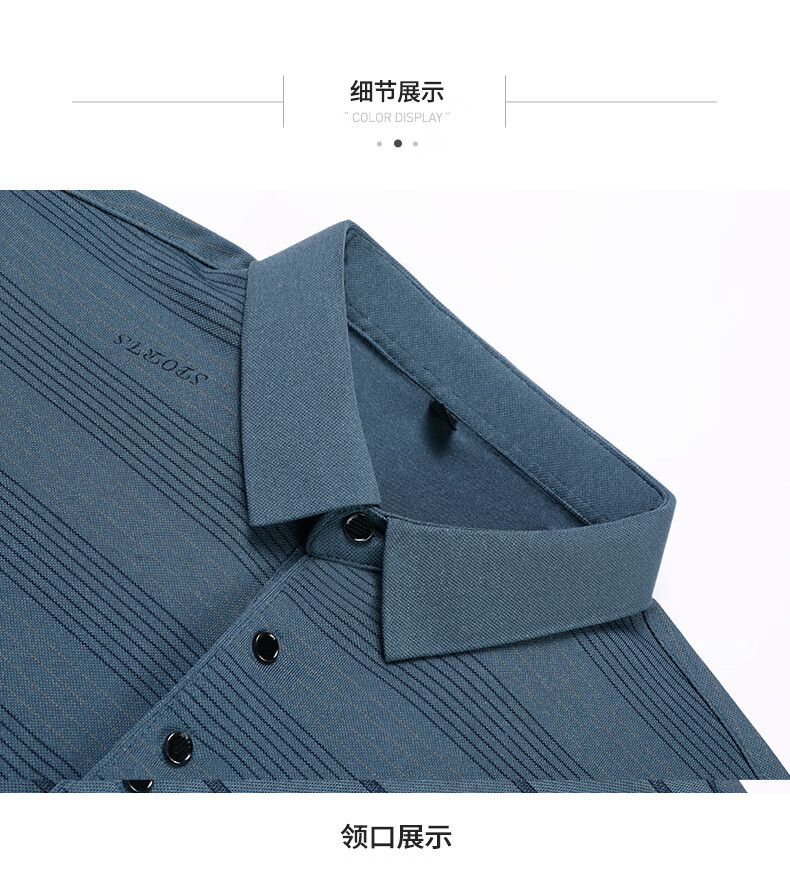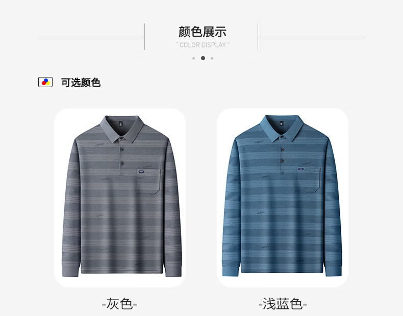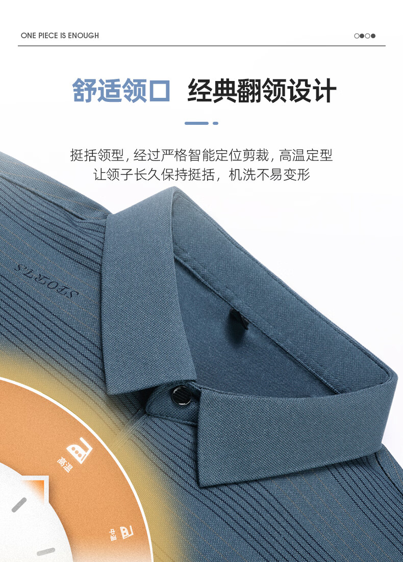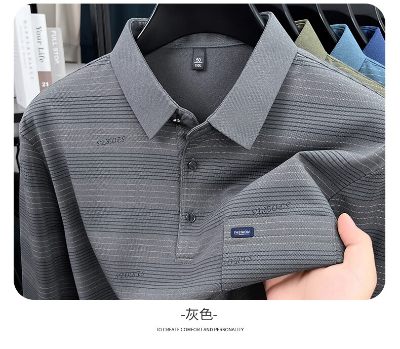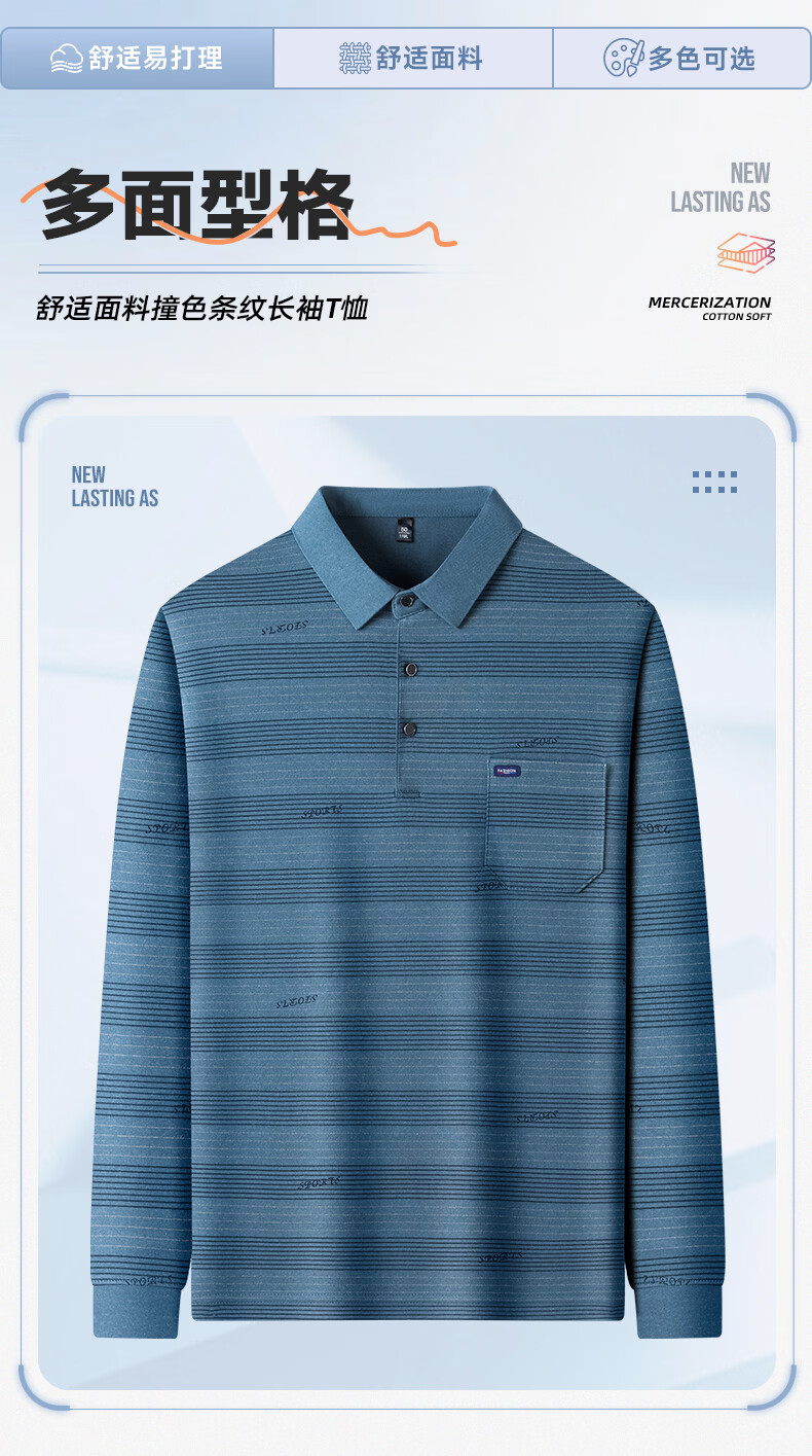 SHANSHAN杉杉长袖T恤男士春季新款商务休闲条纹爸爸装通勤Polo打底上衣 灰色 M /170