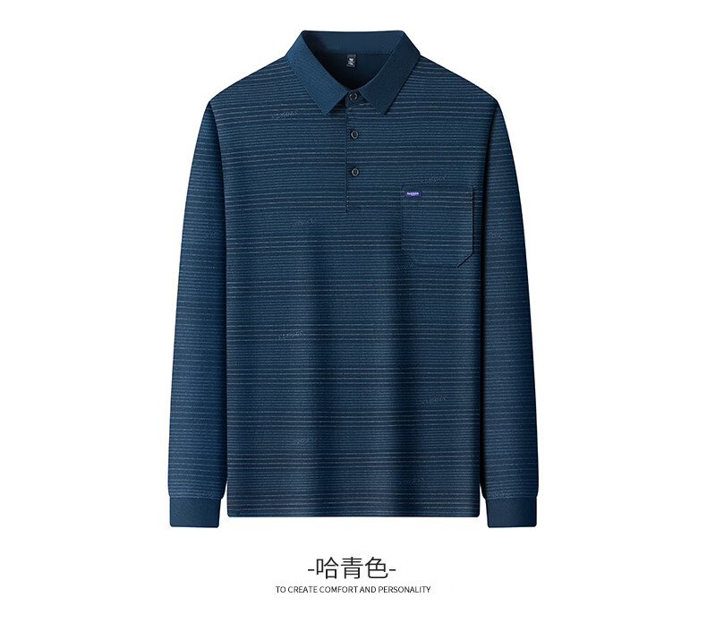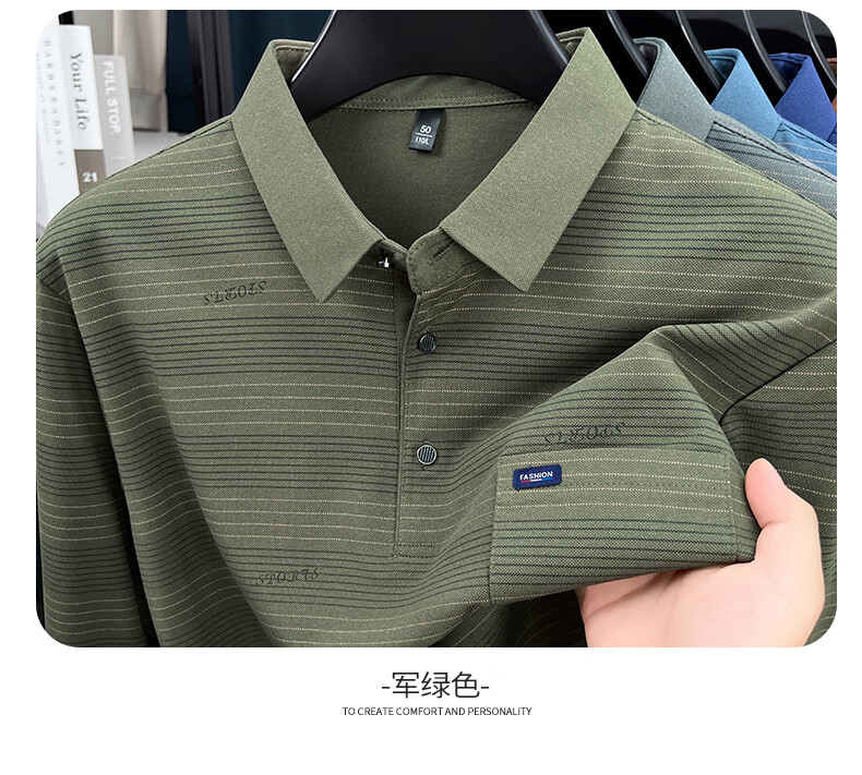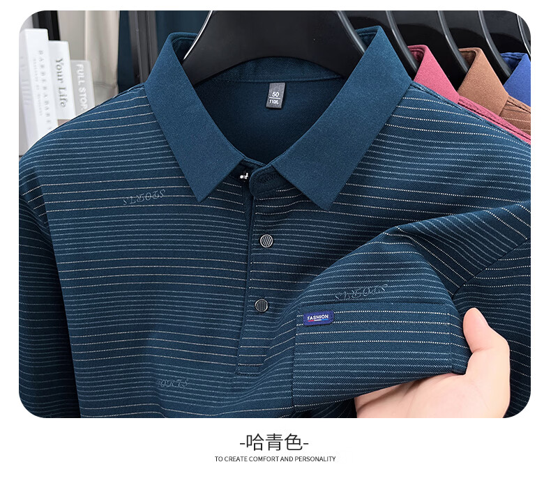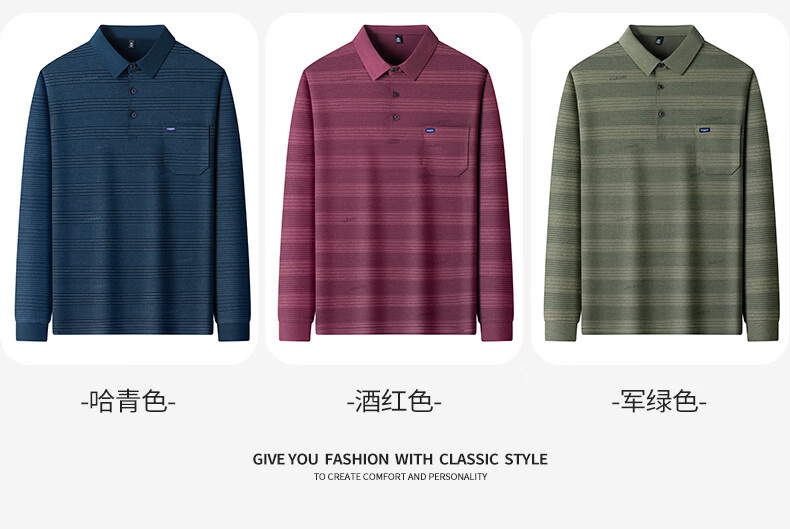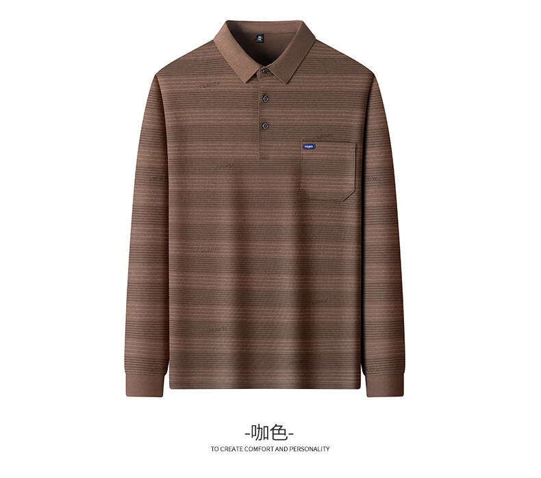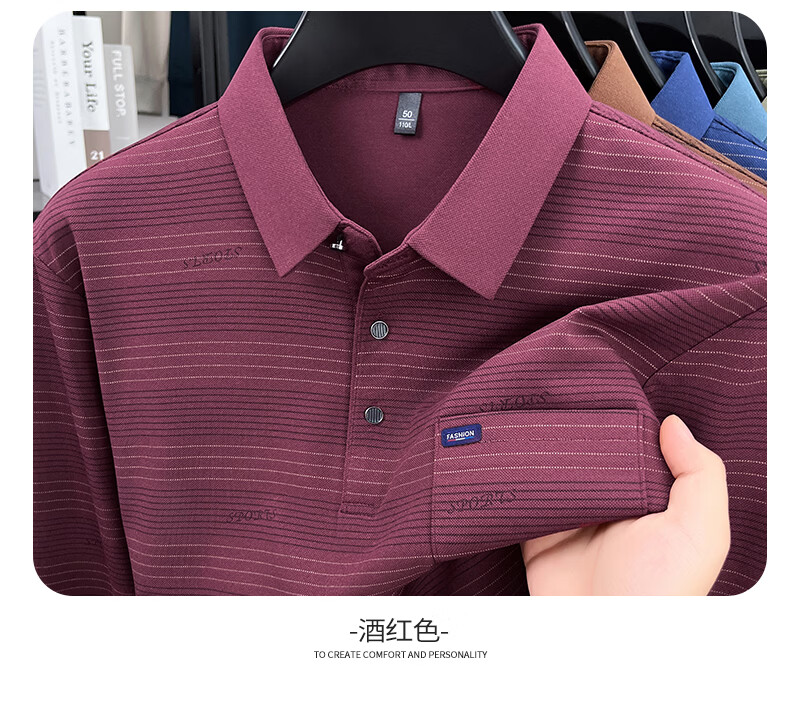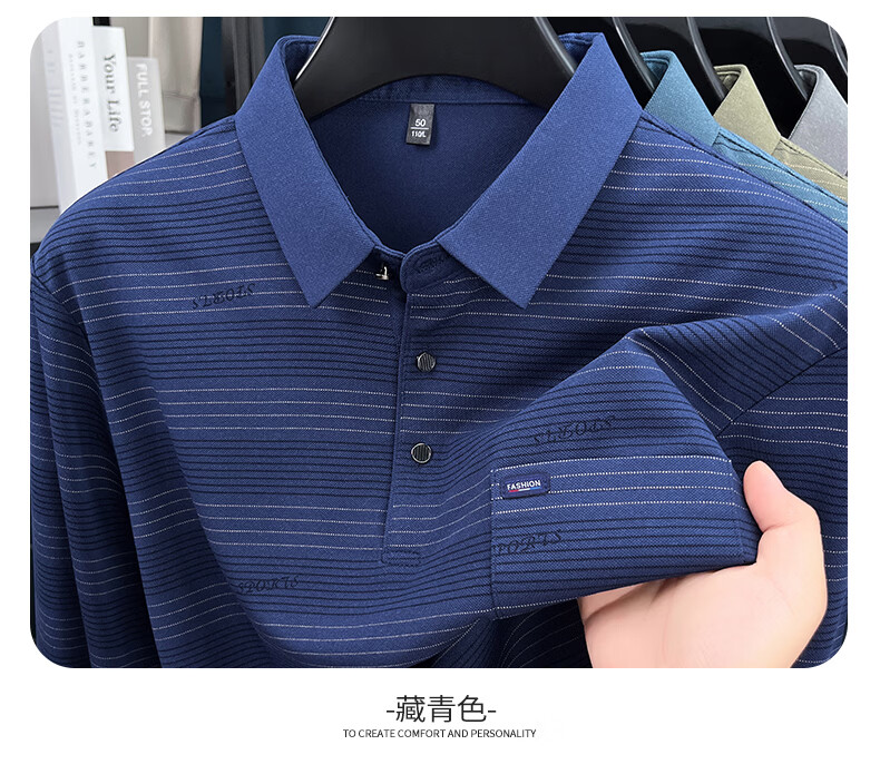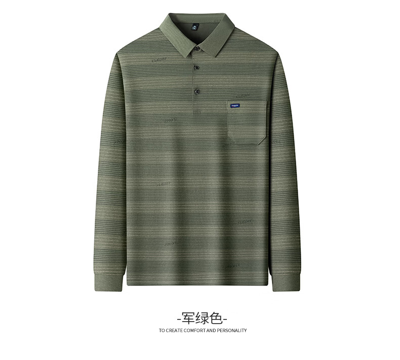 SHANSHAN杉杉长袖T恤男士春季新款商务休闲条纹爸爸装通勤Polo打底上衣 灰色 M /170
