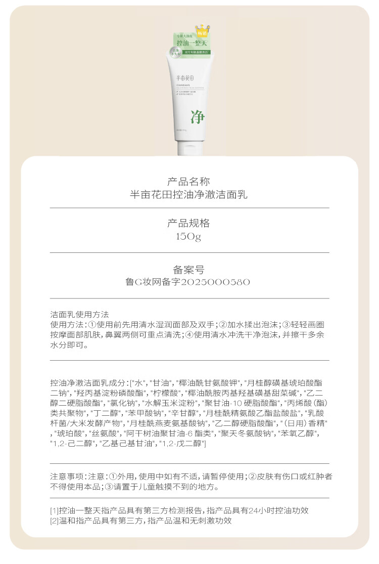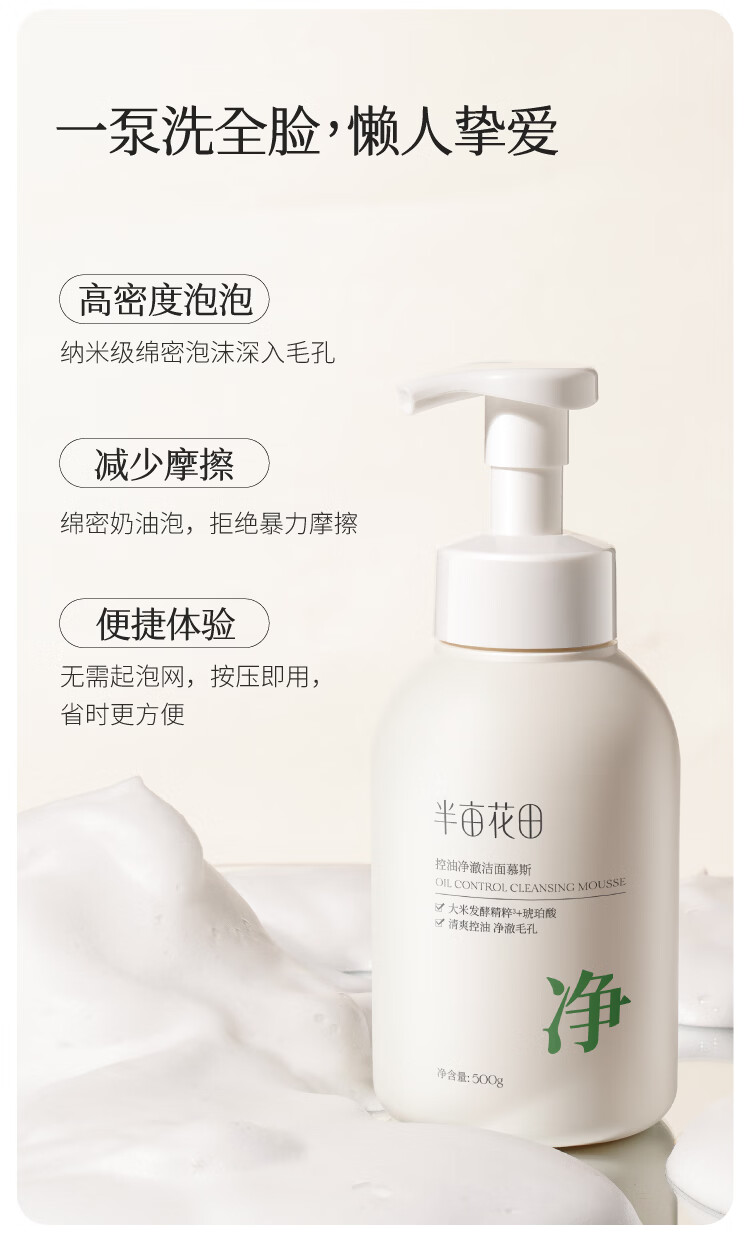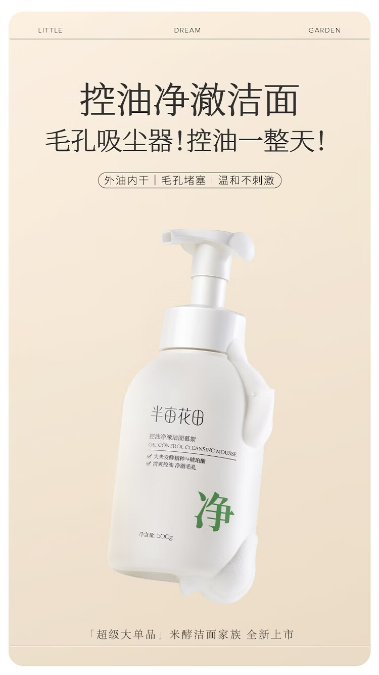屈臣氏半亩花田控油净澈洁面乳 洁面 500g 洁面慕斯