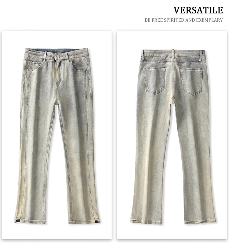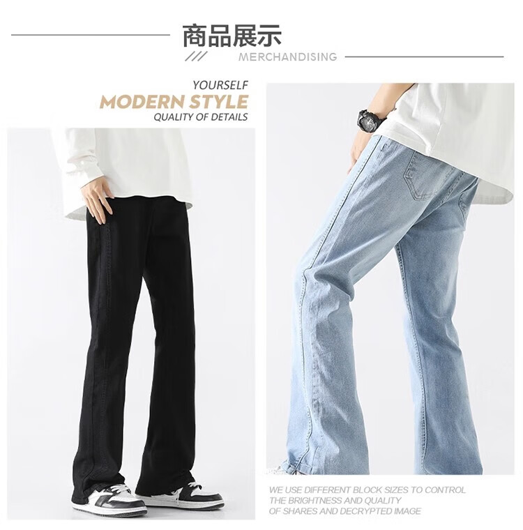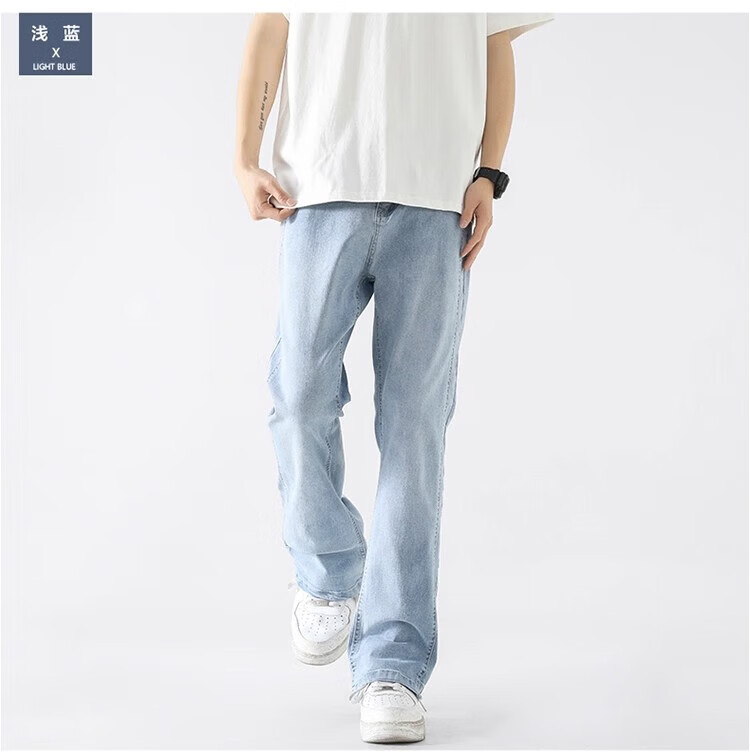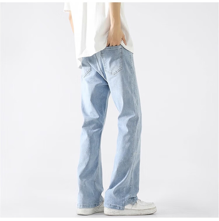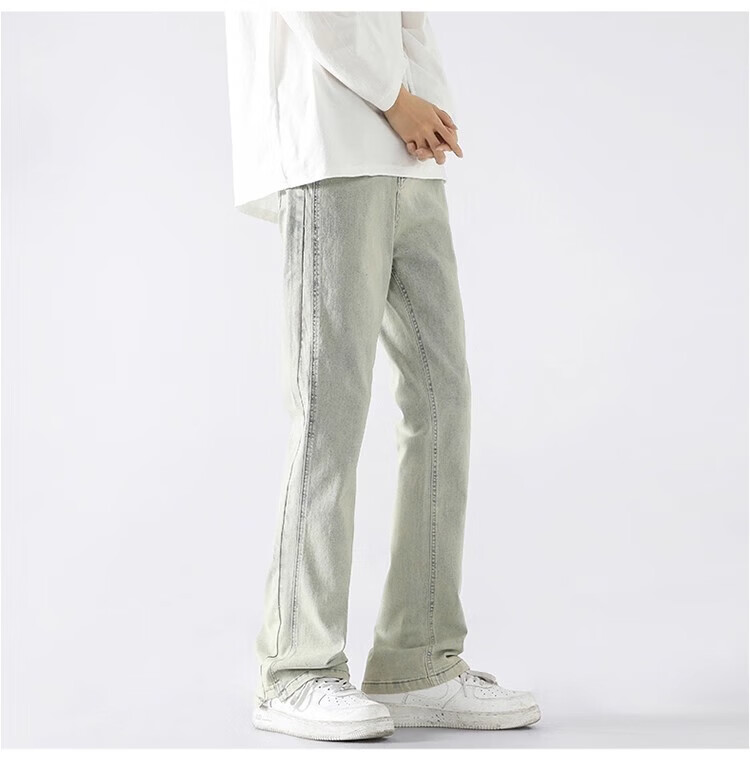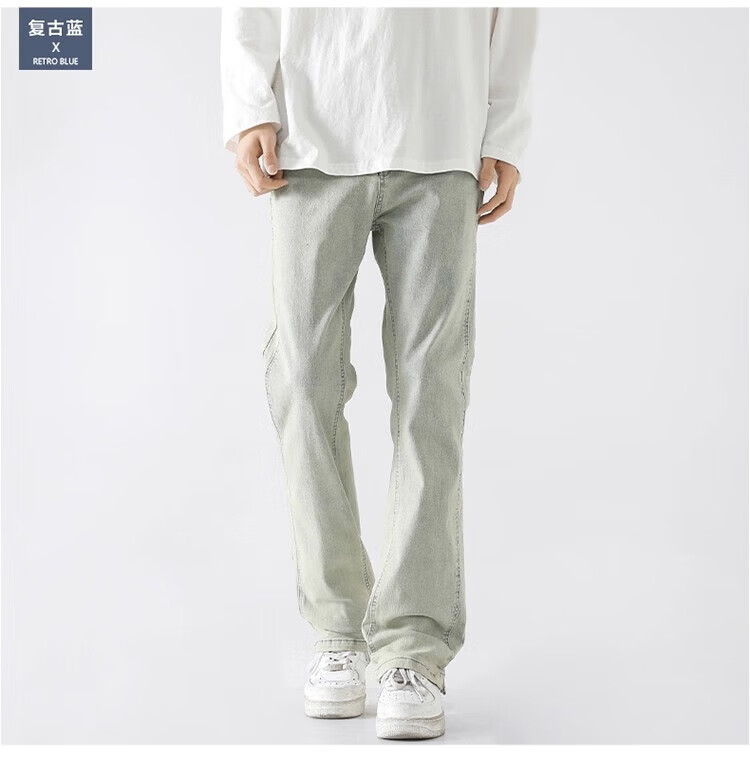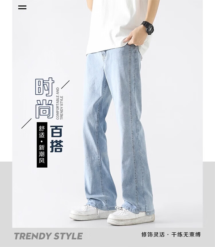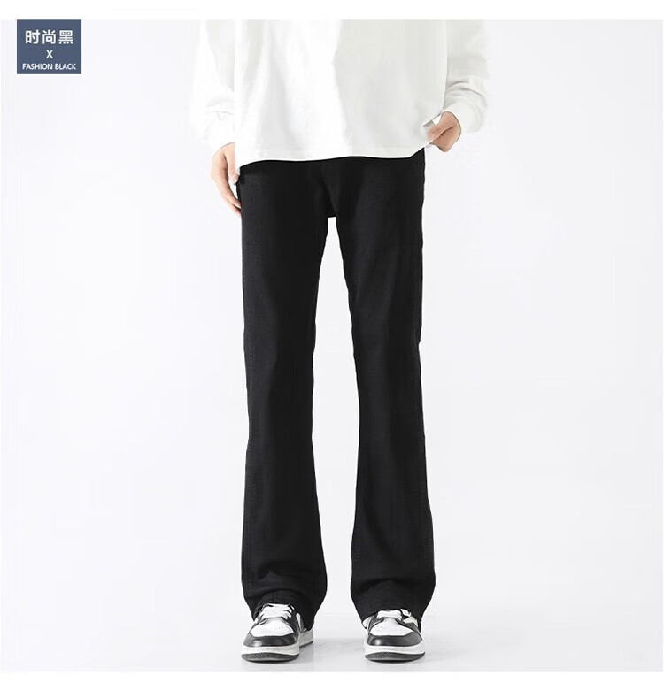 真维斯(Jeanswest)2026新款美式高街浅色微喇牛仔裤男士简约直筒潮流秋冬休闲长裤子 黑色 XL