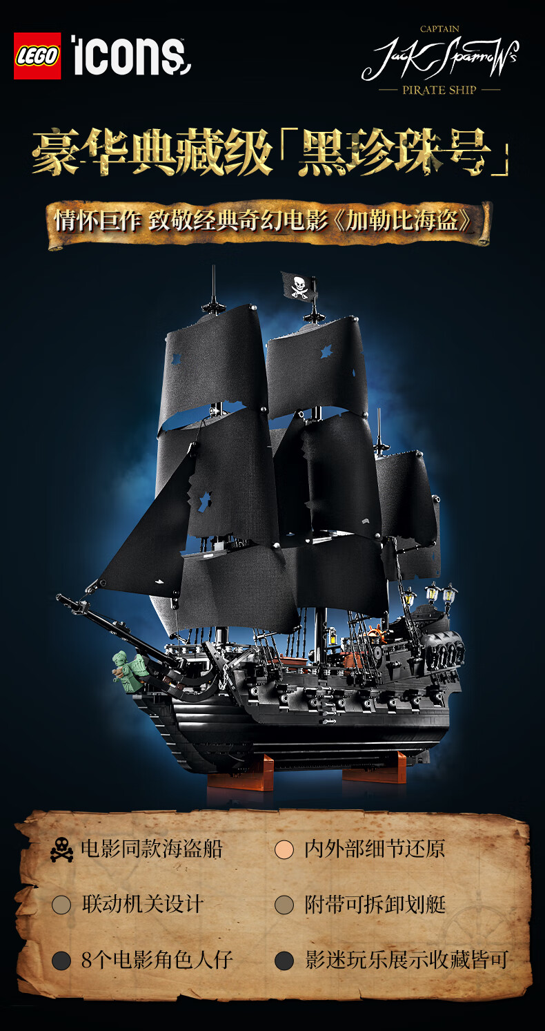 乐高积木 黑珍珠号 10365杰克·史派罗船长的海盗船 生日礼物