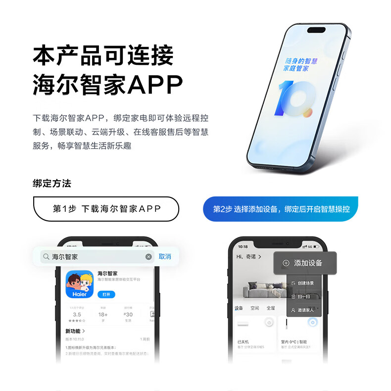 海尔空气炸锅家用多功能 双热源 可视电子触控 大容量全金属内腔 APP远程智控 7L 智家APP操控HSAF-EV703BU1