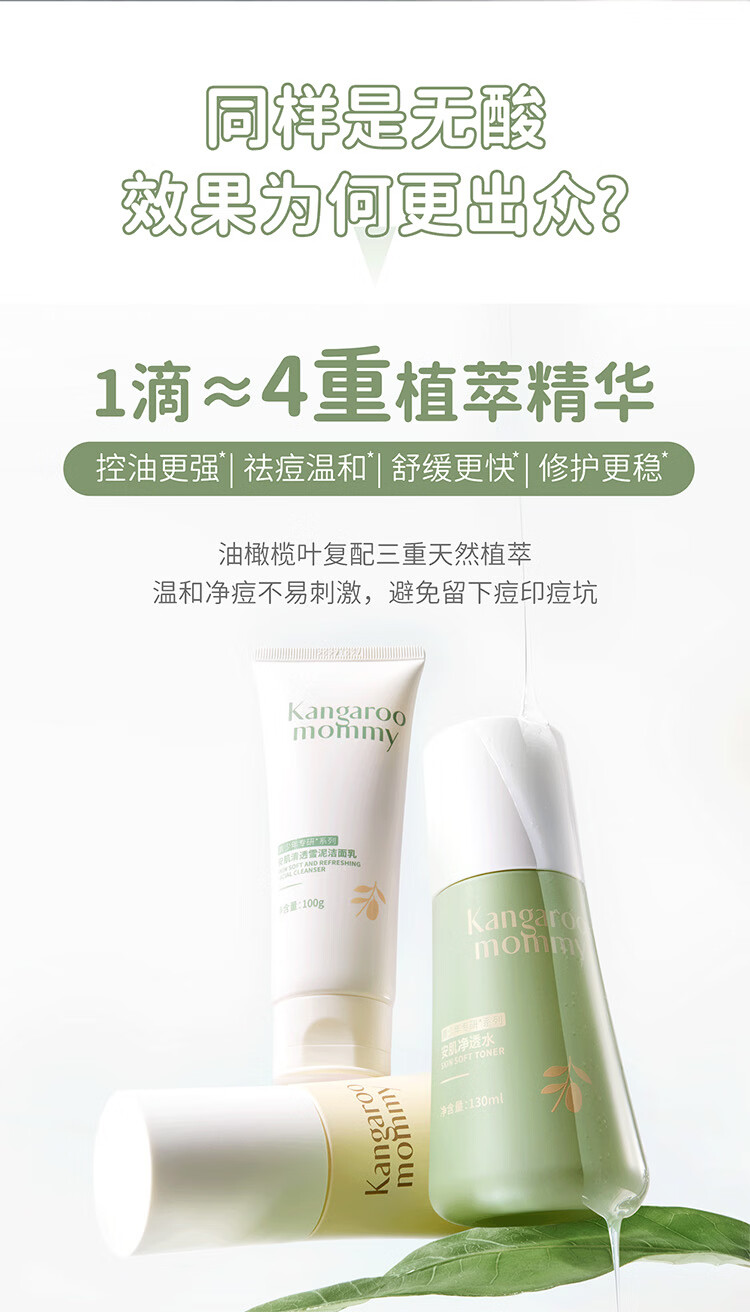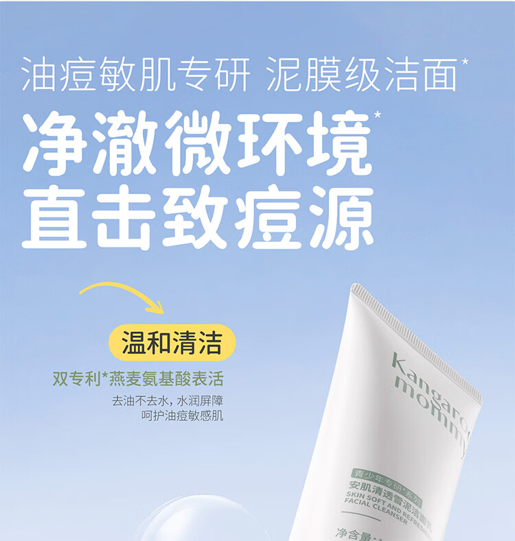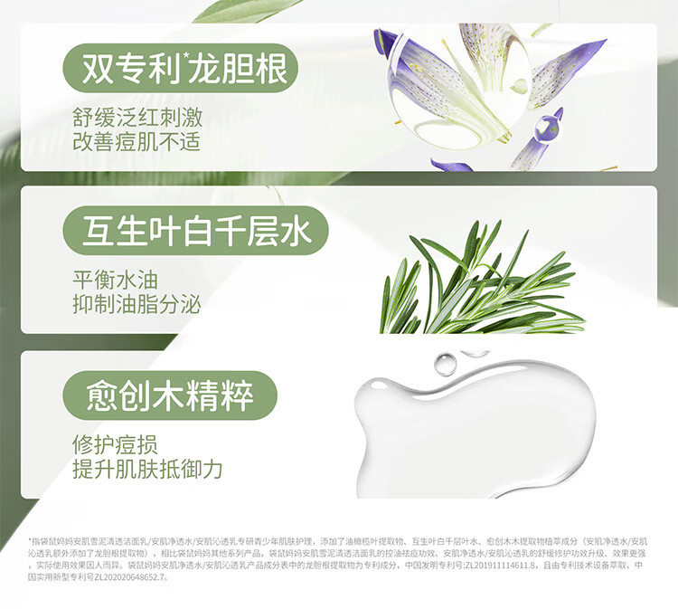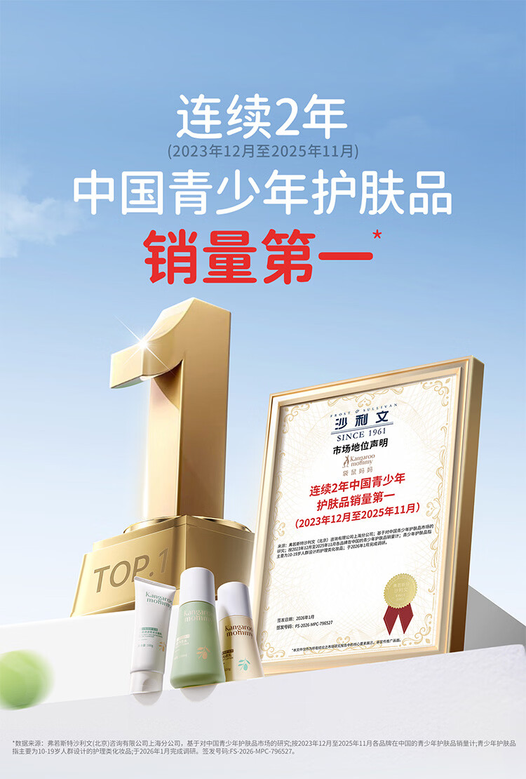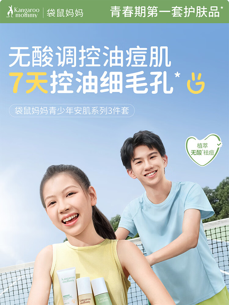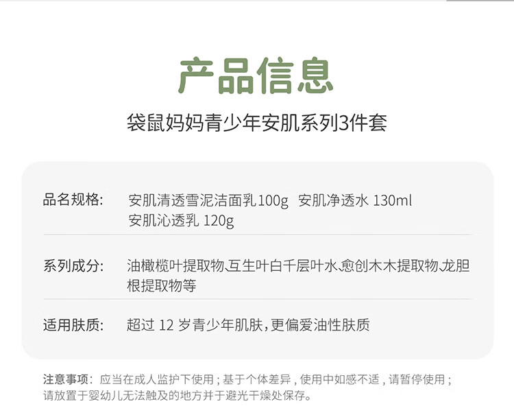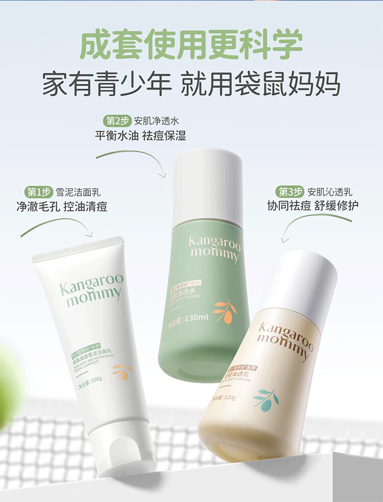 袋鼠妈妈青少年洁水乳三件套护肤组合清爽保湿补水滋润组合男女通用12岁+ 【到手】洁80g+水145ml+乳130g(热卖)