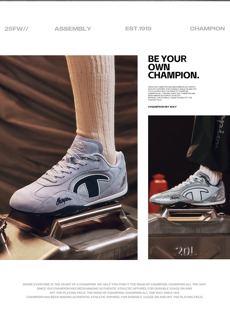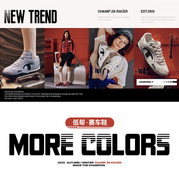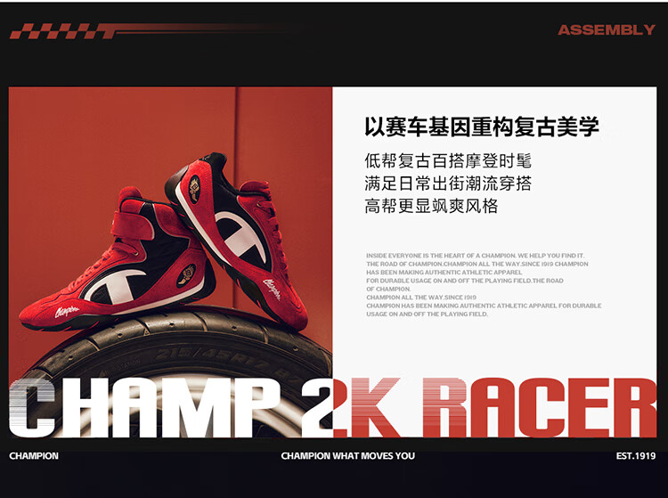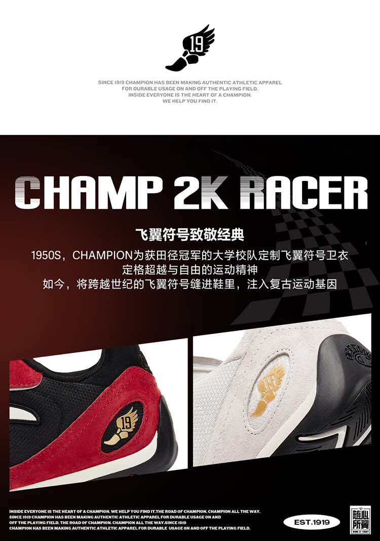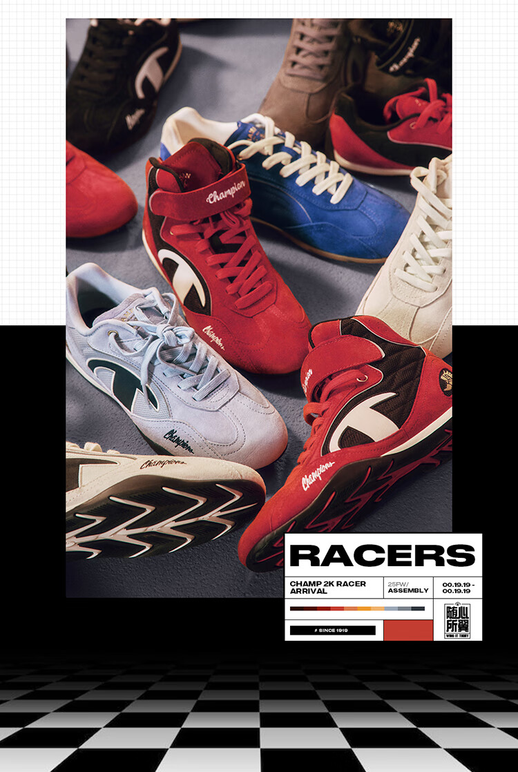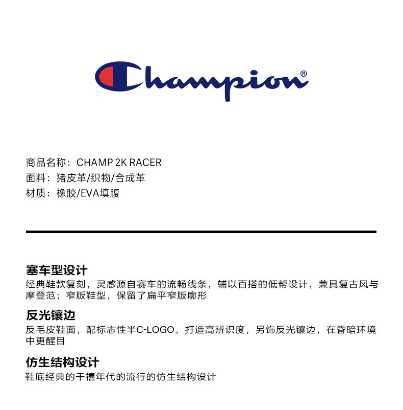 Champion美国冠军2025丁禹兮同款跑鞋女男 复古运动休闲赛车鞋25FWR04