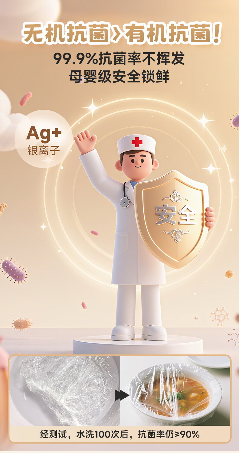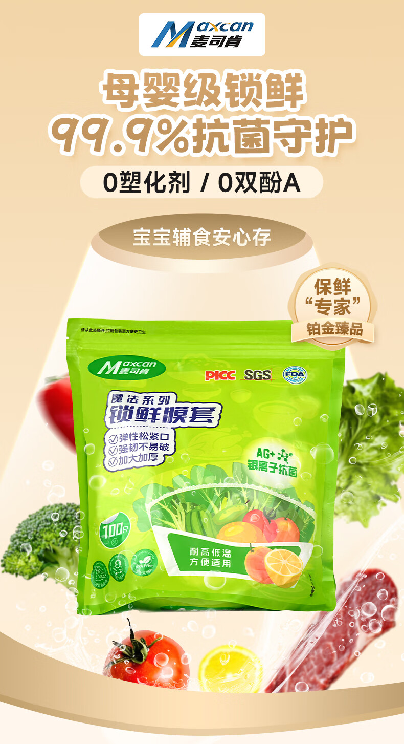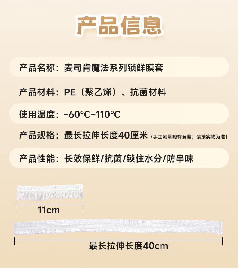 麦司肯【官方正品】锁鲜膜罩套保鲜膜套罩食品保鲜袋松紧口保鲜膜盖碗罩 【锁鲜抗菌款】400只