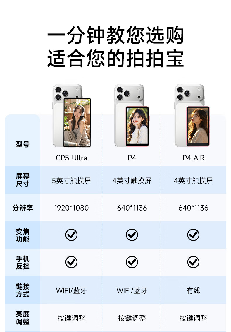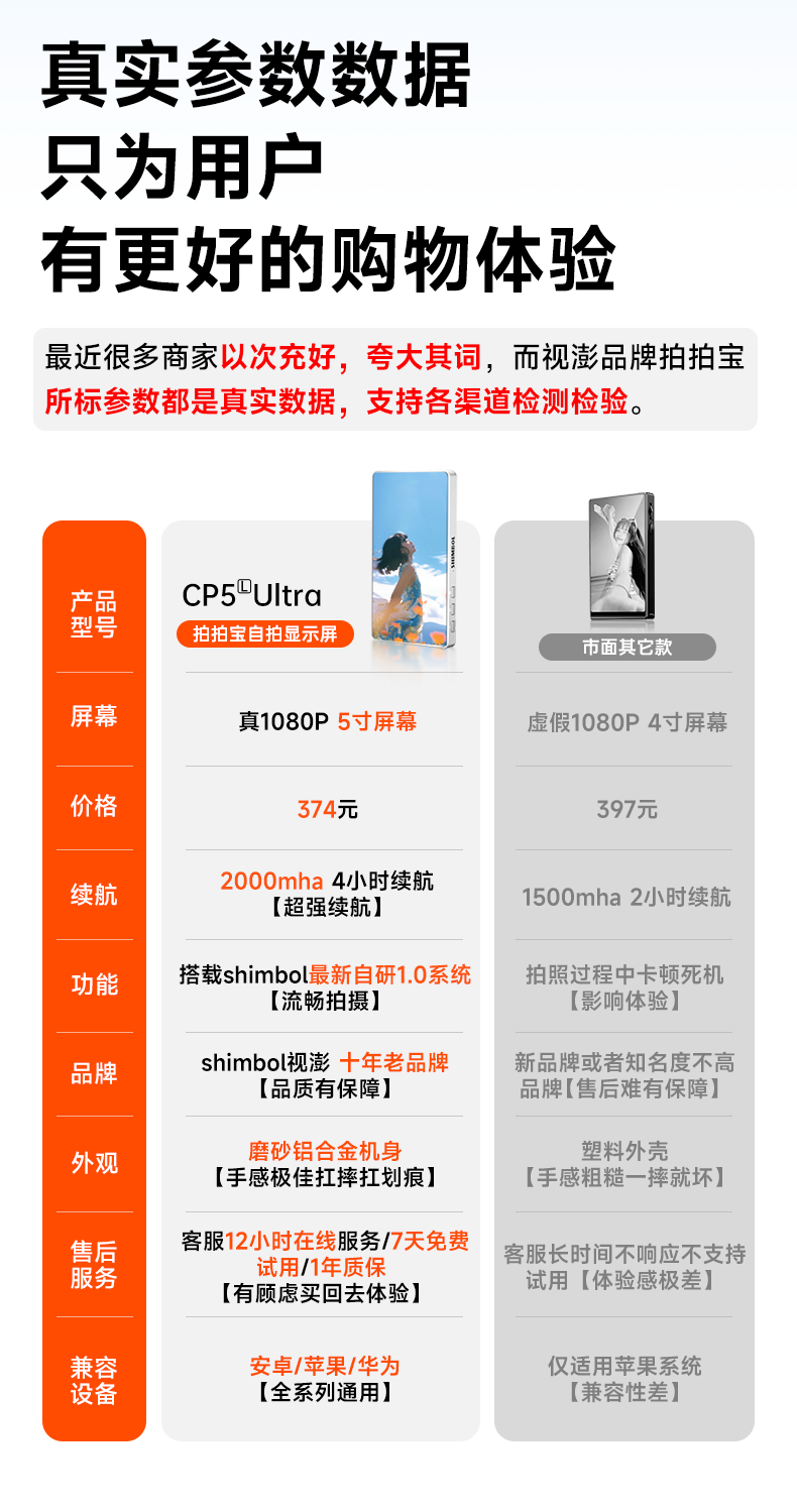SHIMBOL视澎CP5Ultra【可触控】拍拍宝手机后置摄像头自拍拍照神器手机自拍显示屏投屏器高清安卓苹果通用 【标配】CP5 Ultra 安卓苹果通用