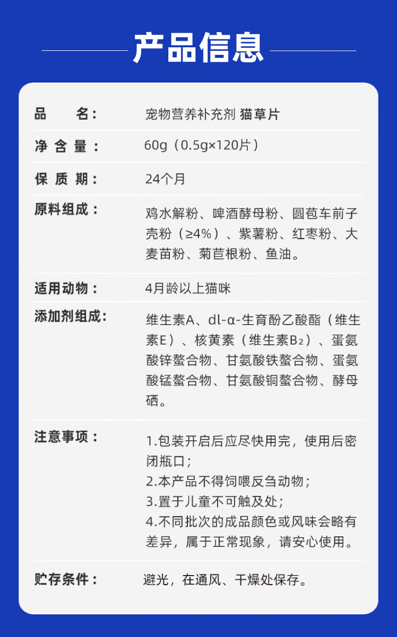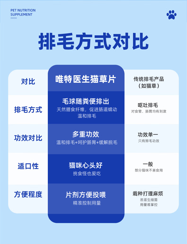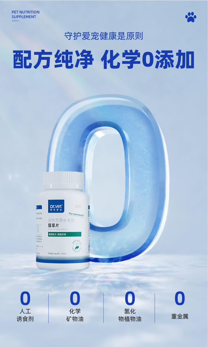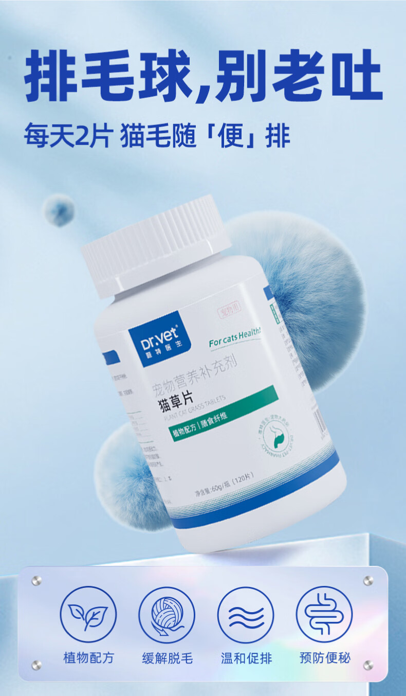 唯特医生化毛球片猫草片猫咪化毛膏猫咪专用化毛片成猫幼猫祛除毛球 120片*1瓶