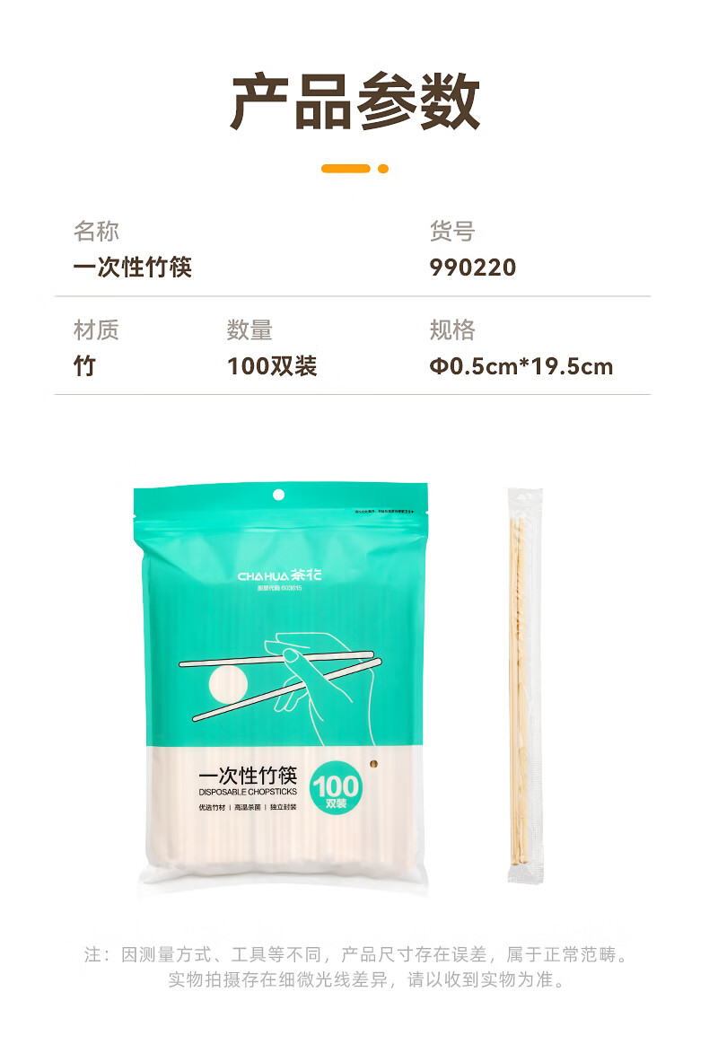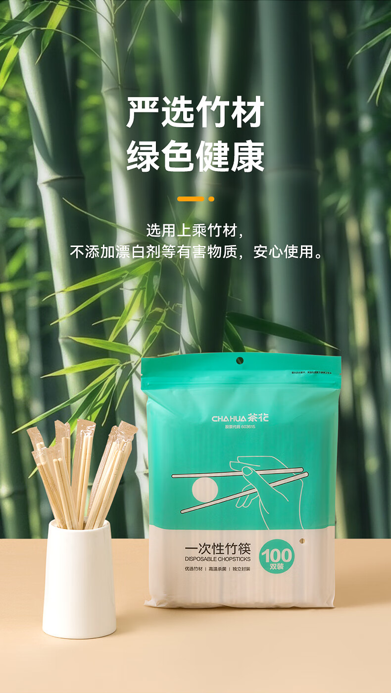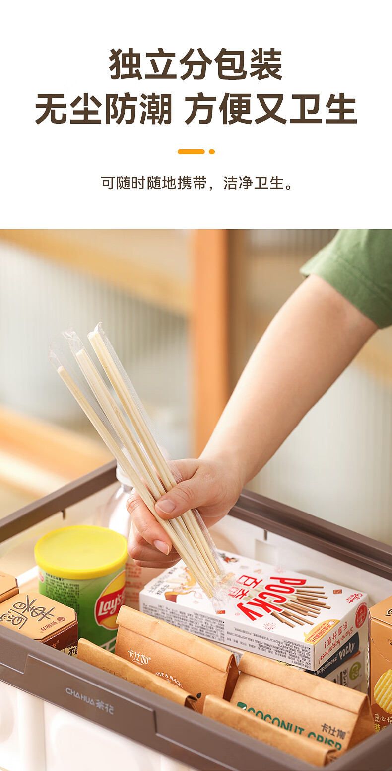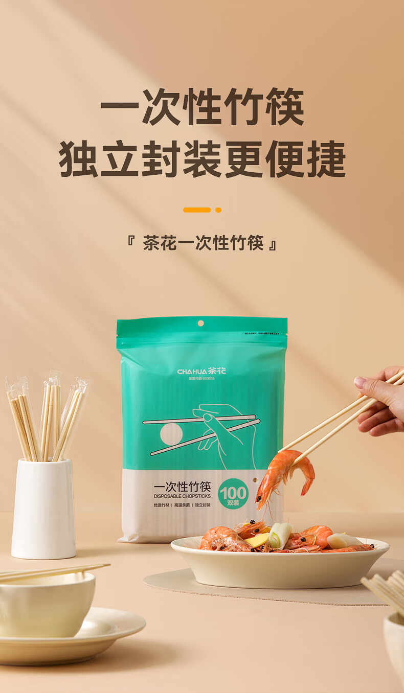 茶花(CHAHUA)一次性筷子竹筷外卖快餐卫生碗筷便宜方便家用餐具圆快子饭店专用 【独立包装】 100双
