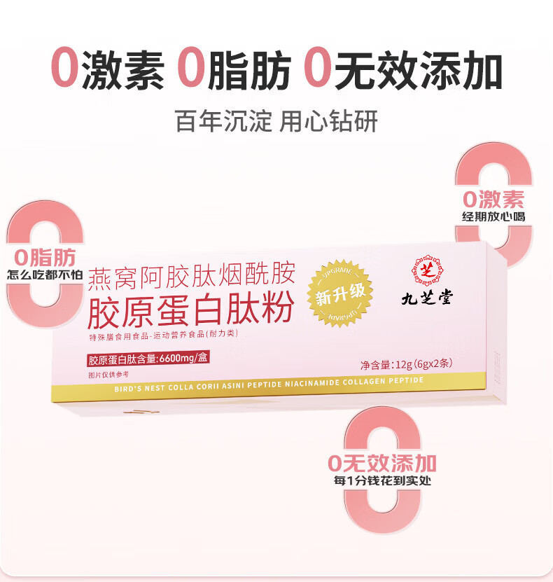九芝堂即食燕窝礼盒 滋补营养品印尼溯源送孕妇长辈女朋友礼物补品 燕窝阿胶肽烟酰胺胶原蛋白肽粉 2条*1盒