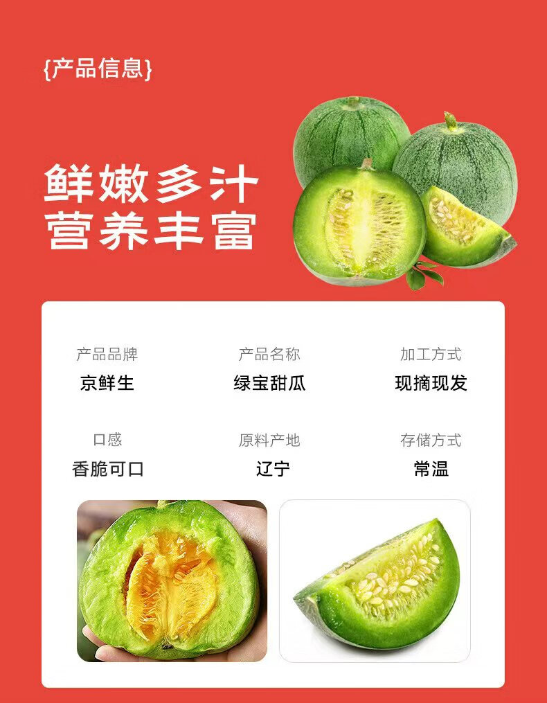 京鲜生 山东绿宝甜瓜 净重3斤 单果200g+ 生鲜水果 源头直发