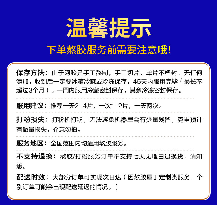 东阿阿胶金标阿胶 250g/盒 熬胶服务 鲜制阿胶糕 补血滋阴 润燥 止血