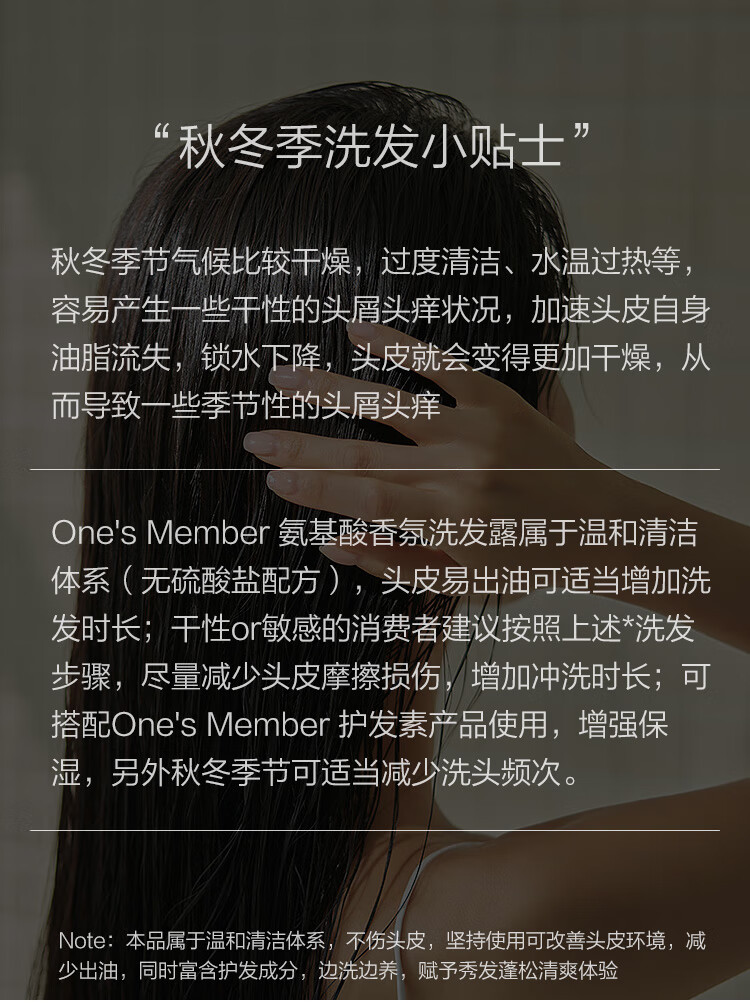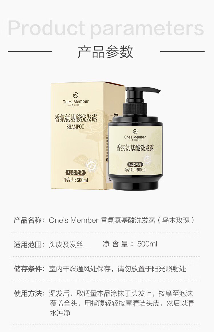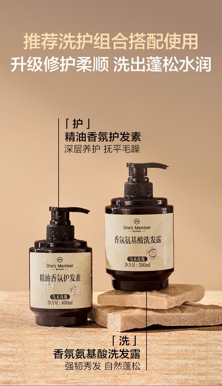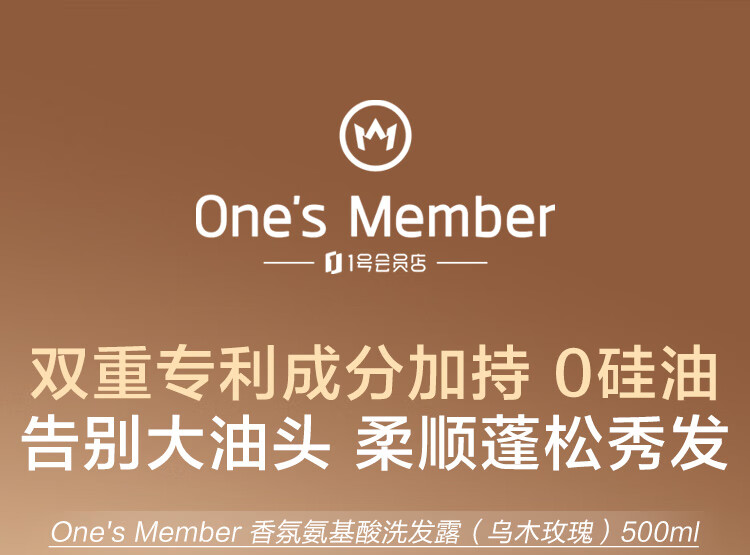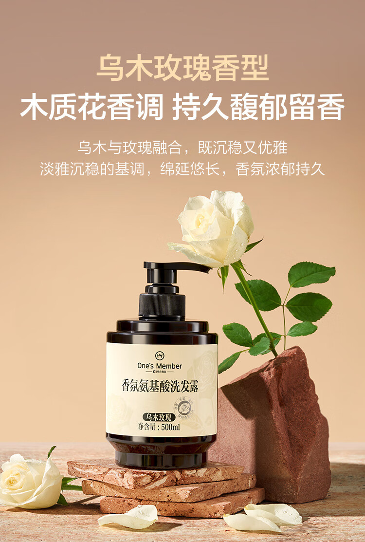 1号会员店(One's Member)香氛氨基酸洗发水乌木玫瑰蓬松控油强韧柔顺500ml京东自有品牌