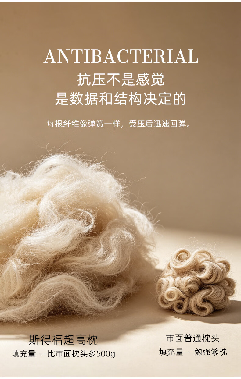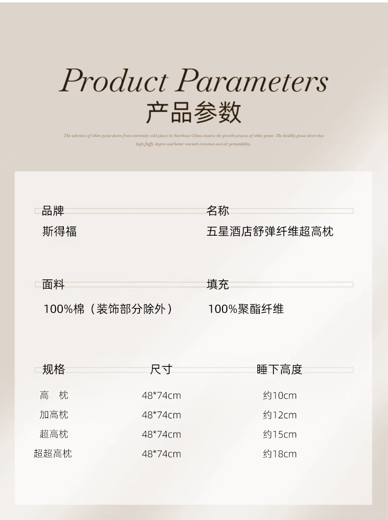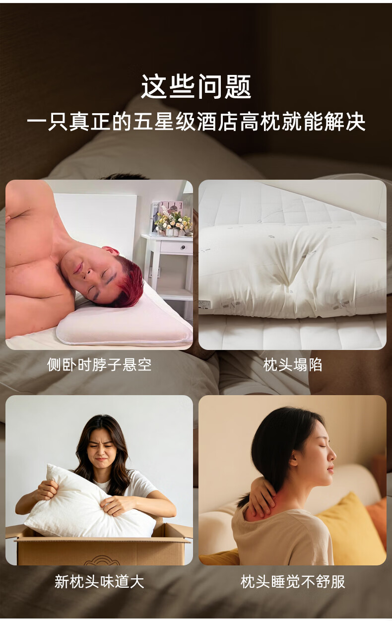 斯得福男士高枕头硬枕不易塌陷加高加厚加大枕芯不变形肩宽人群护颈椎 【加大款-加高枕15cm】+全棉枕套60*80cm 单只