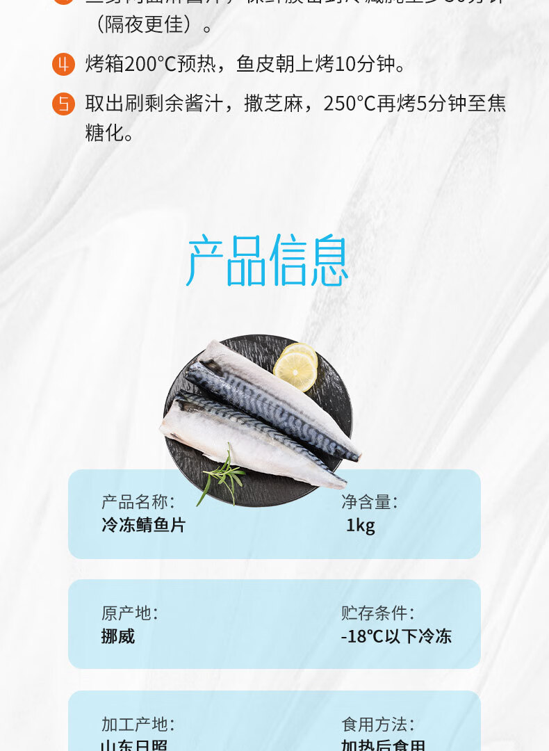 美加佳挪威青花鱼片净重2斤(8-10片)鲭鱼去头去尾去脏