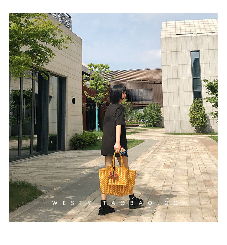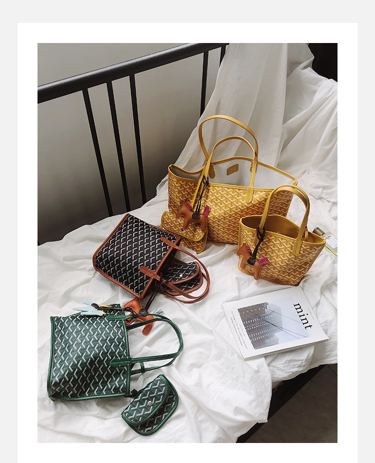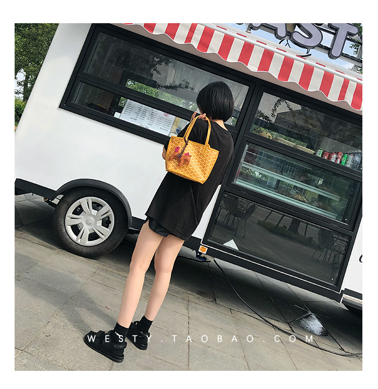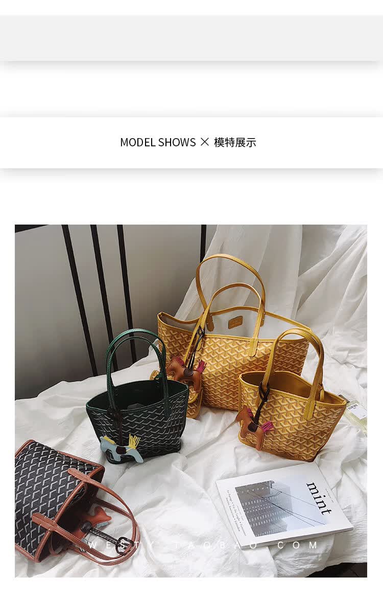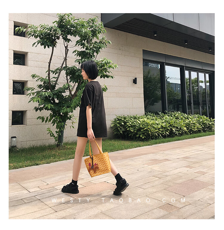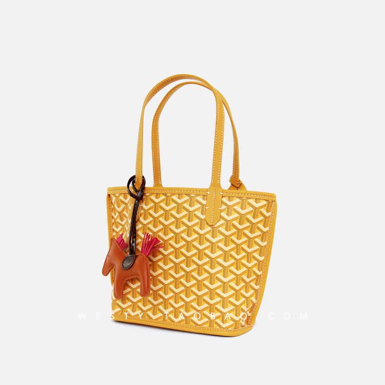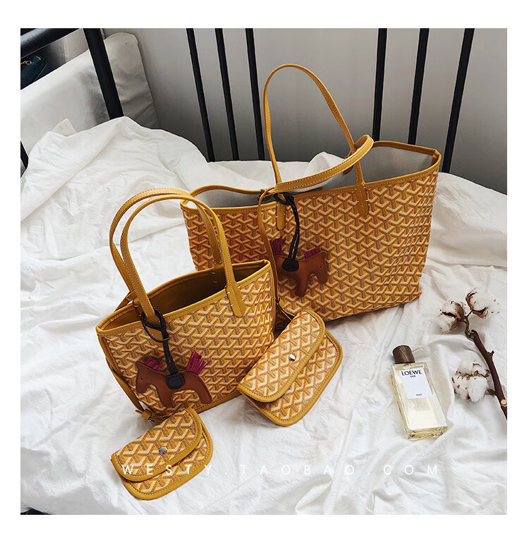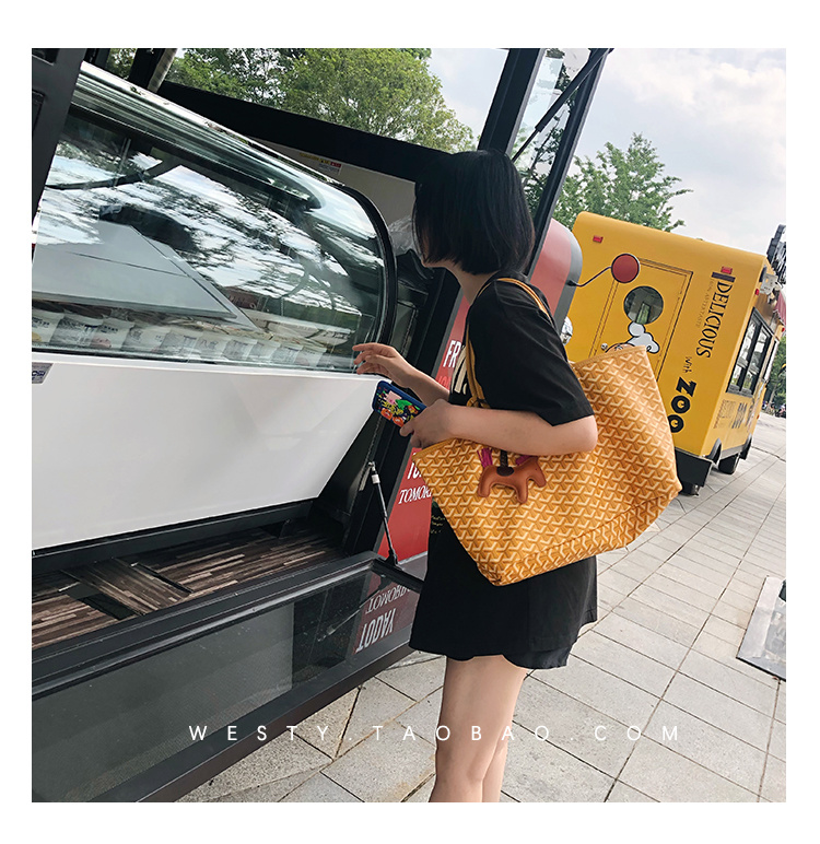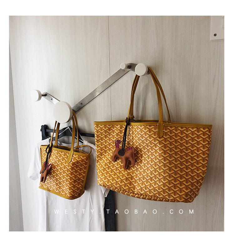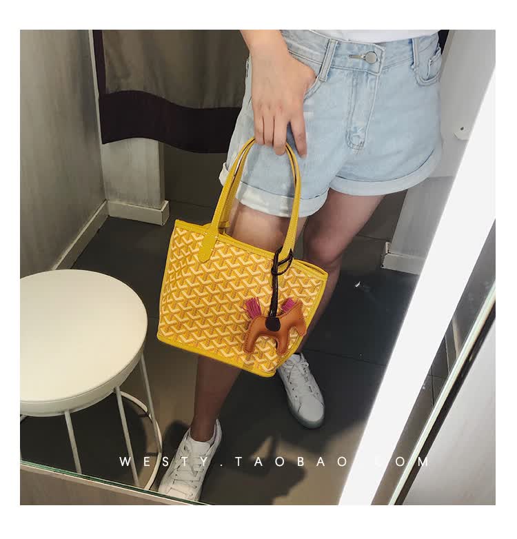 宏唯新品狗牙包菜篮子单肩手拎包包手提女神节托特包女神节包包女 黄色 小号 送小马