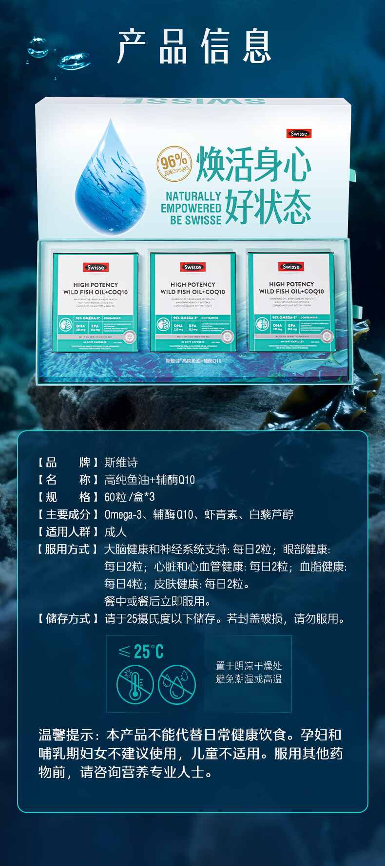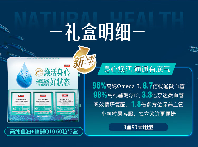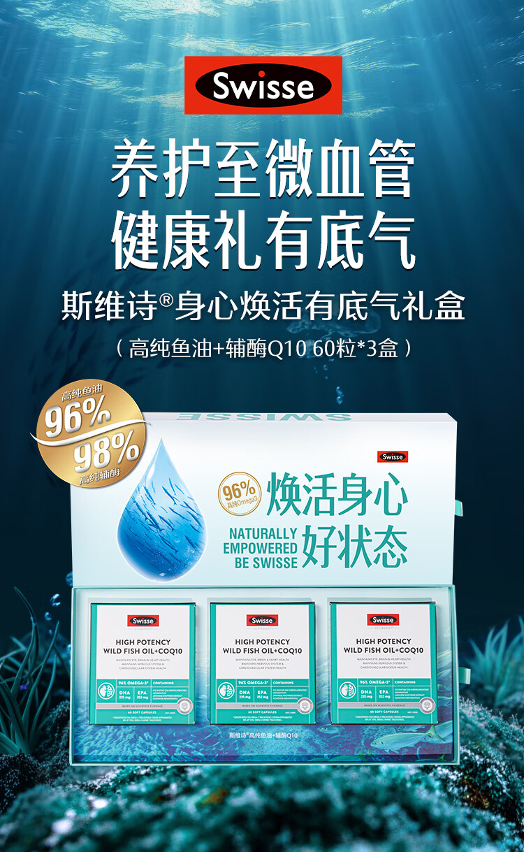 Swisse斯维诗96%高纯度深海鱼油辅酶Q10软胶囊60粒*3黑绷带鱼油年货礼盒
