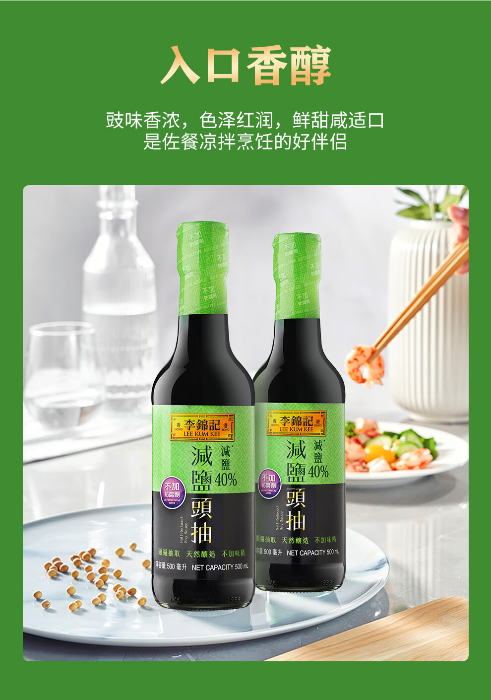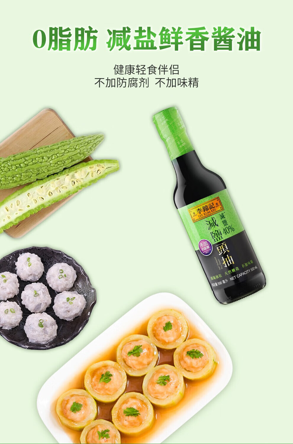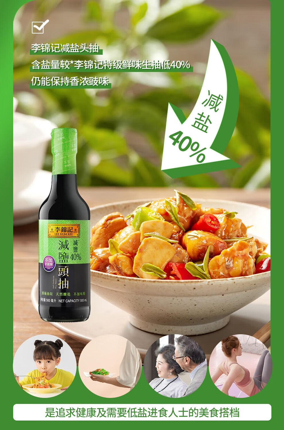 李锦记(LEE KUM KEE)减盐头抽500ml 0添加防腐剂特色酱油家用生抽调味未添加碘盐 减盐头抽500ml
