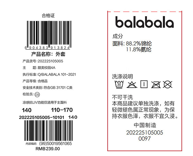 巴拉巴拉【商场同款】三丽鸥联名儿童防晒衣女童夏薄款皮肤衣202225105006