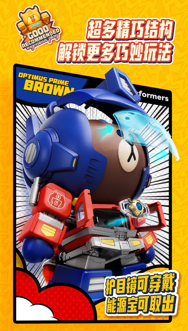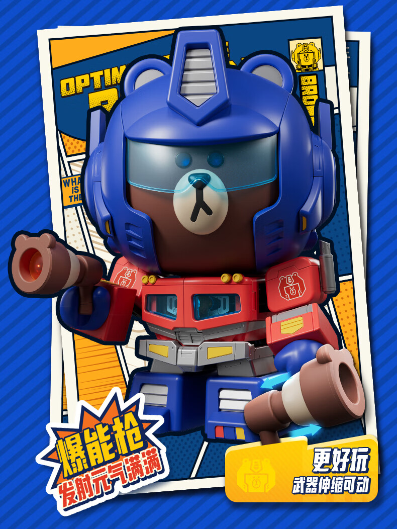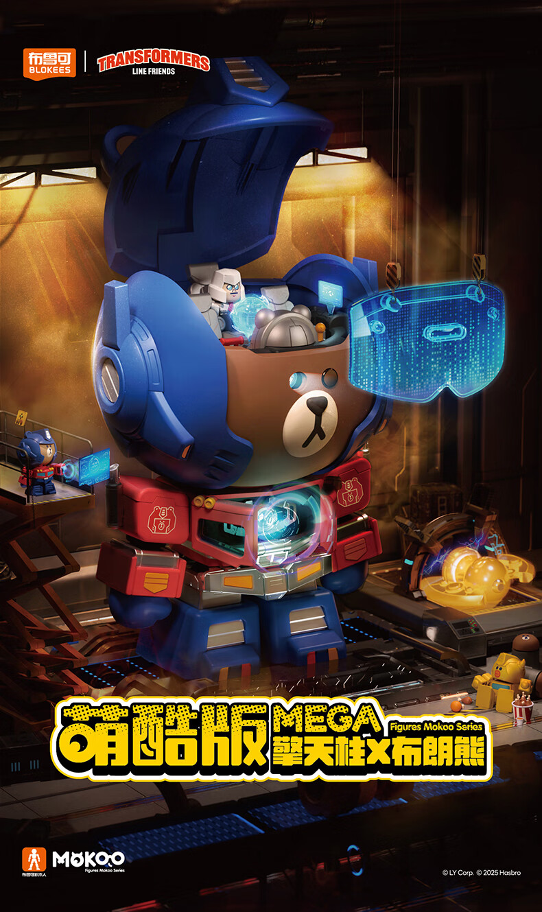 布鲁可积木人萌酷版MEGA擎天柱布朗熊联名款 潮玩男生玩具生日女生礼物