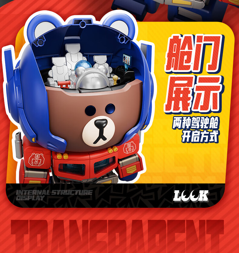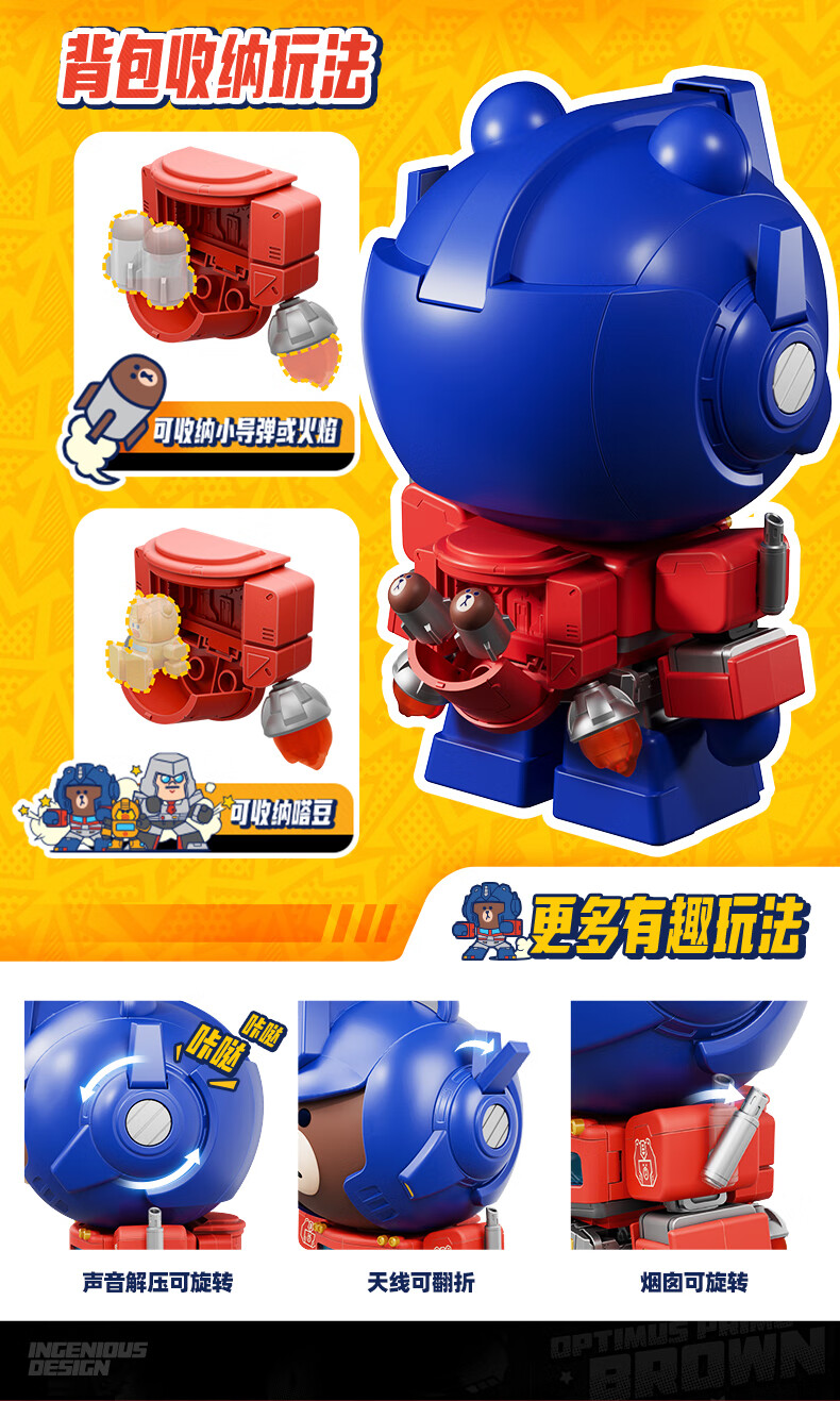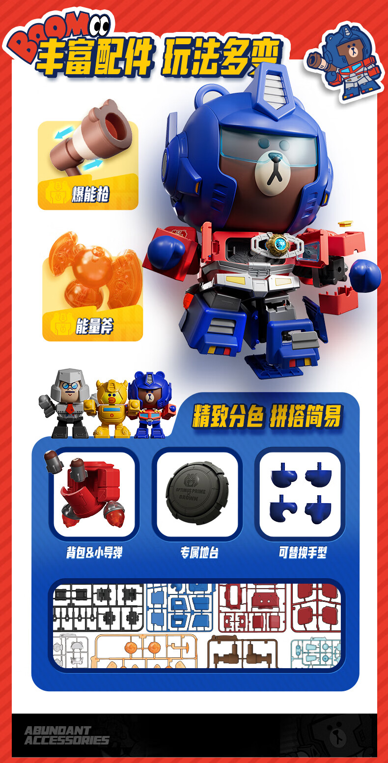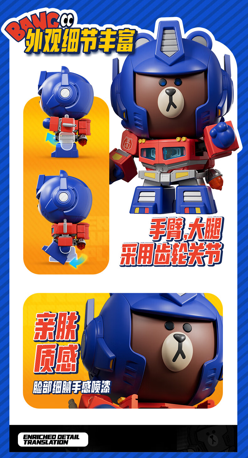 布鲁可积木人萌酷版MEGA擎天柱布朗熊联名款 潮玩男生玩具生日女生礼物