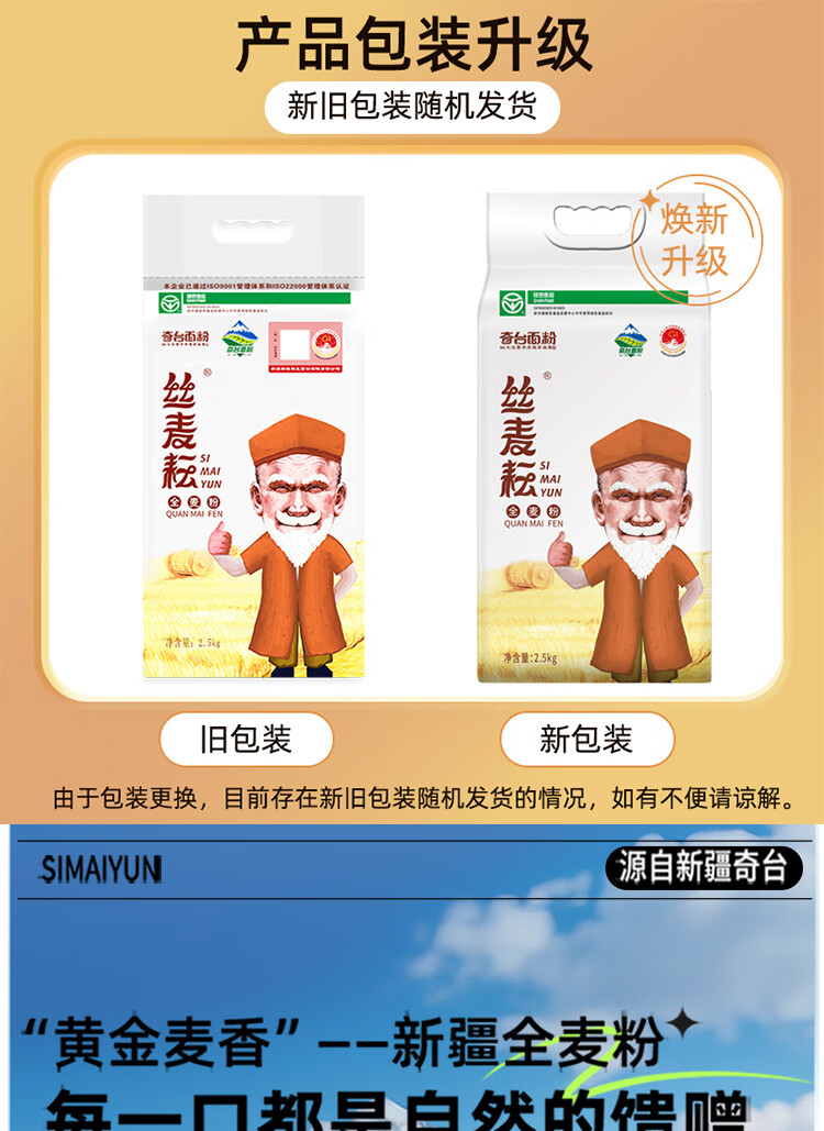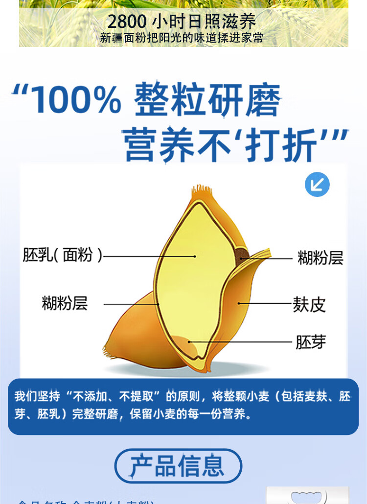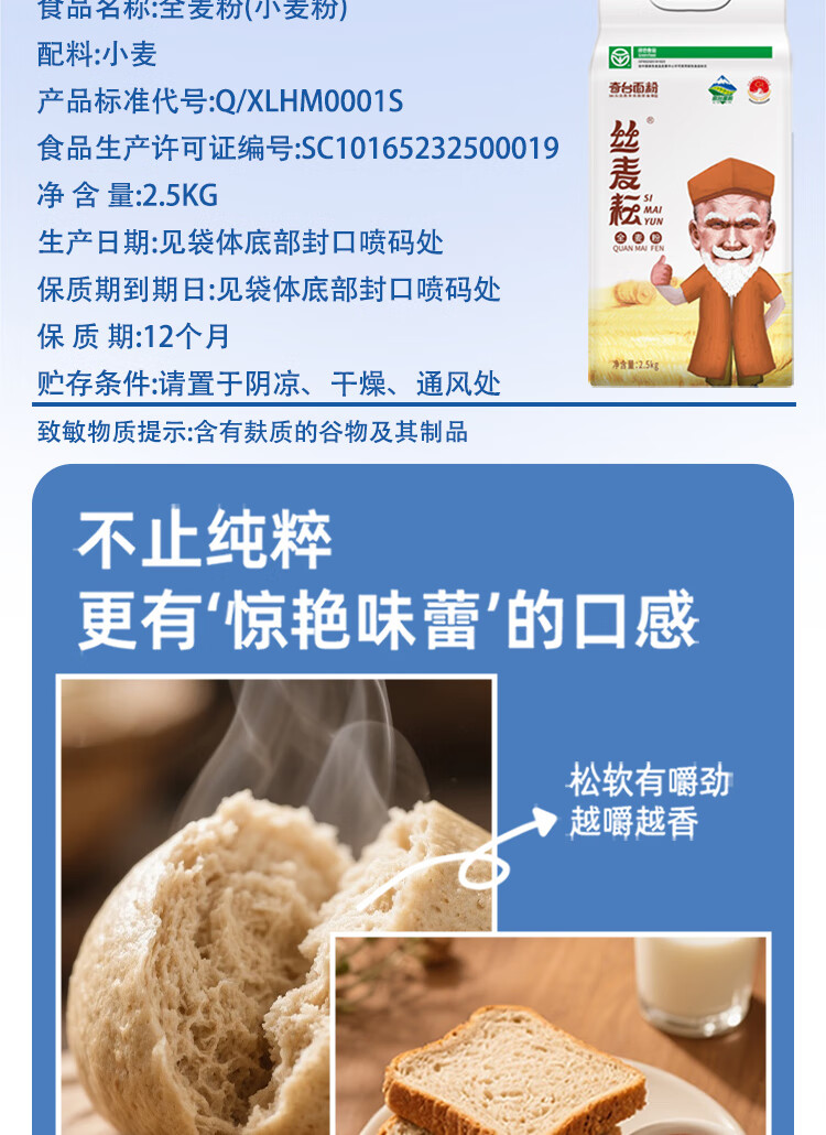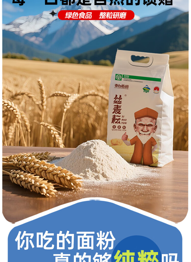 丝麦耘面粉5斤全麦粉 新疆面粉纯粗粮粉 含麦麸小麦芯粉 绿色食品
