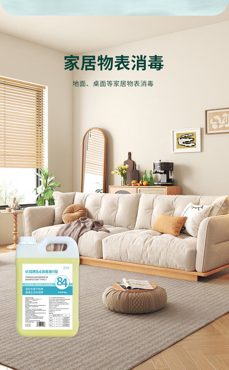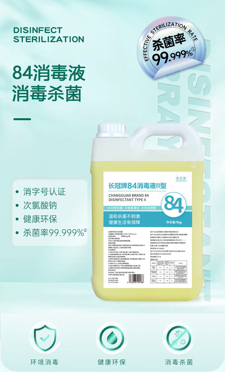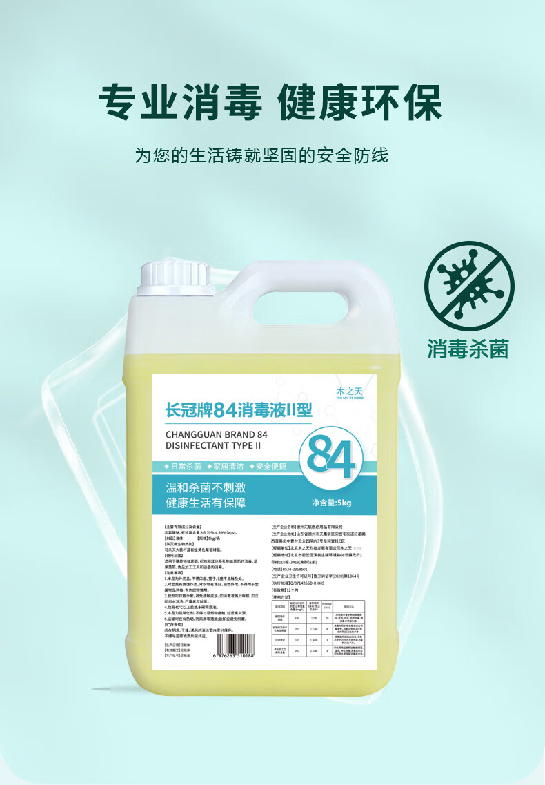 木之天次氯酸钠84消毒液5L/桶家用商用消毒衣物漂白洁厕甲流感含氯除菌