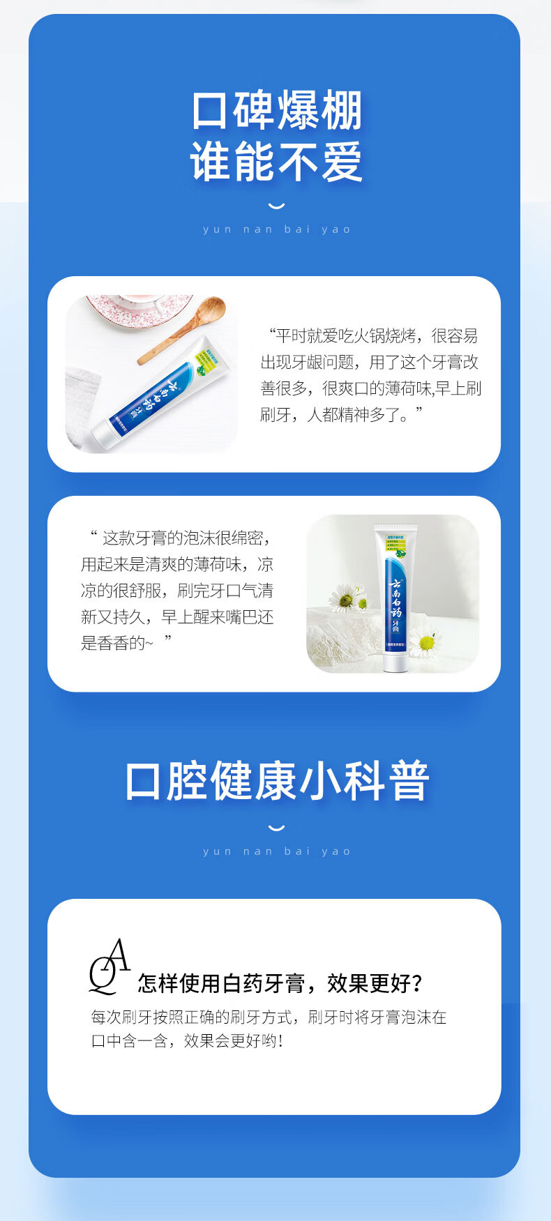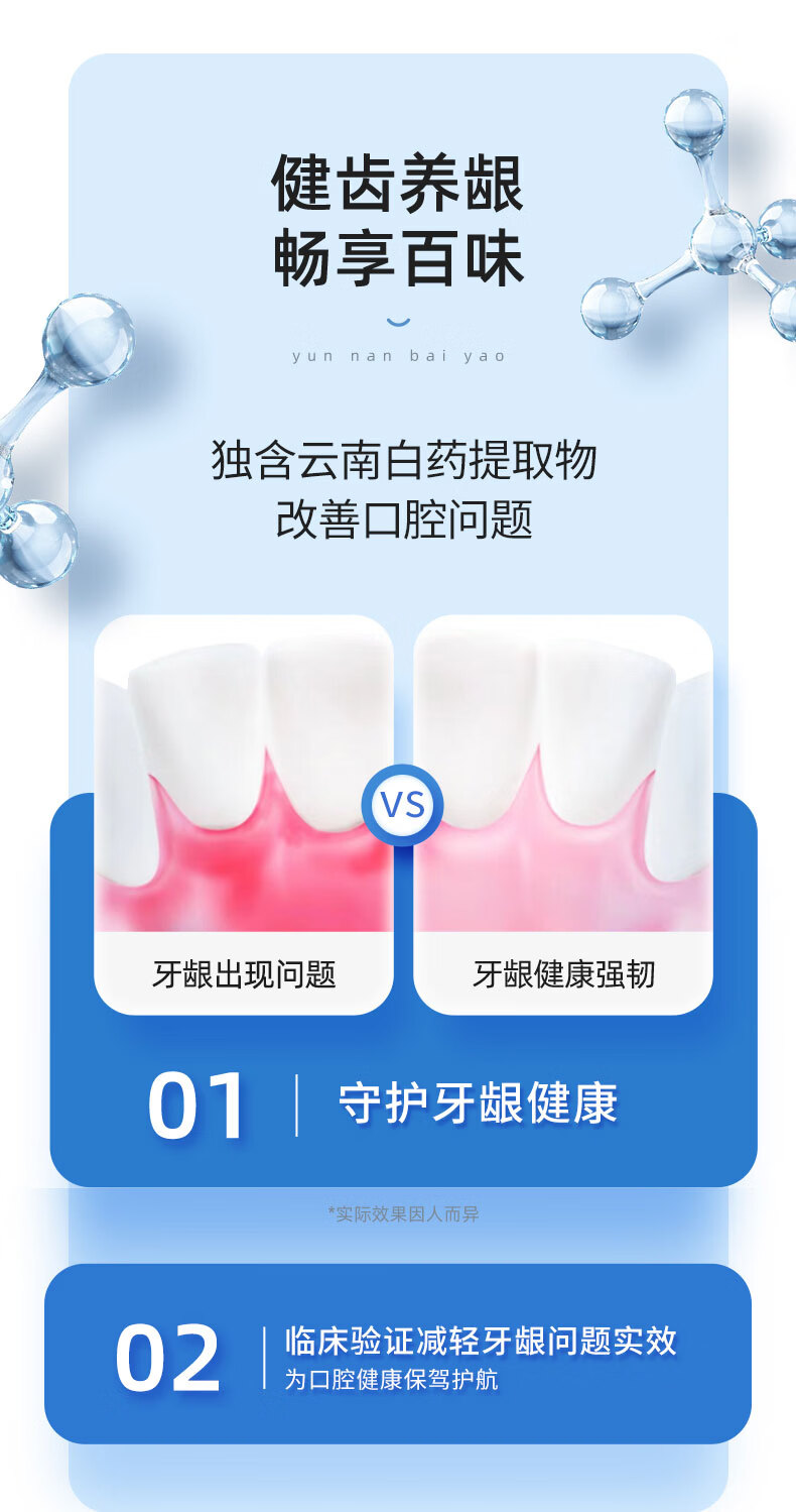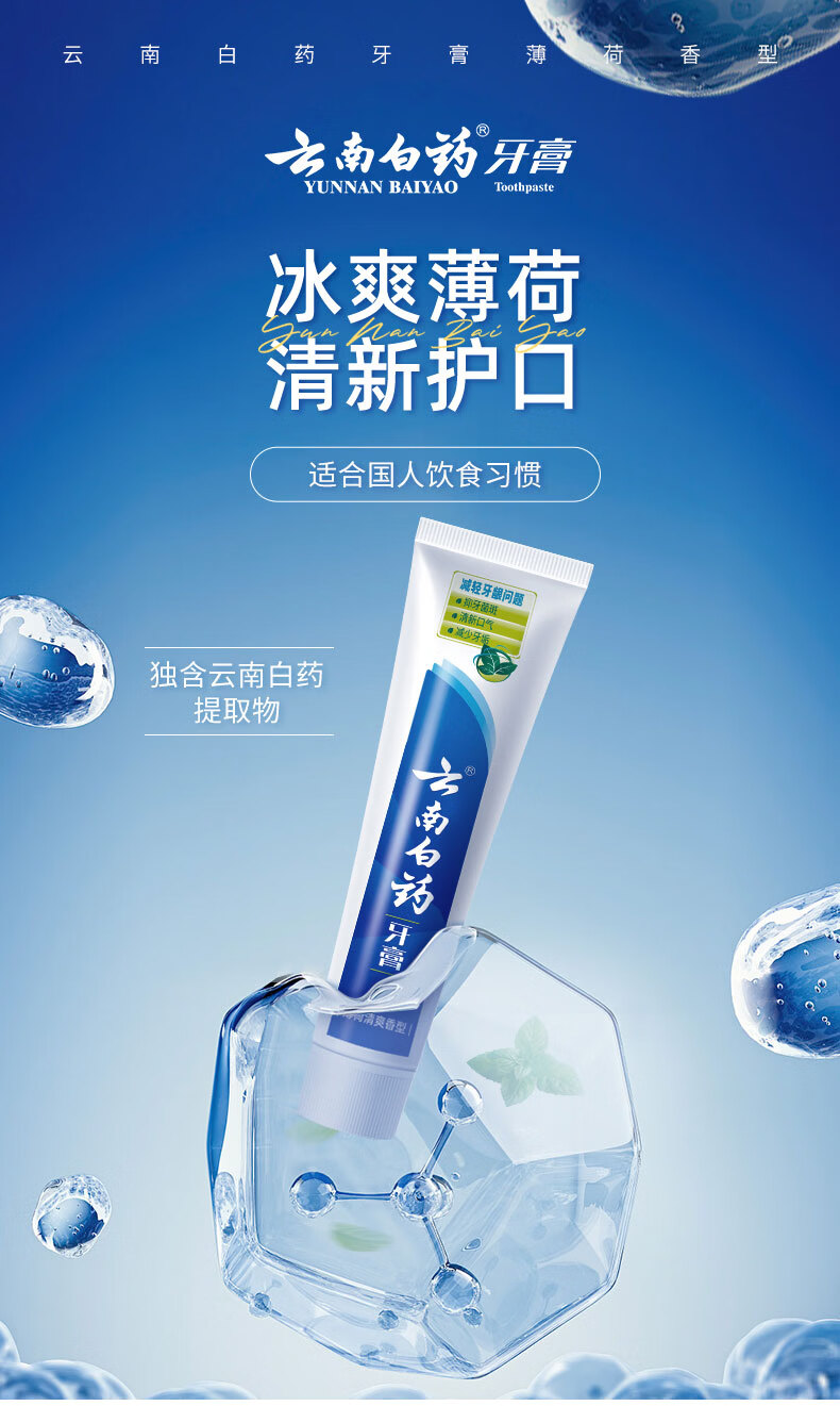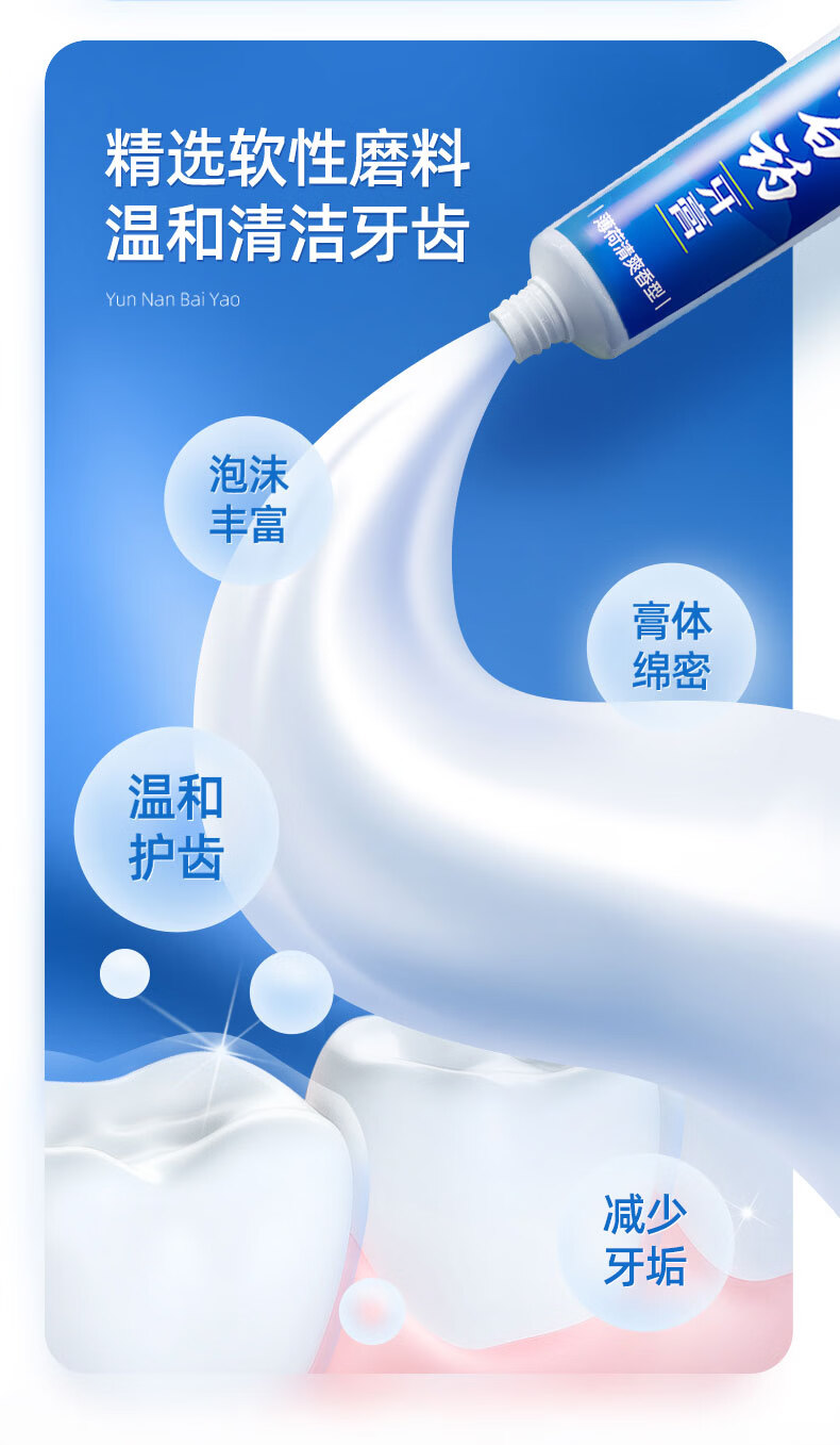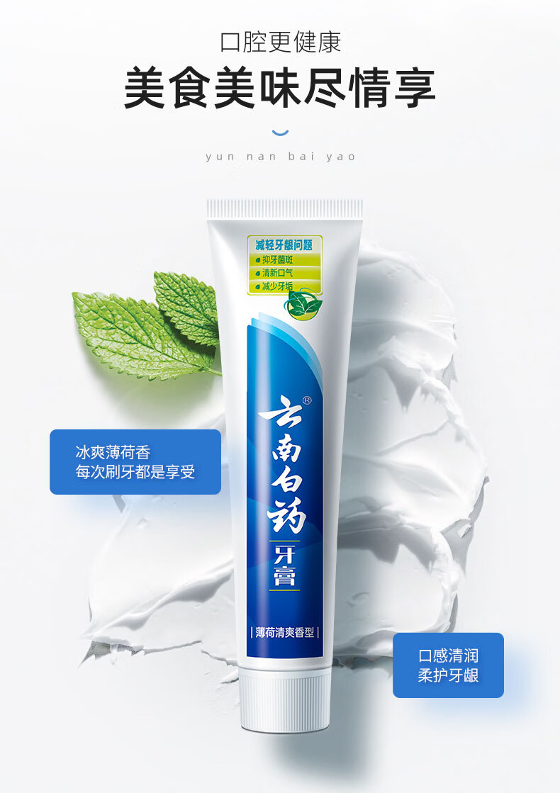 云南白药牙膏清新口气洁净口腔减少牙垢牙龈护理 薄荷香型 150g*3支 (共450g)