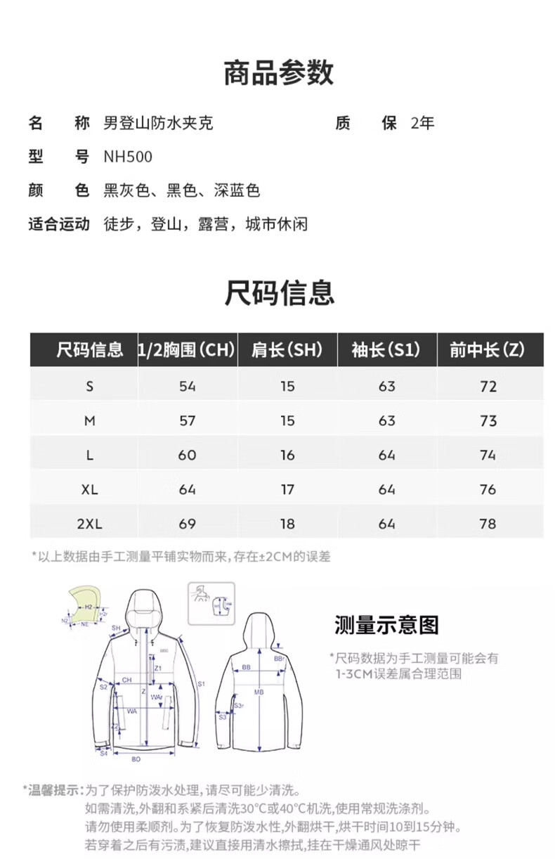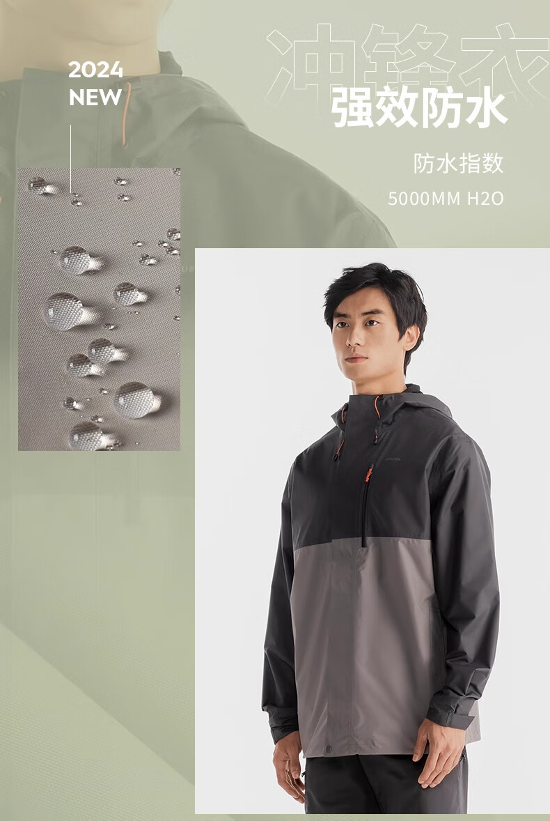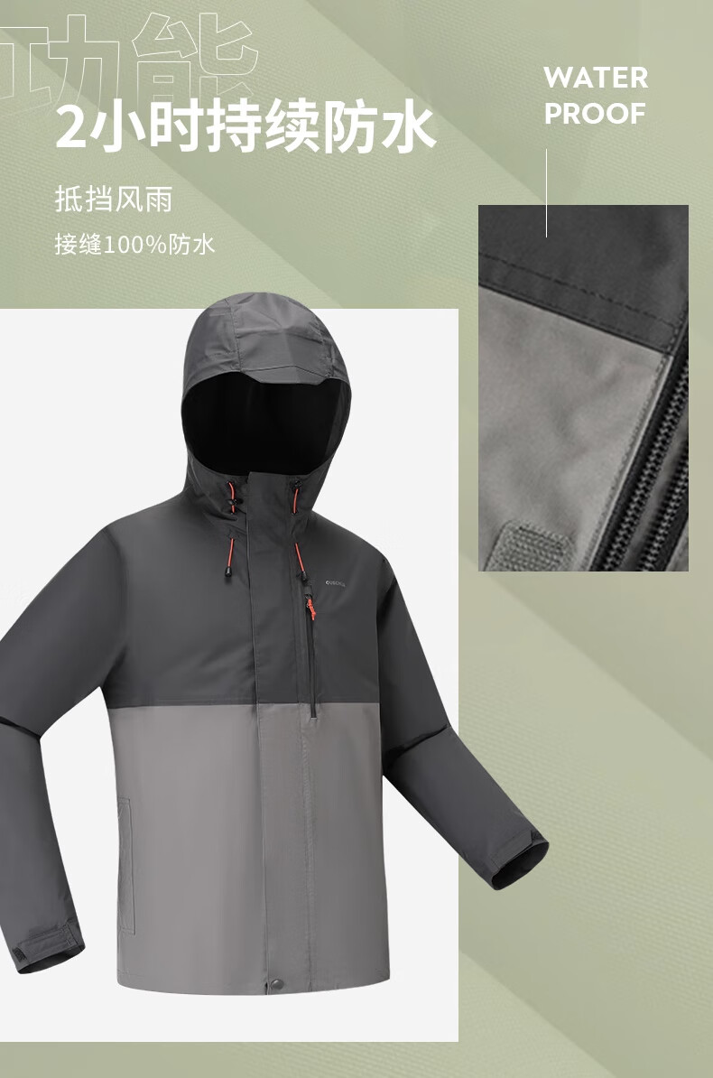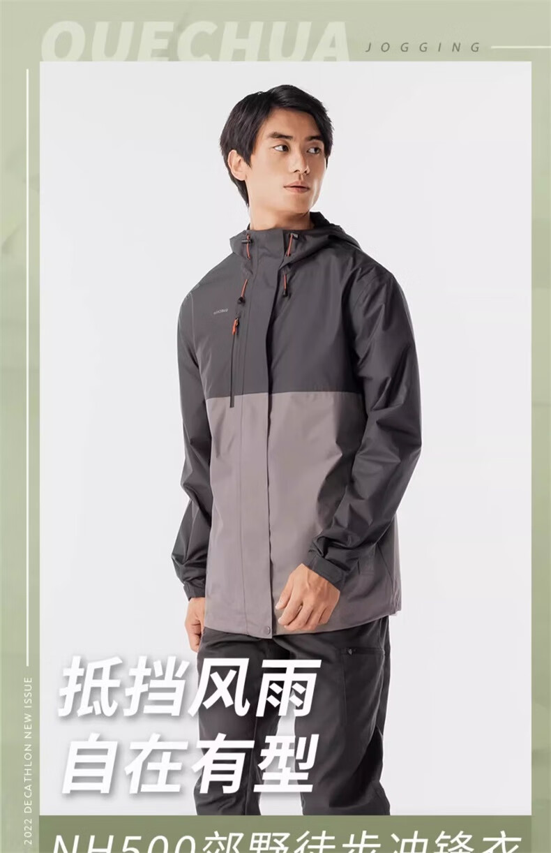 迪卡侬冲锋衣男NH500男士自然徒步经典夹克-5455671