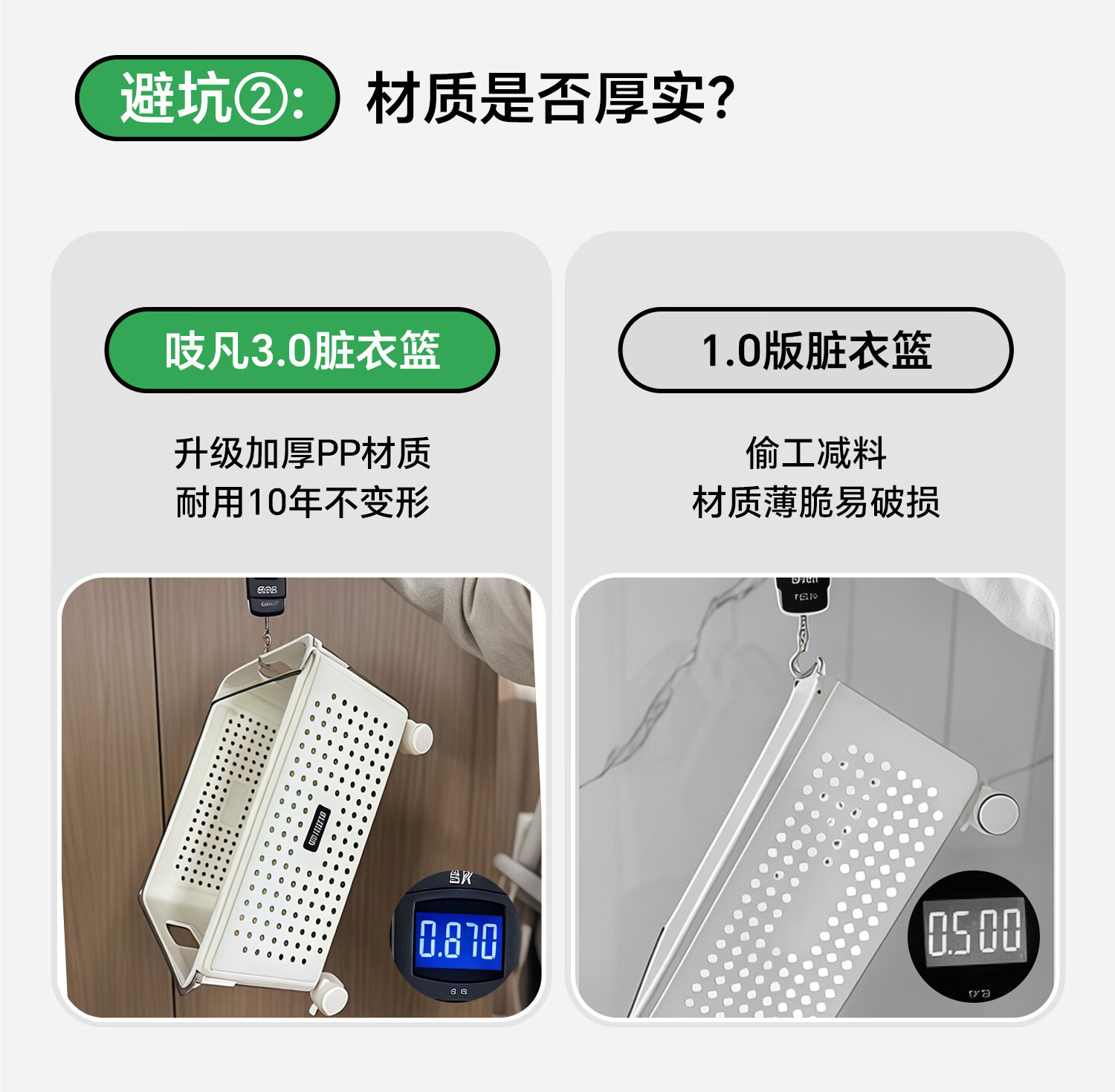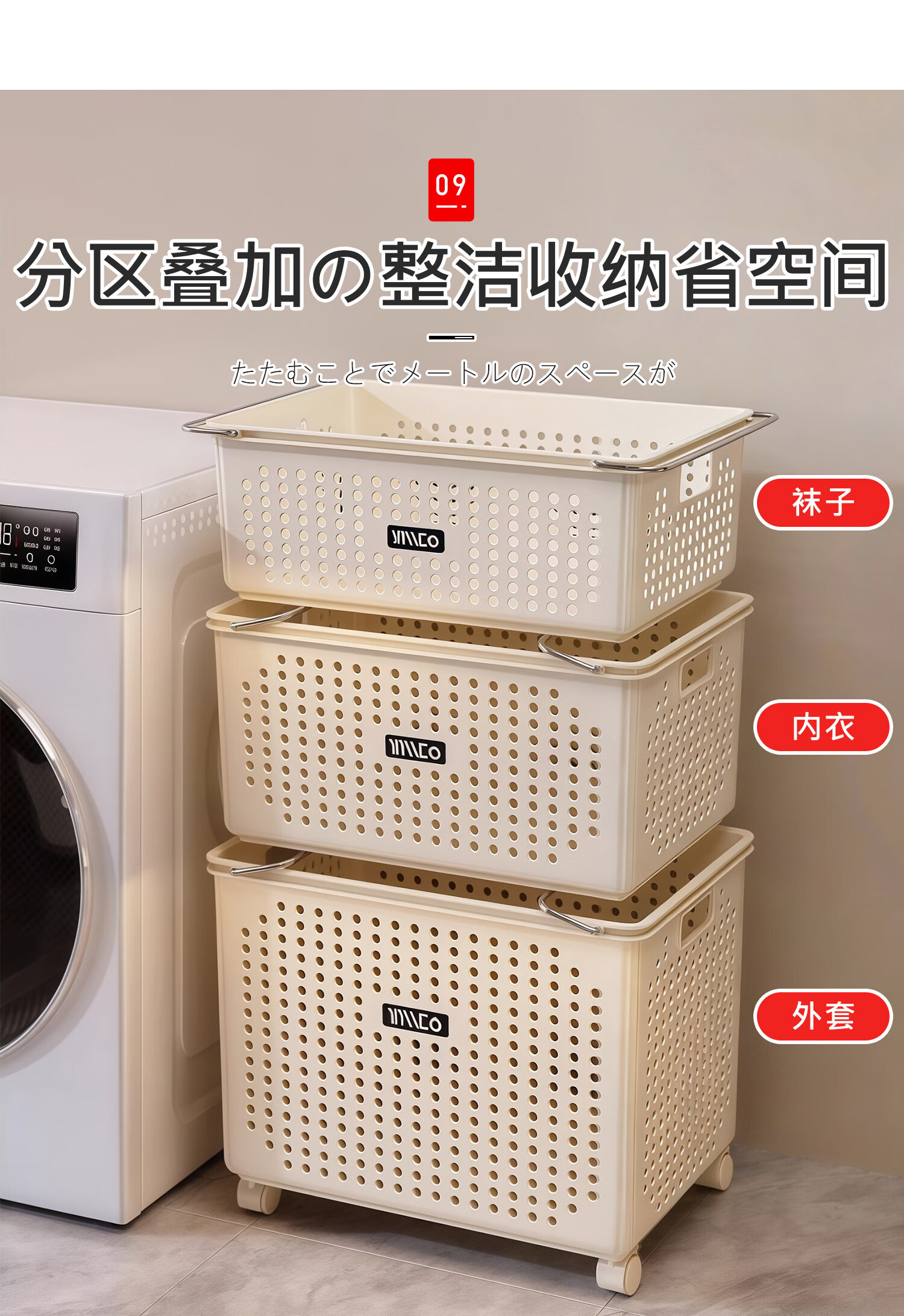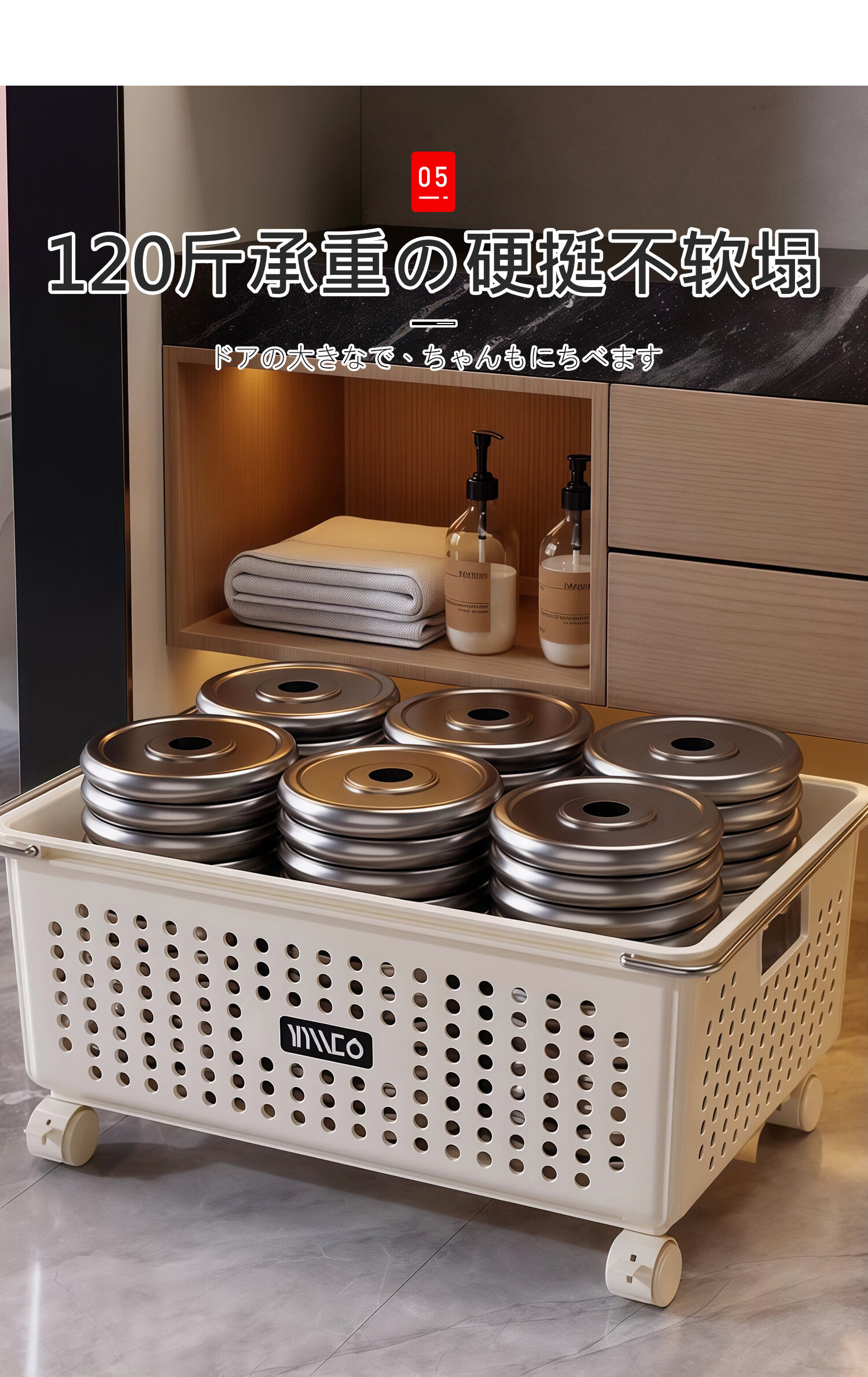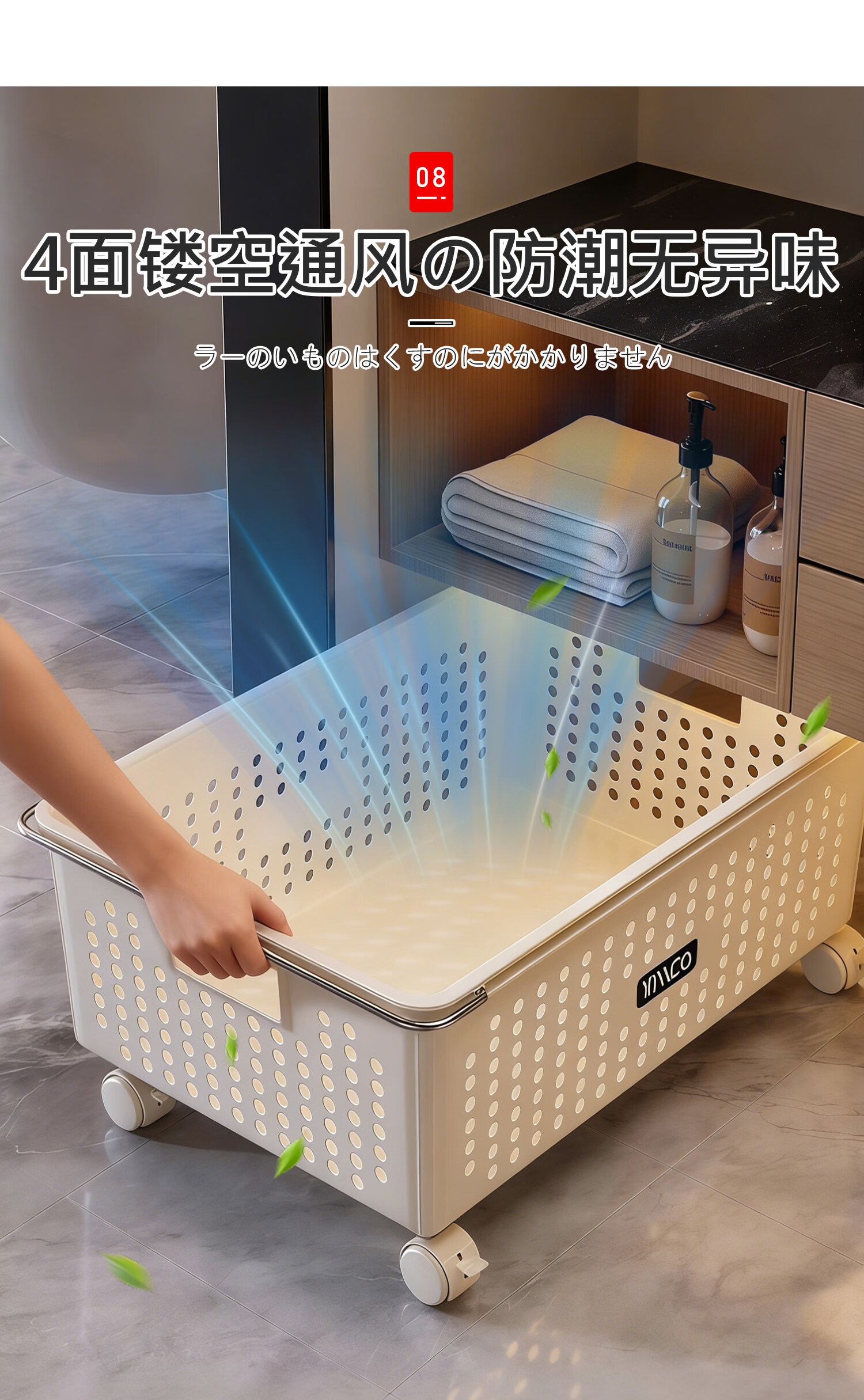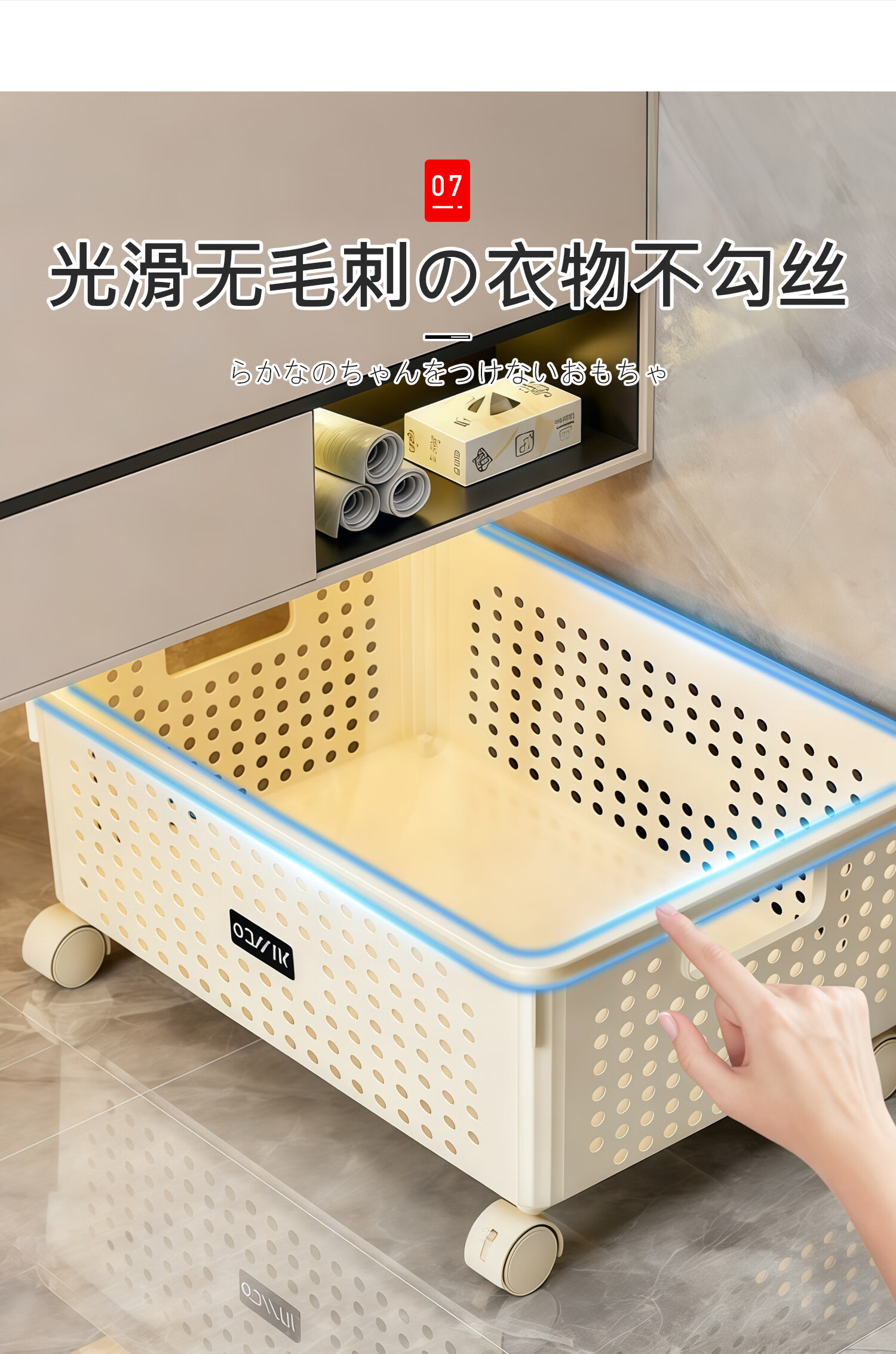 吱凡日本浴室柜下脏衣篓家用脏衣服收纳篮带轮推车杂物洗衣篮储物筐子 特大号脏衣篮【加厚升级】
