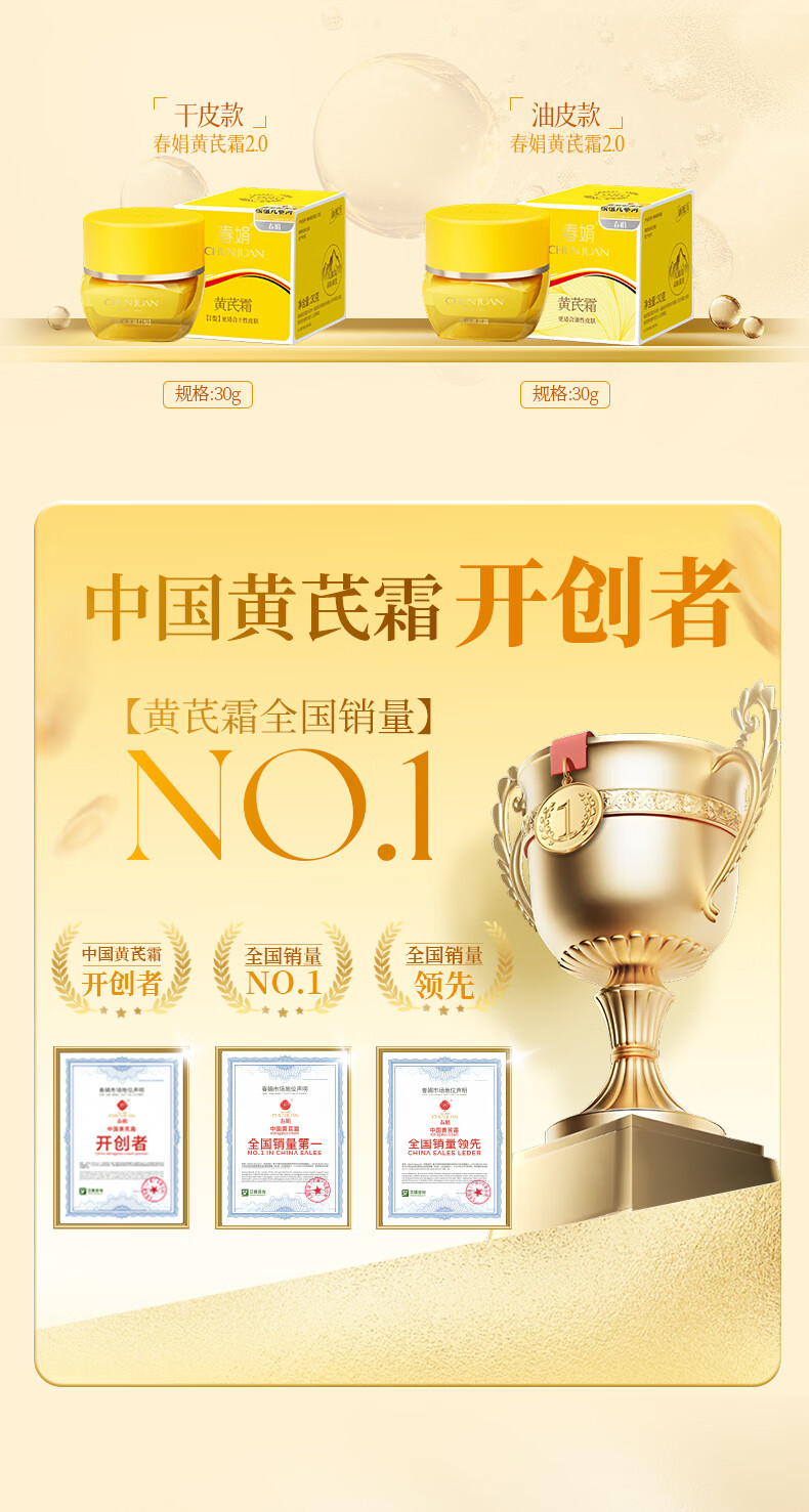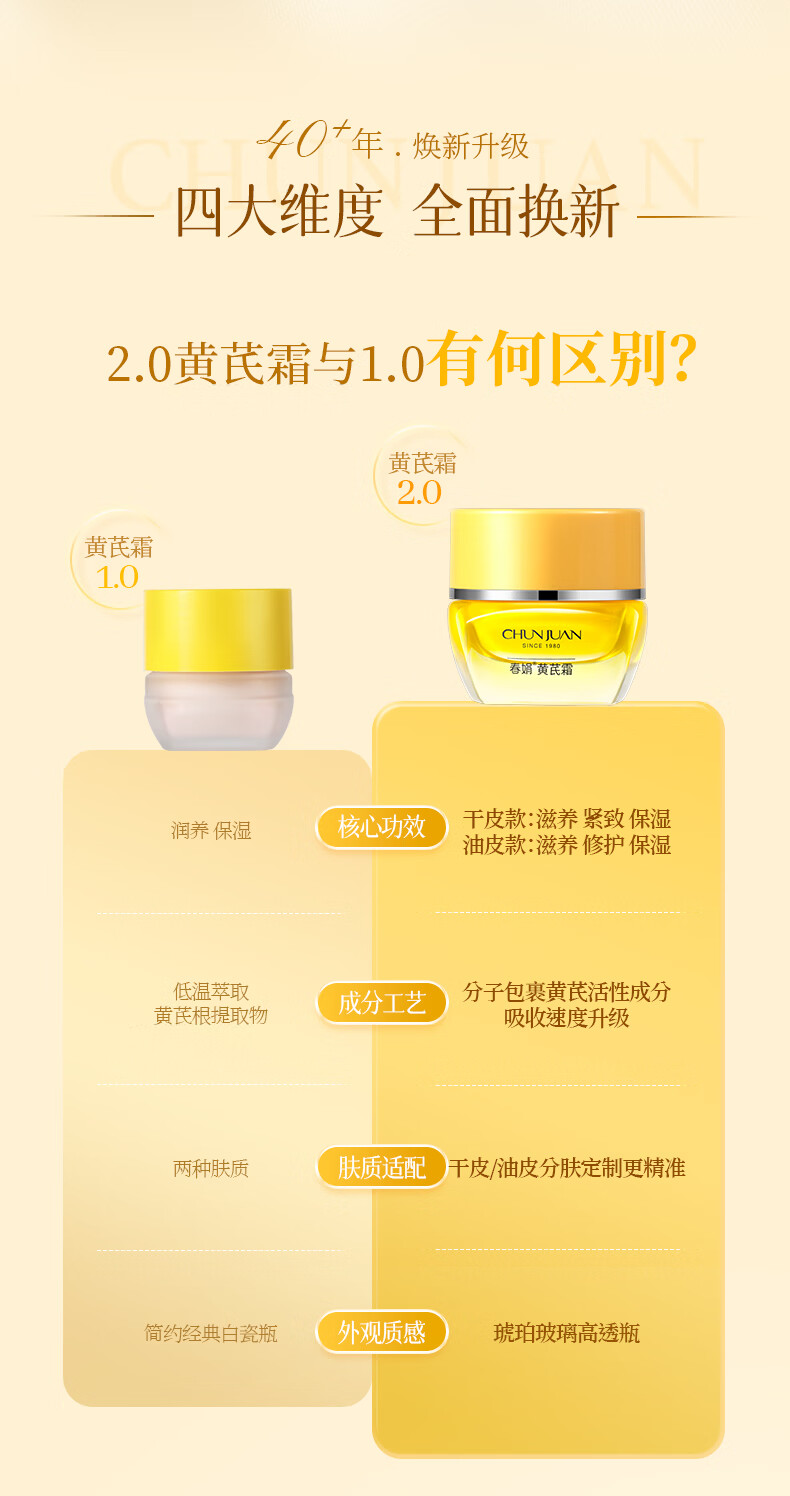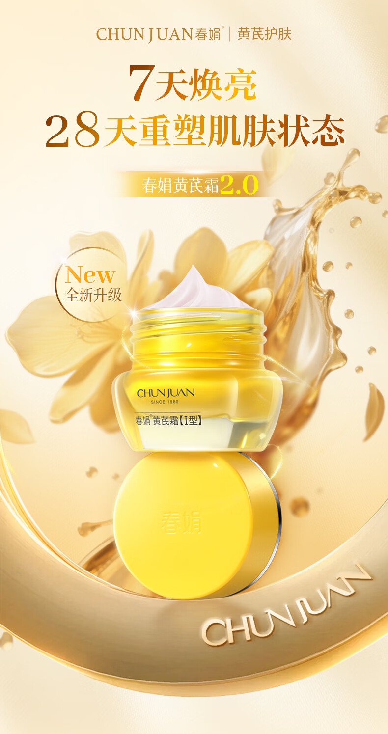 春娟[7天焕亮]黄芪霜2.0新版改善暗沉保湿滋养护肤面霜提亮肤色老国货 滋润版30g(干皮/秋冬季)