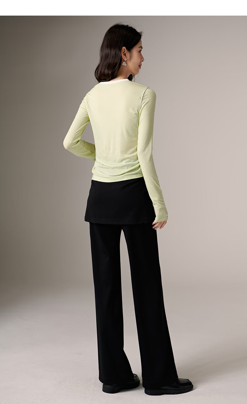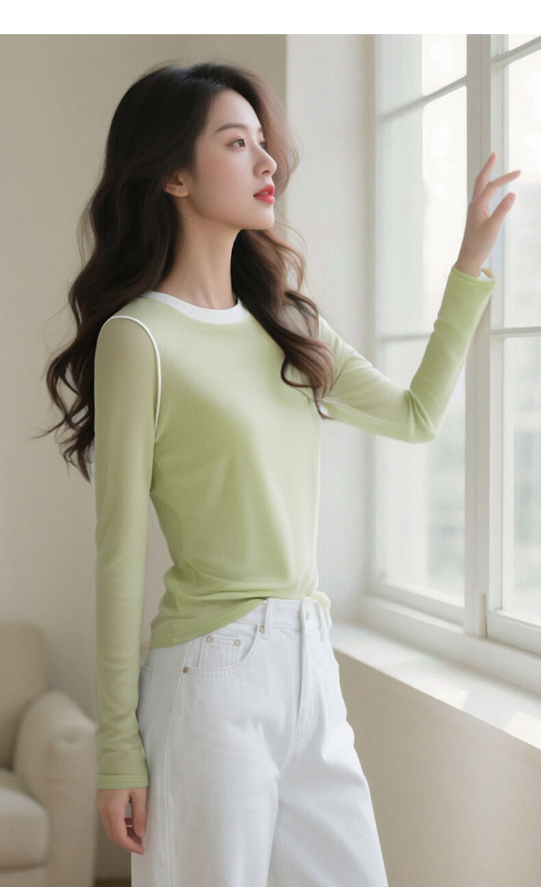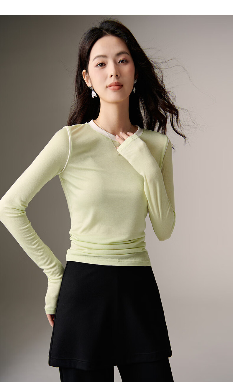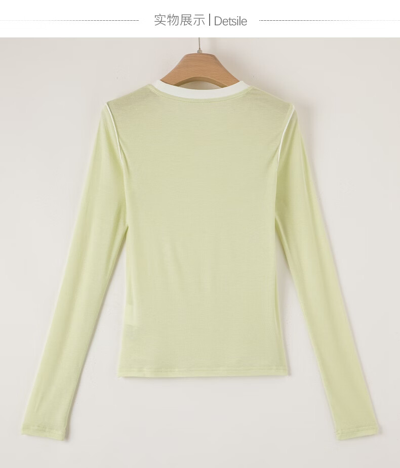 晚白【新品】2026年春款时尚撞色清新休闲上衣莱赛尔亲肤舒适T恤衫女 淡绿色 XL
