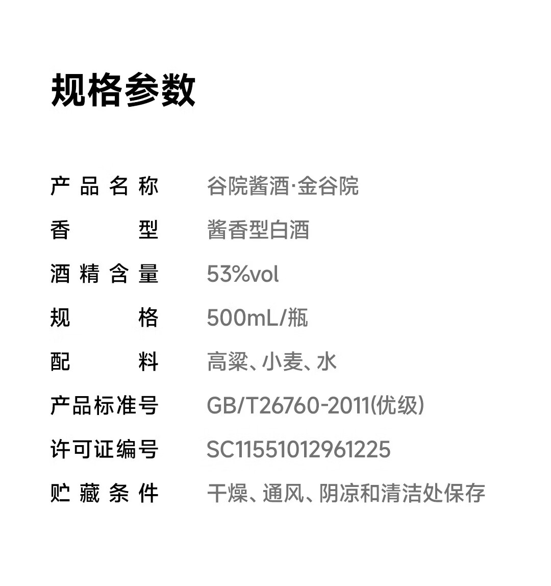 谷小酒 谷院烧酒金瓶 酱香型白酒家用纯粮食酒水单瓶试饮口粮酒 53度 500mL 1瓶 【金谷院单瓶】