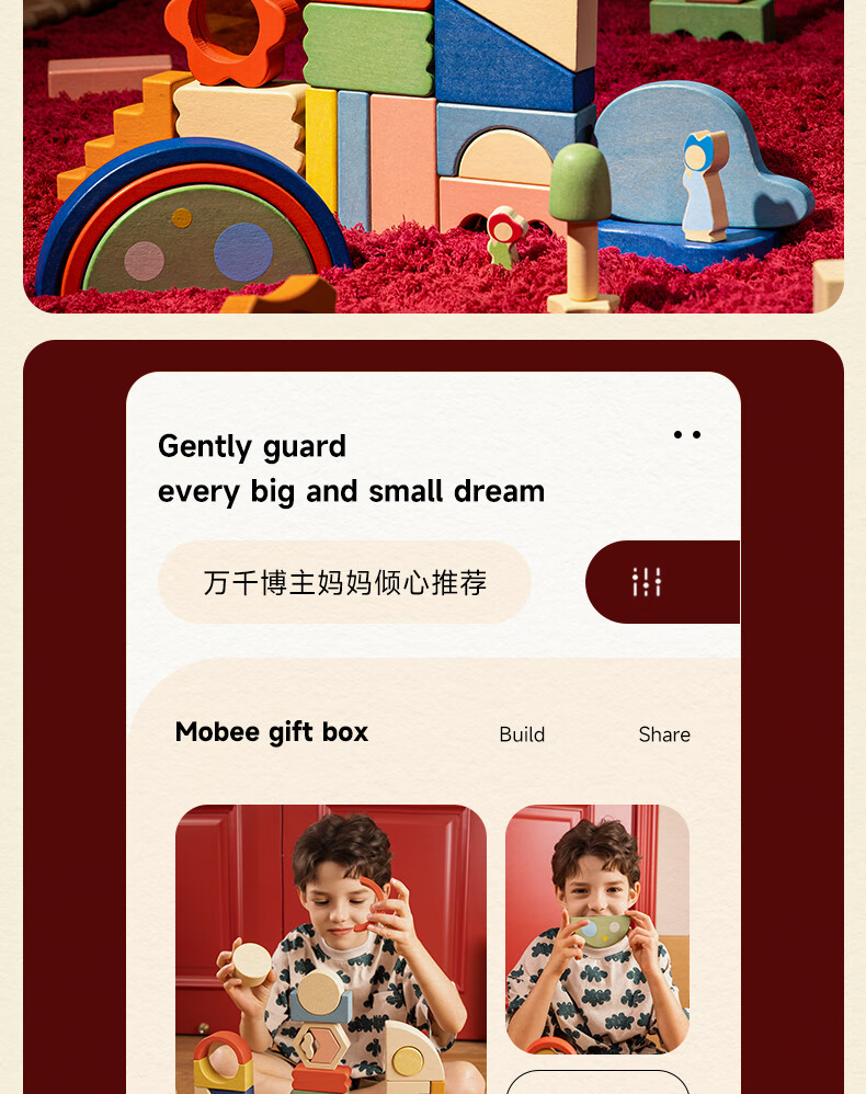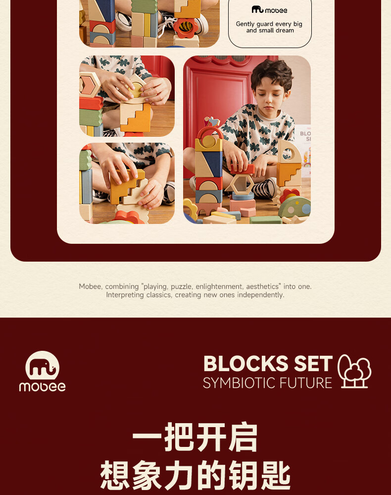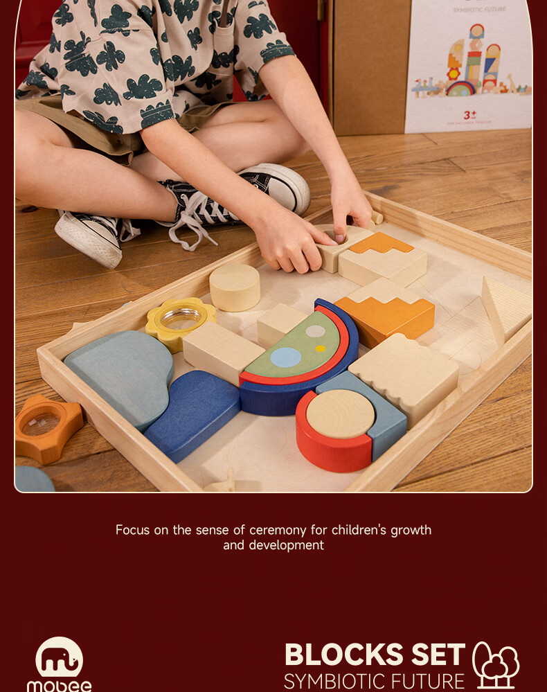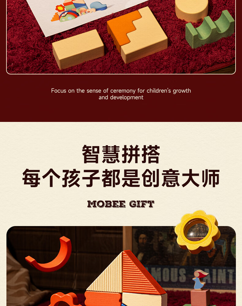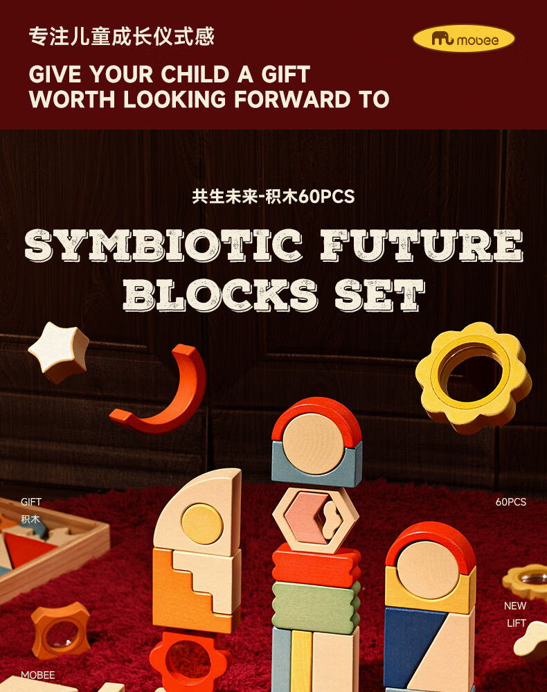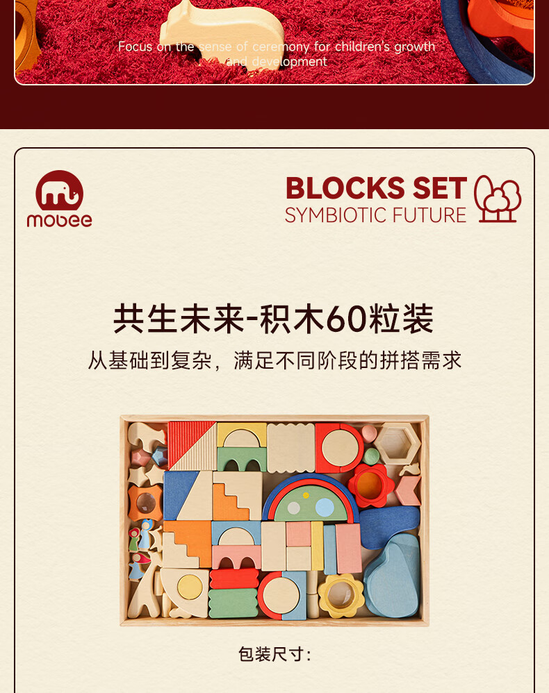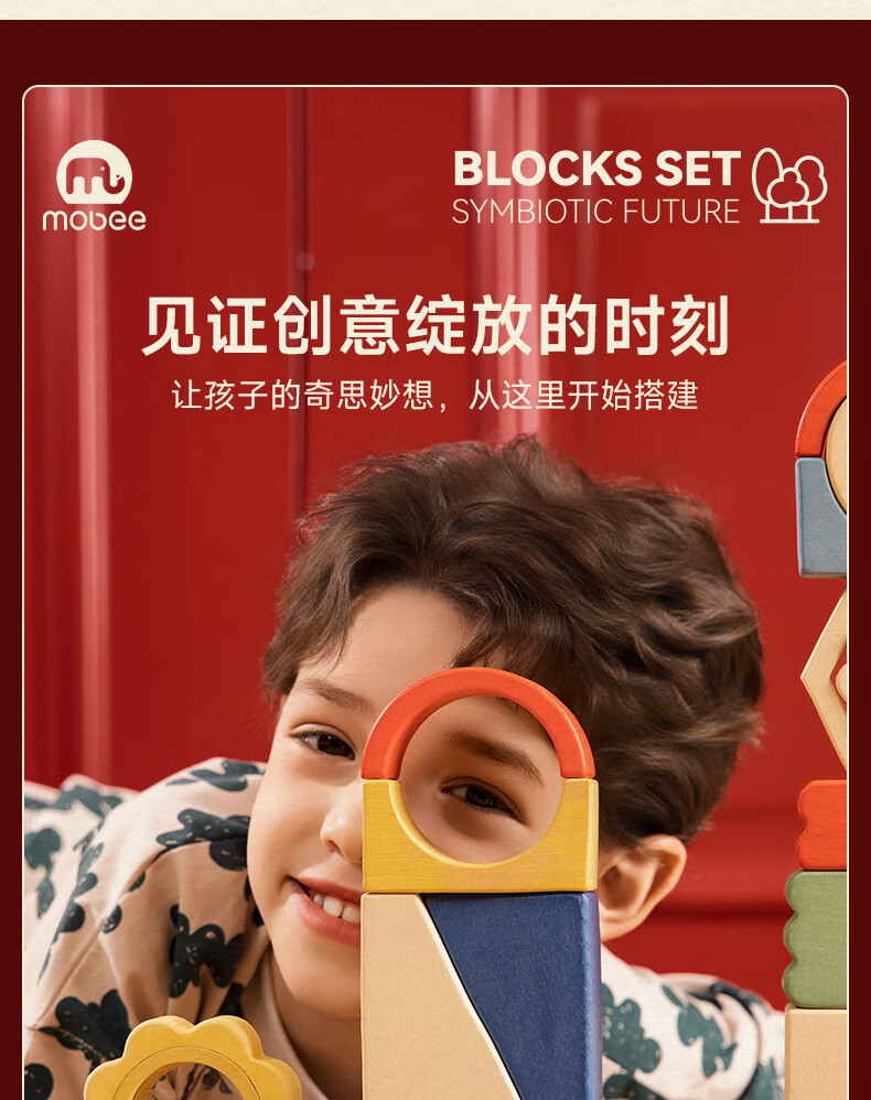 mobee木质儿童益智大颗粒3-6岁拼搭积木60粒宝贝玩具礼物周岁生日新年 巨石小镇叠叠乐积木【42pcs】