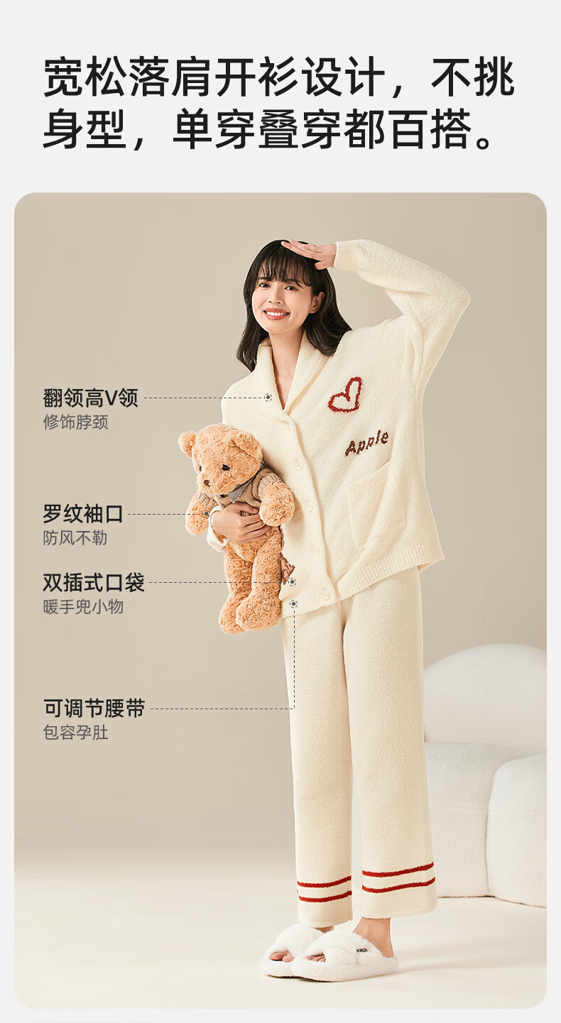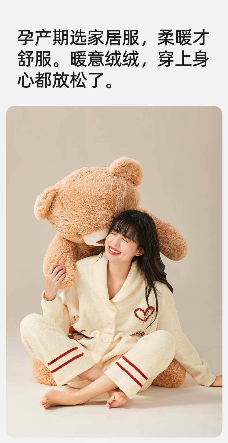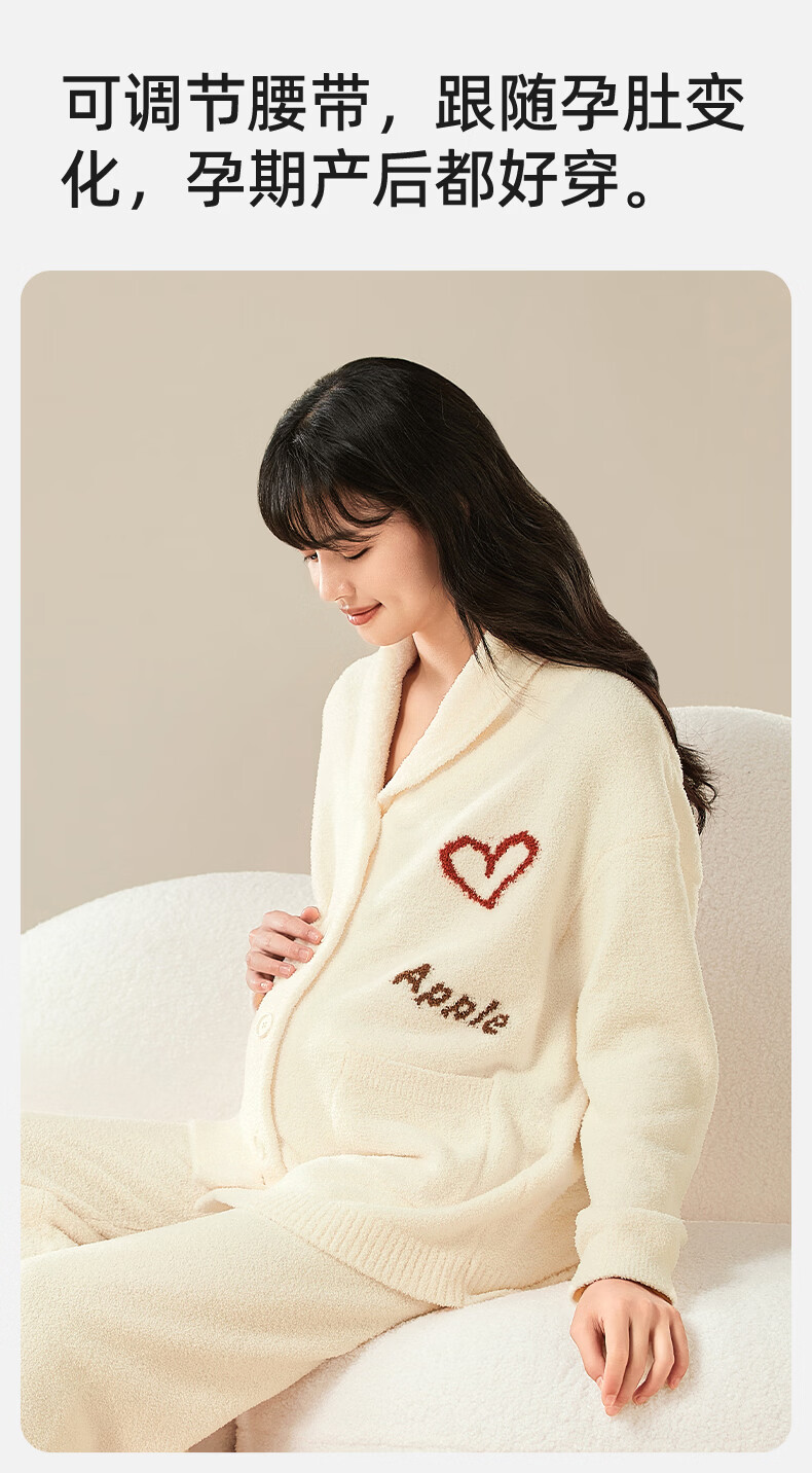 十月结晶秋冬季孕妇半边绒月子服保暖加厚加绒产妇哺乳睡衣产后家居服 晨曦米 M码