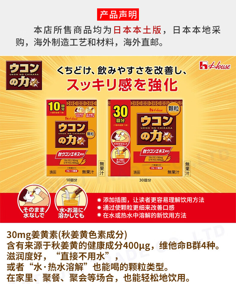 【JD物流 日本直邮】好侍(HOUSE)姜黄之力 姜黄素酒药酒茶肝脏保护 酒护肝 1盒30包正装