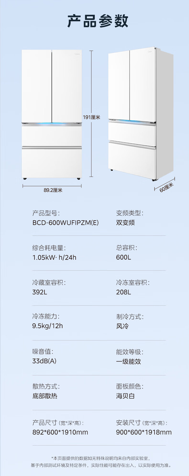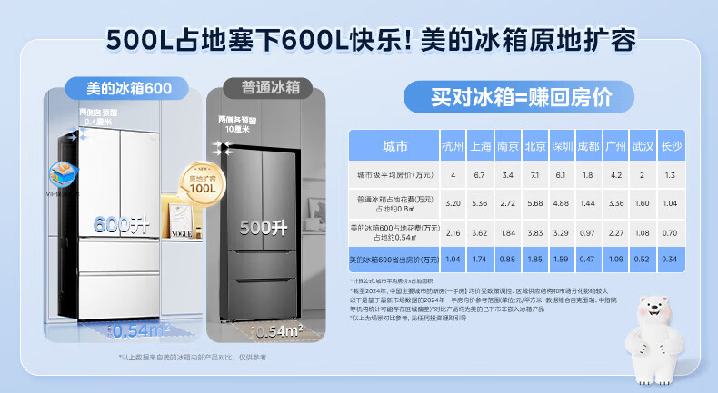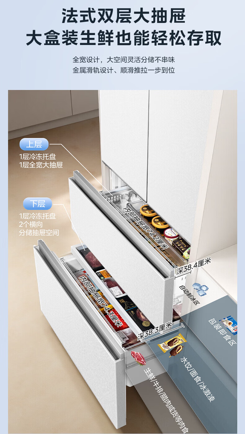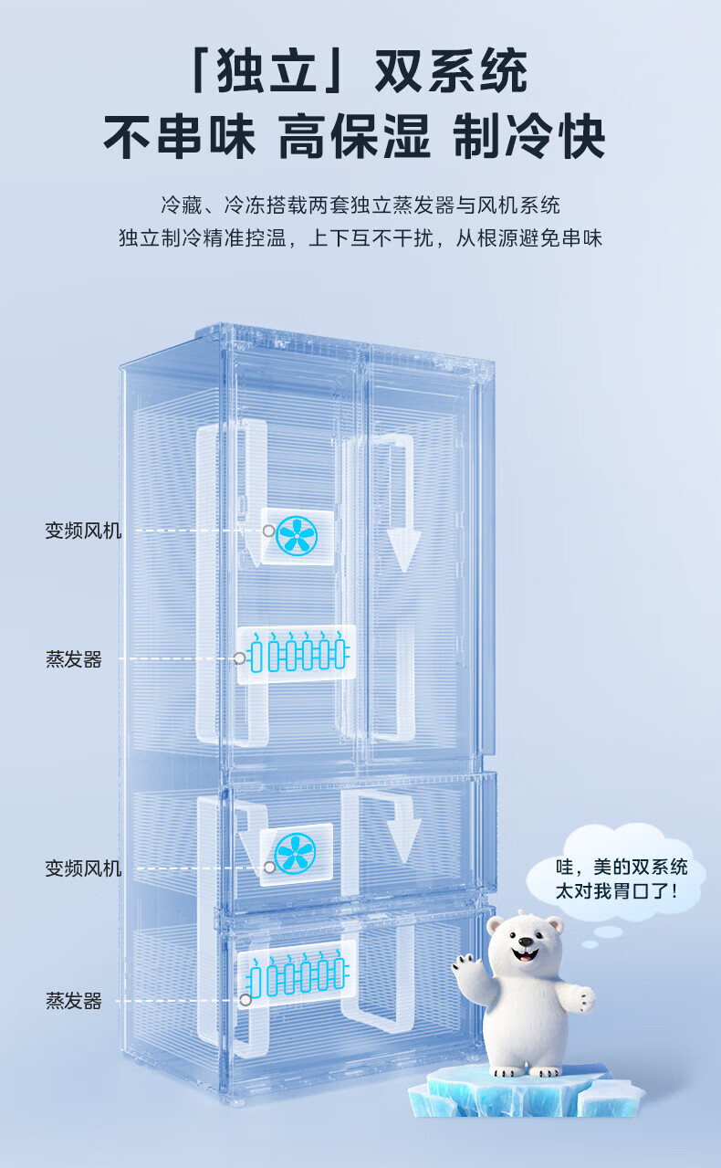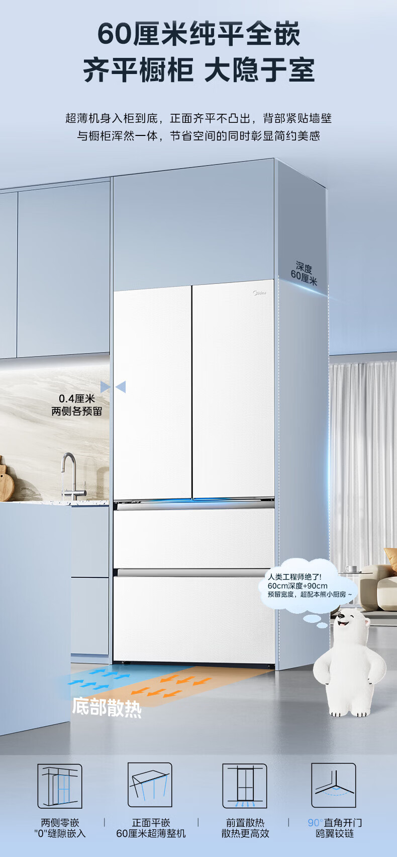 美的(Midea)熊墩墩Pro600L法式四开门冰箱超薄嵌入式双系统一级能效除菌制冰大容量 【熊墩墩600】行业功能顶配