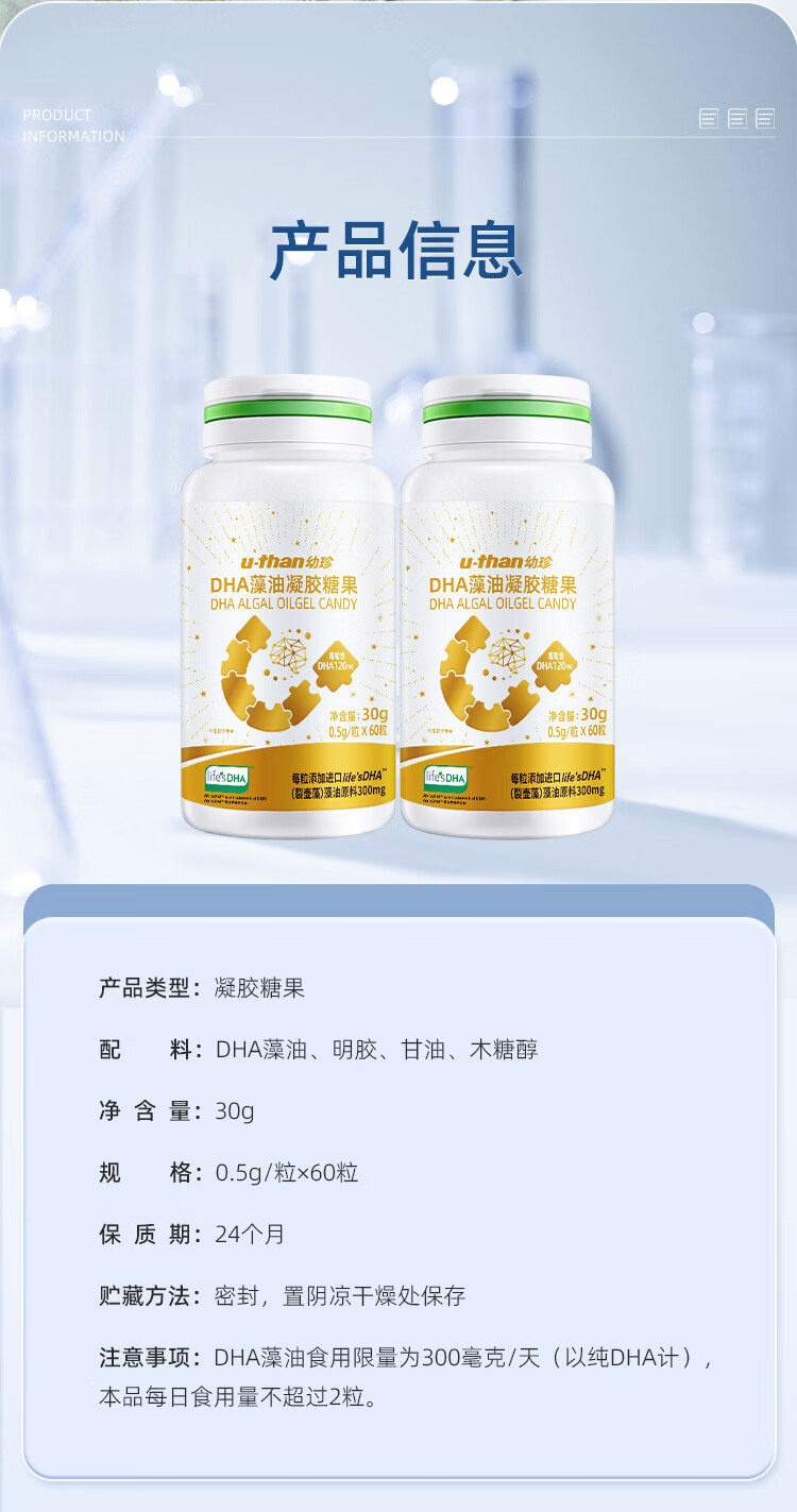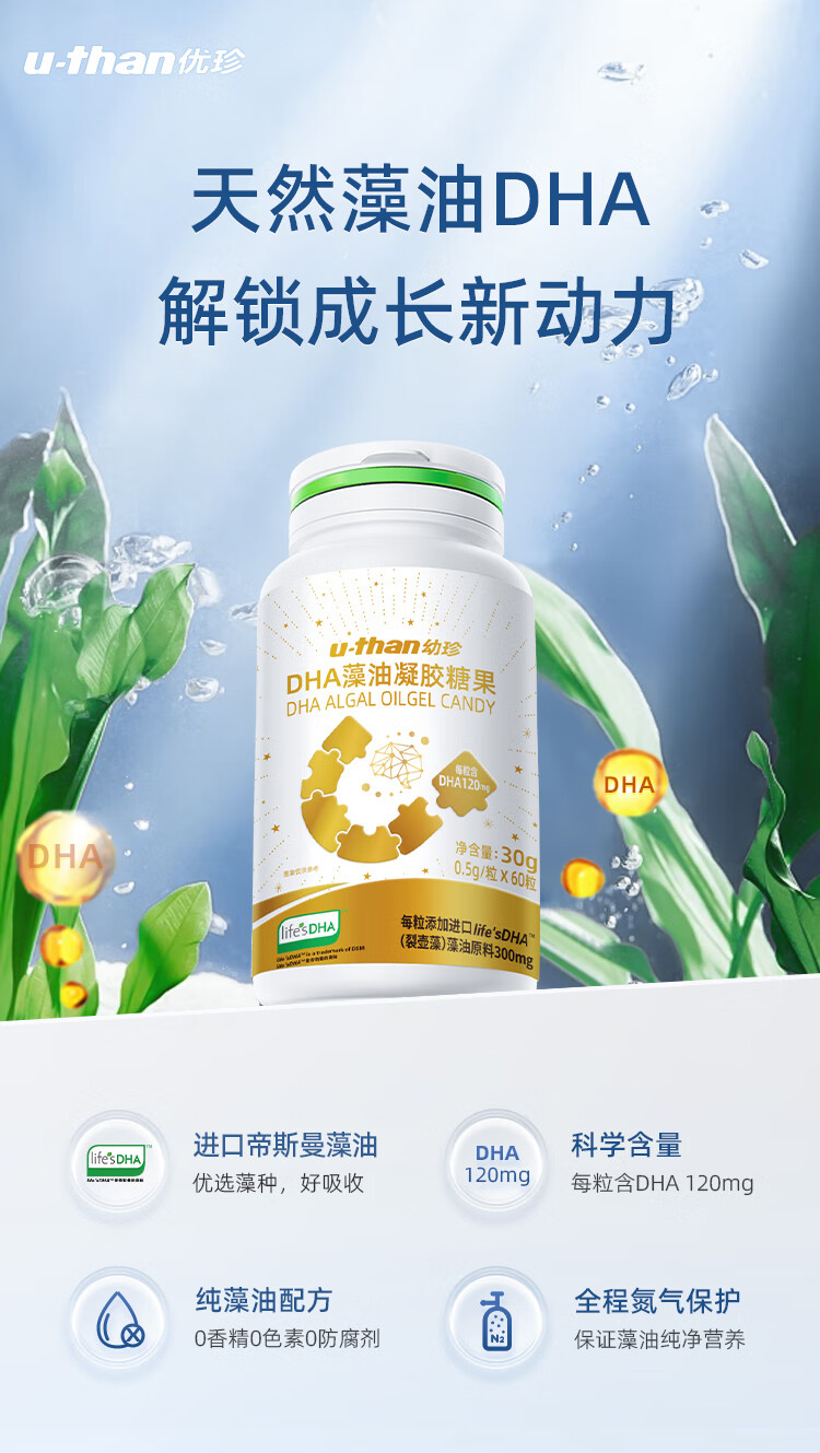 优珍进口藻油dha软胶囊60粒/瓶儿童宝宝海藻油青少年学生孕妇成人DHA 60粒*1瓶