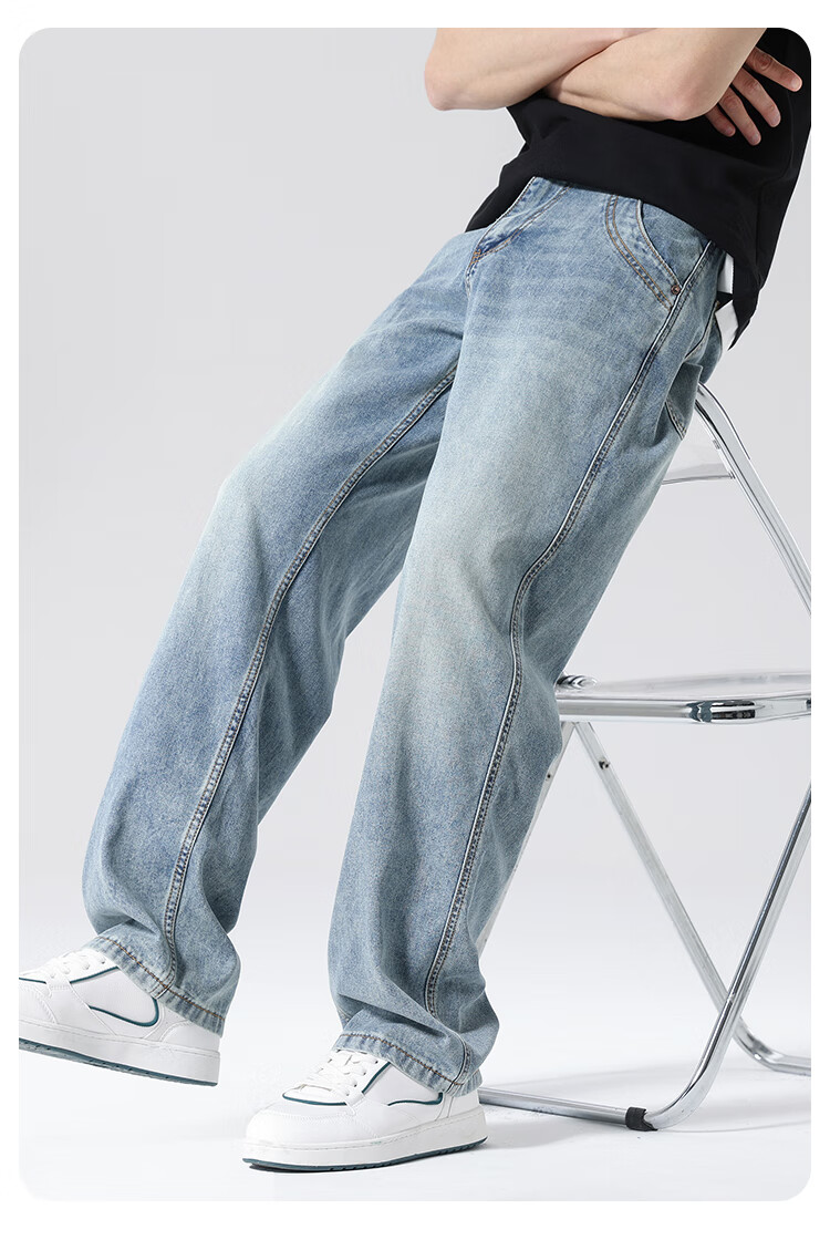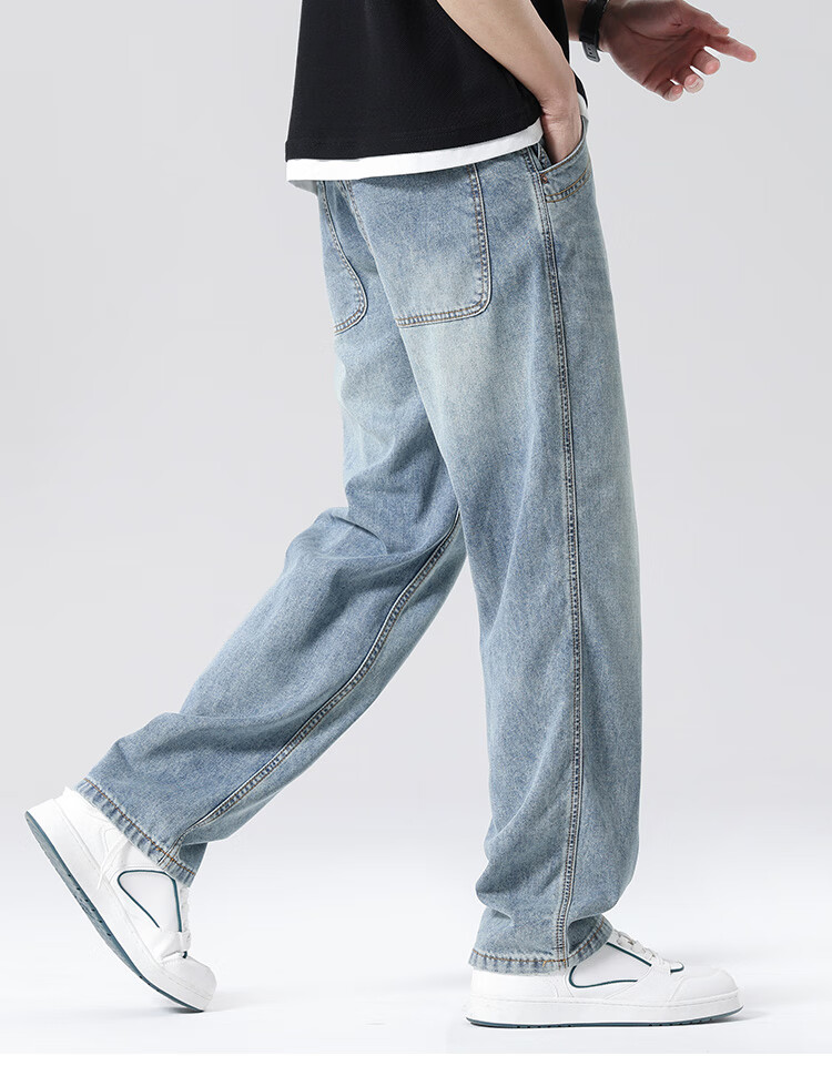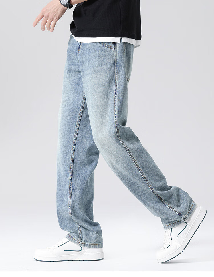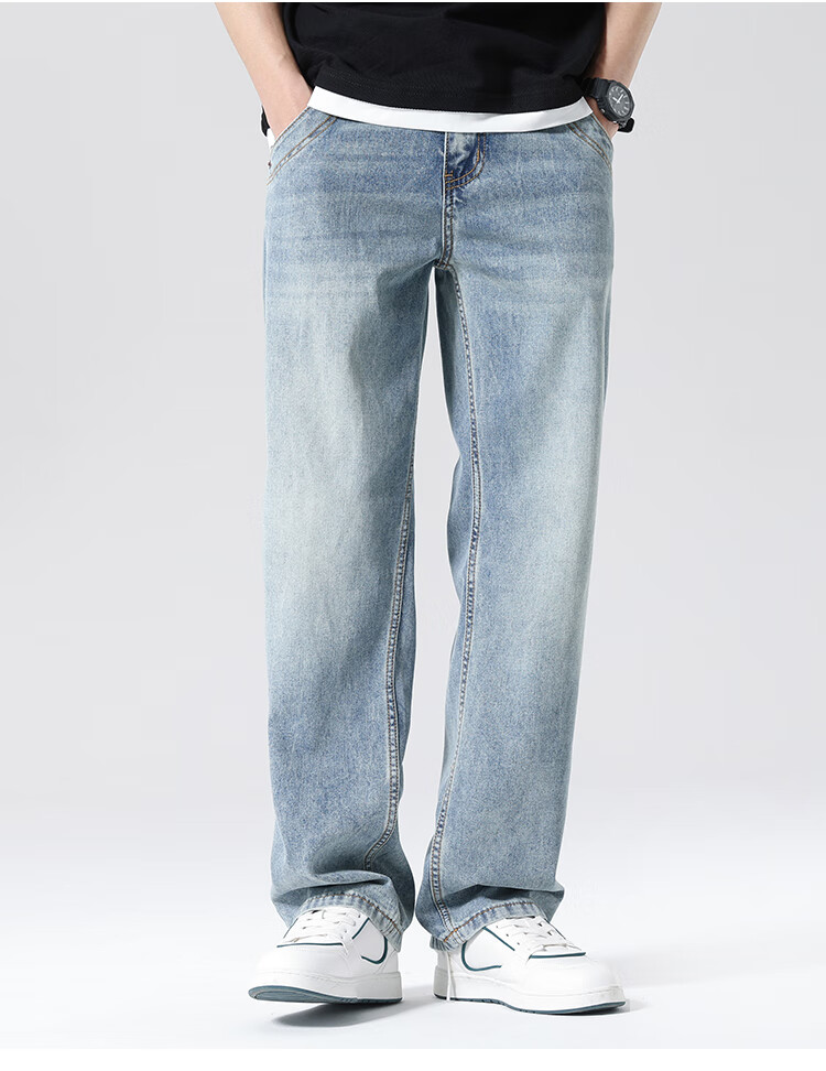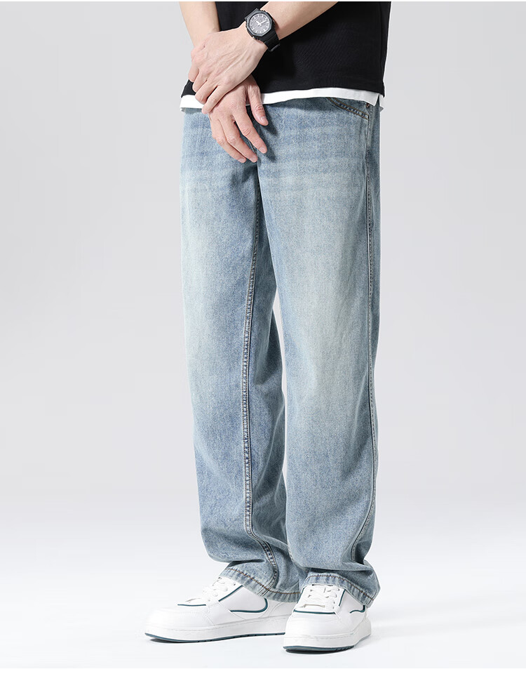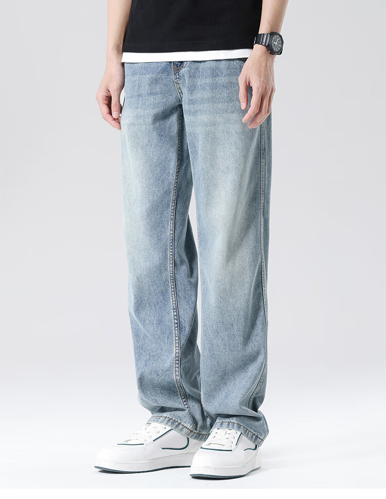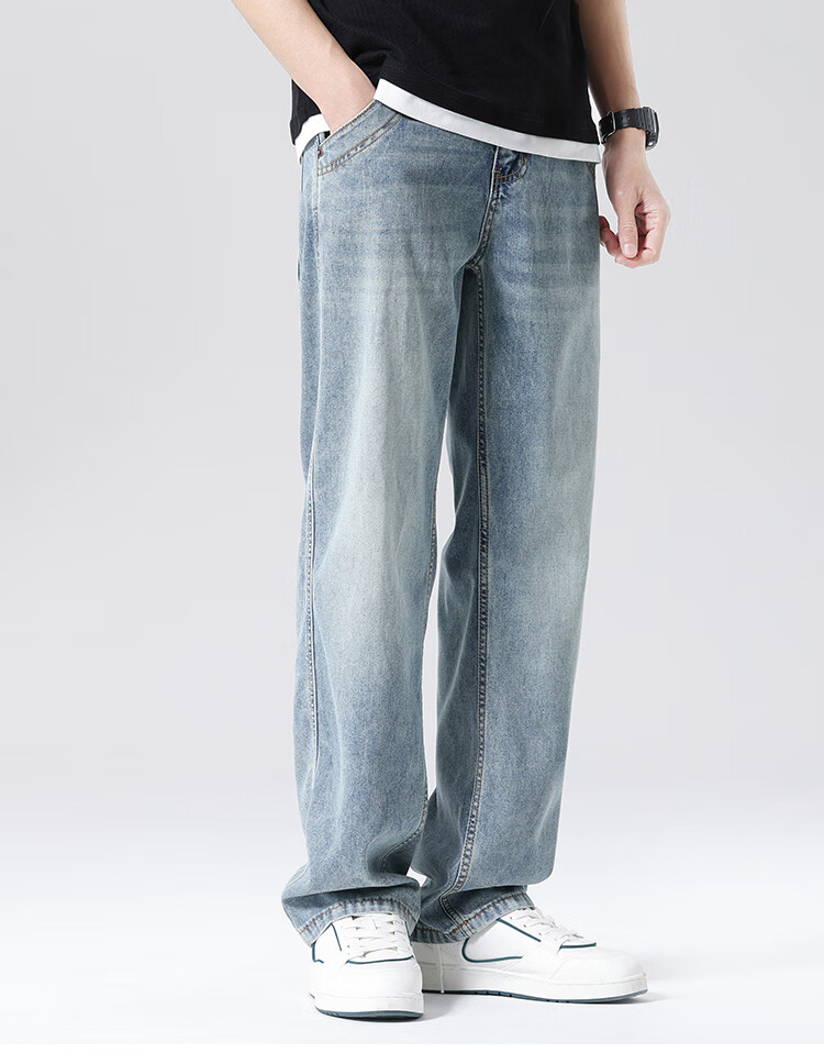 布衣传说 莱赛尔天丝棉 阔腿薄牛仔裤子男款宽松直筒拖地休闲长裤 蓝色 33