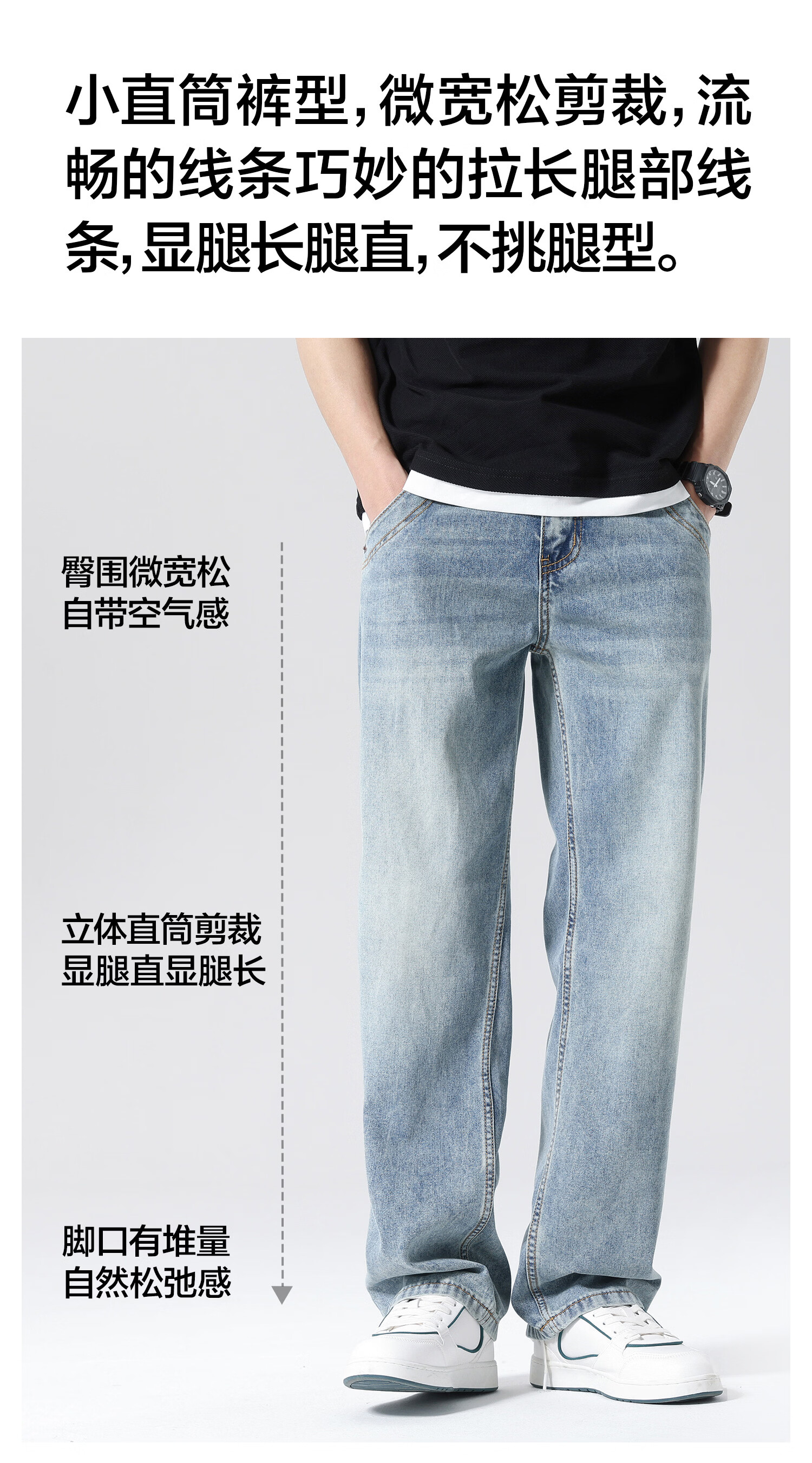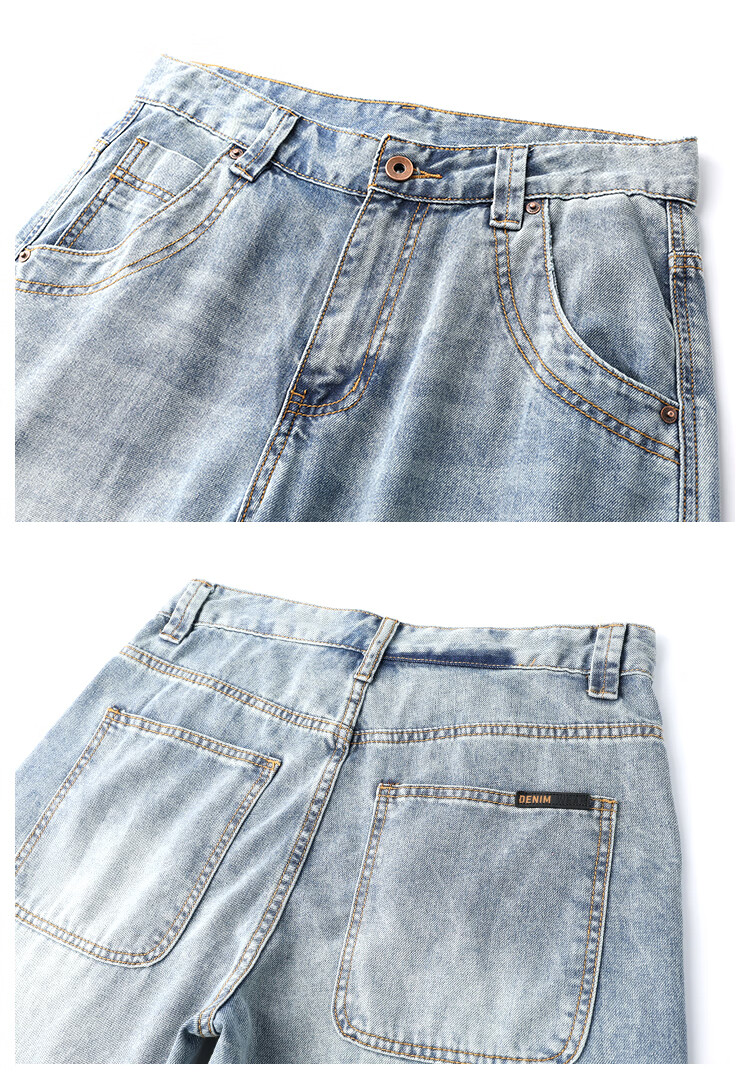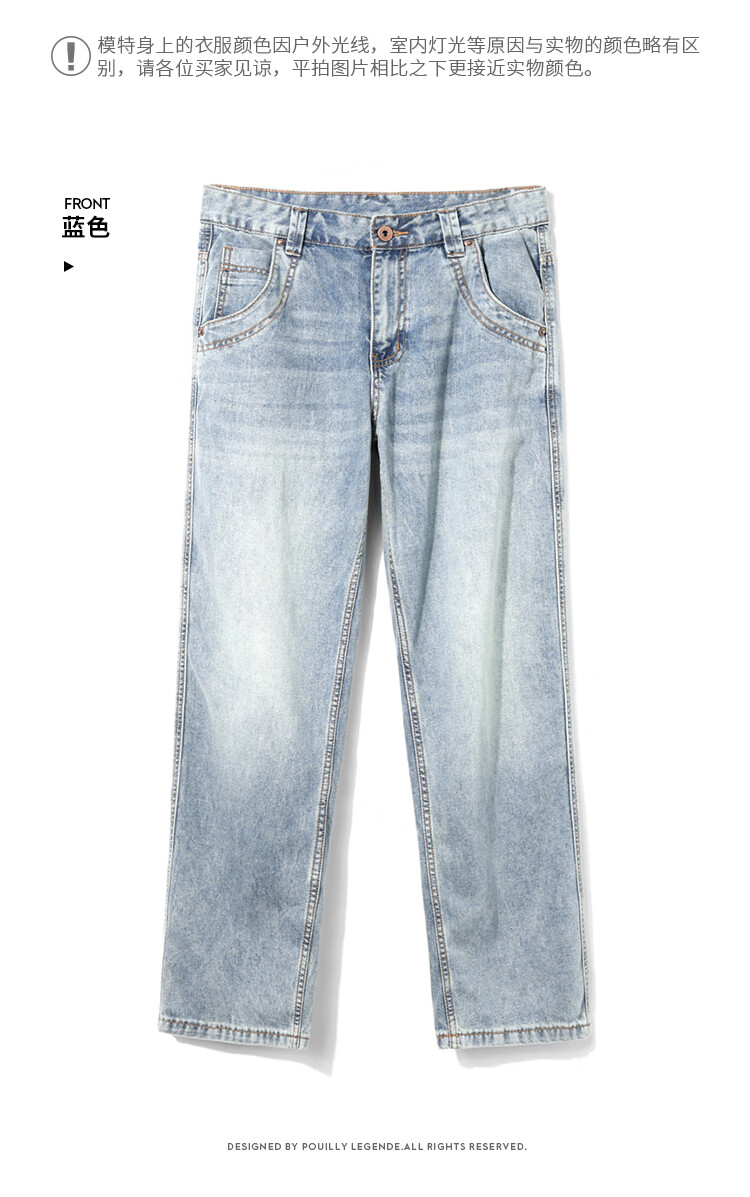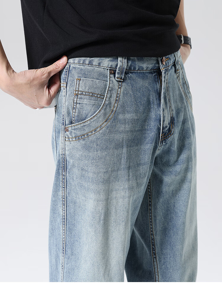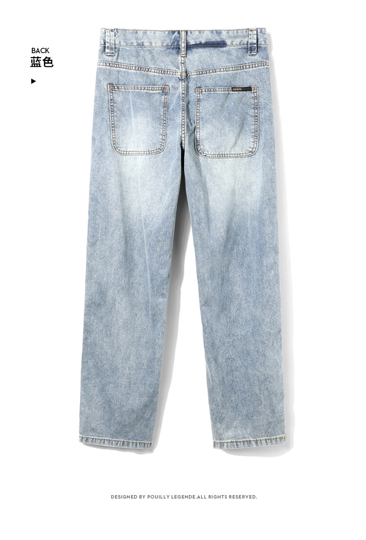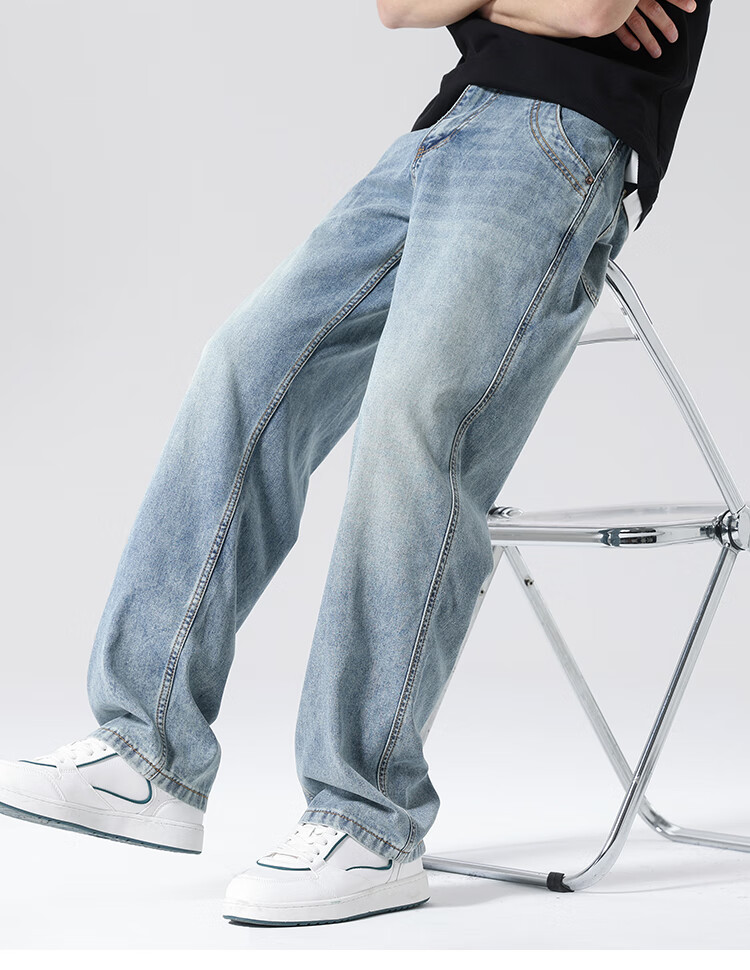 布衣传说 莱赛尔天丝棉 阔腿薄牛仔裤子男款宽松直筒拖地休闲长裤 蓝色 33