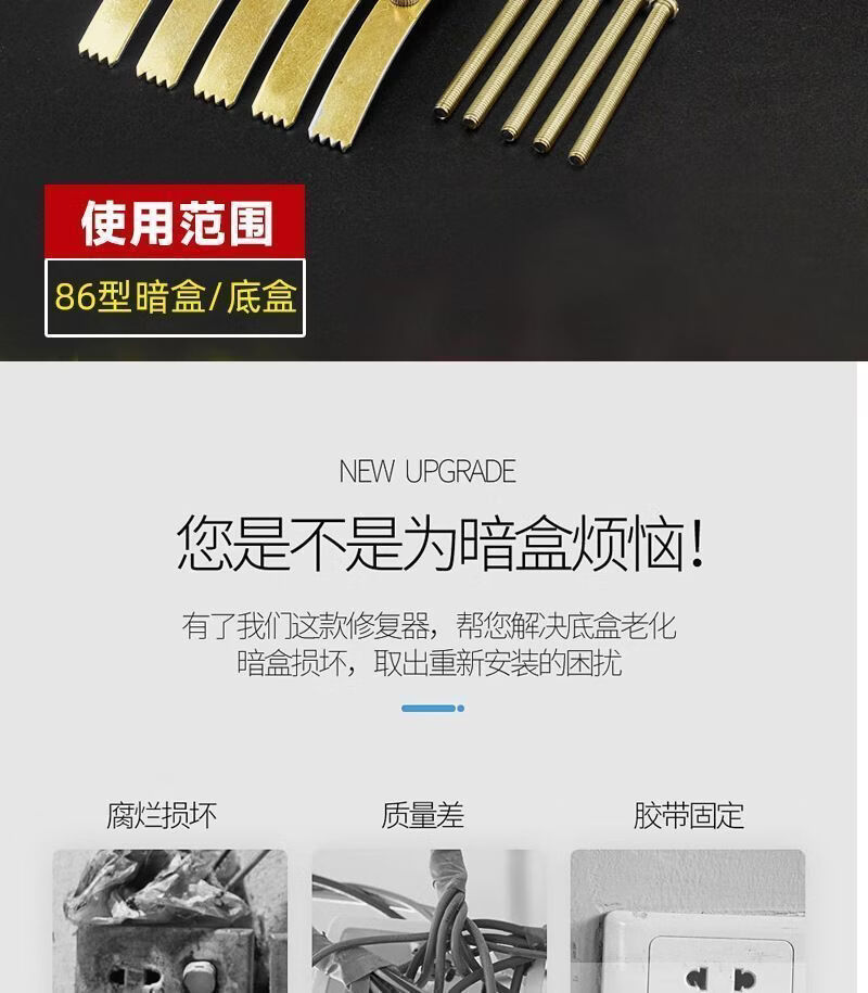 何佳功86型暗盒修复器开关插座通用固定线盒修补救底盒损坏修理卡片 20个钢片配螺丝