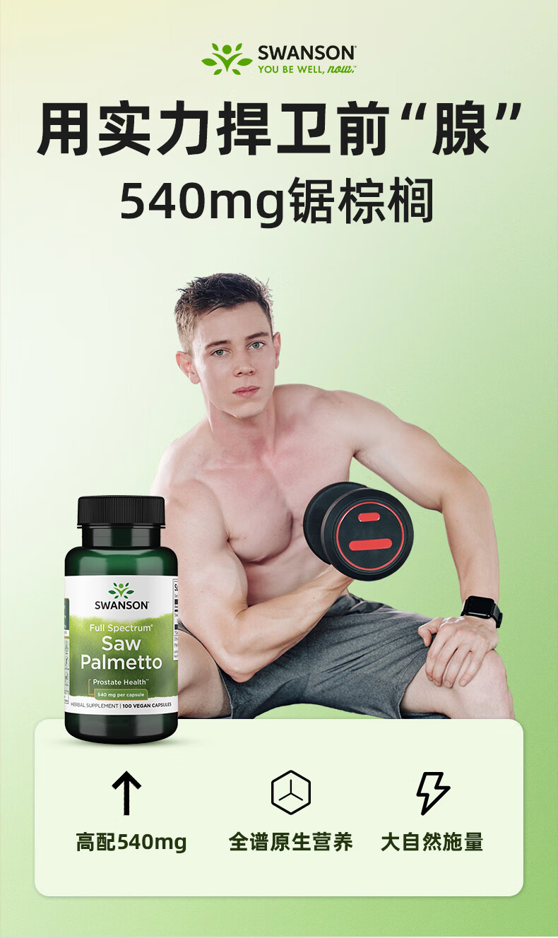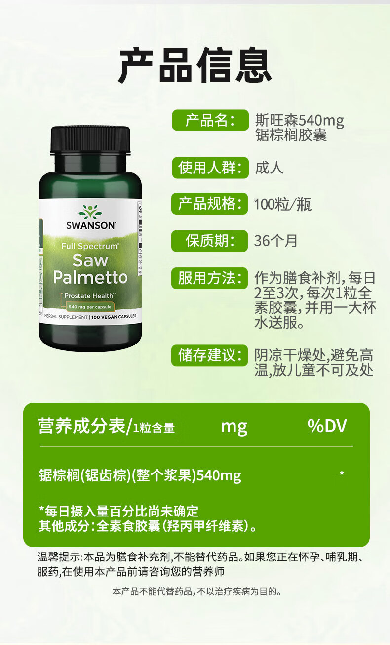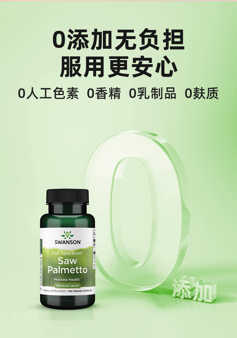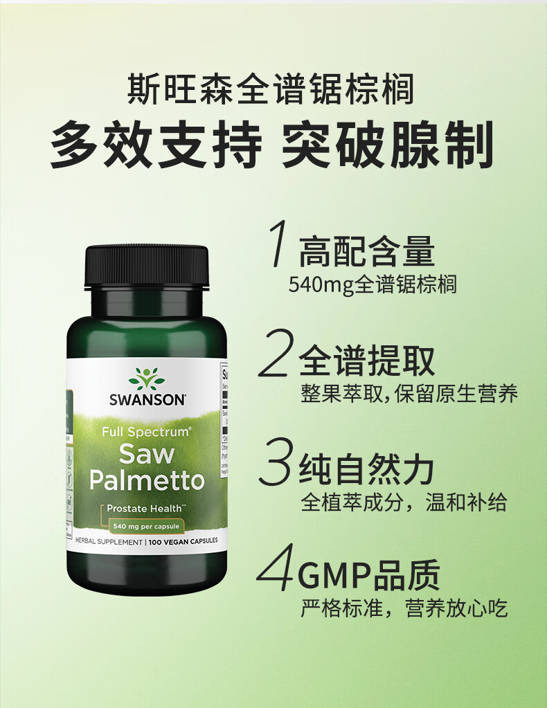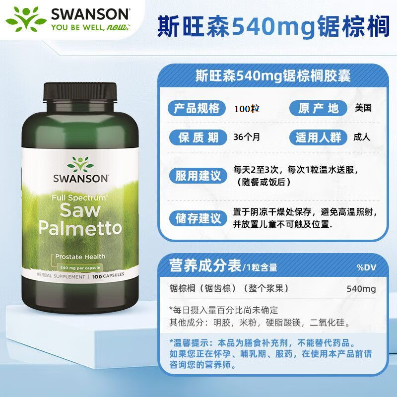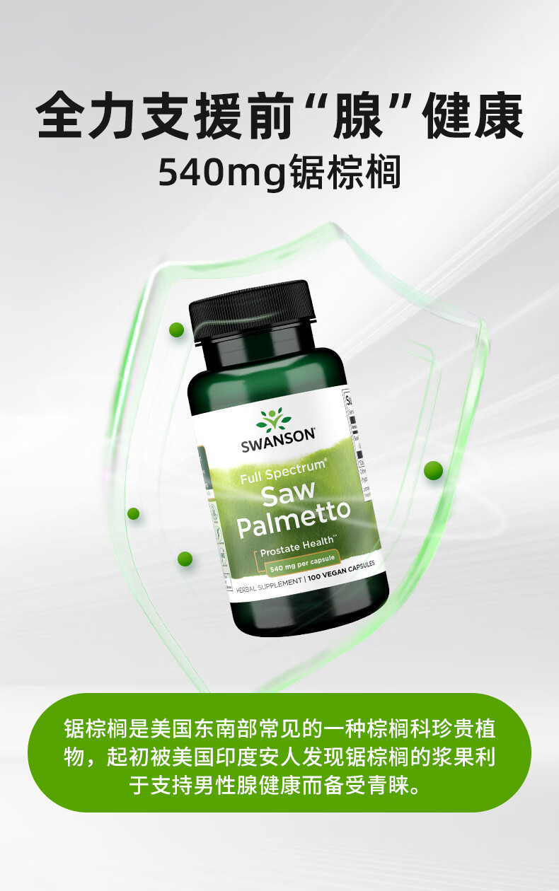 斯旺森(SWANSON)全光谱锯棕榈胶囊540mg前列腺健康 100粒/瓶