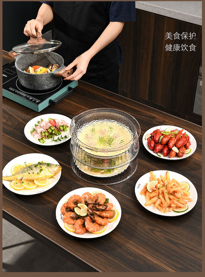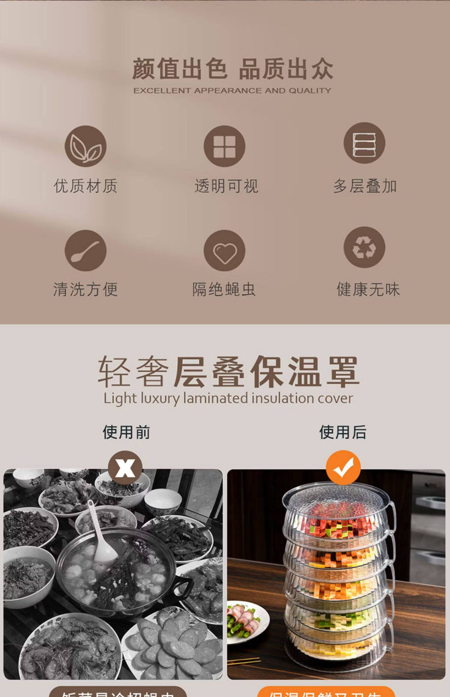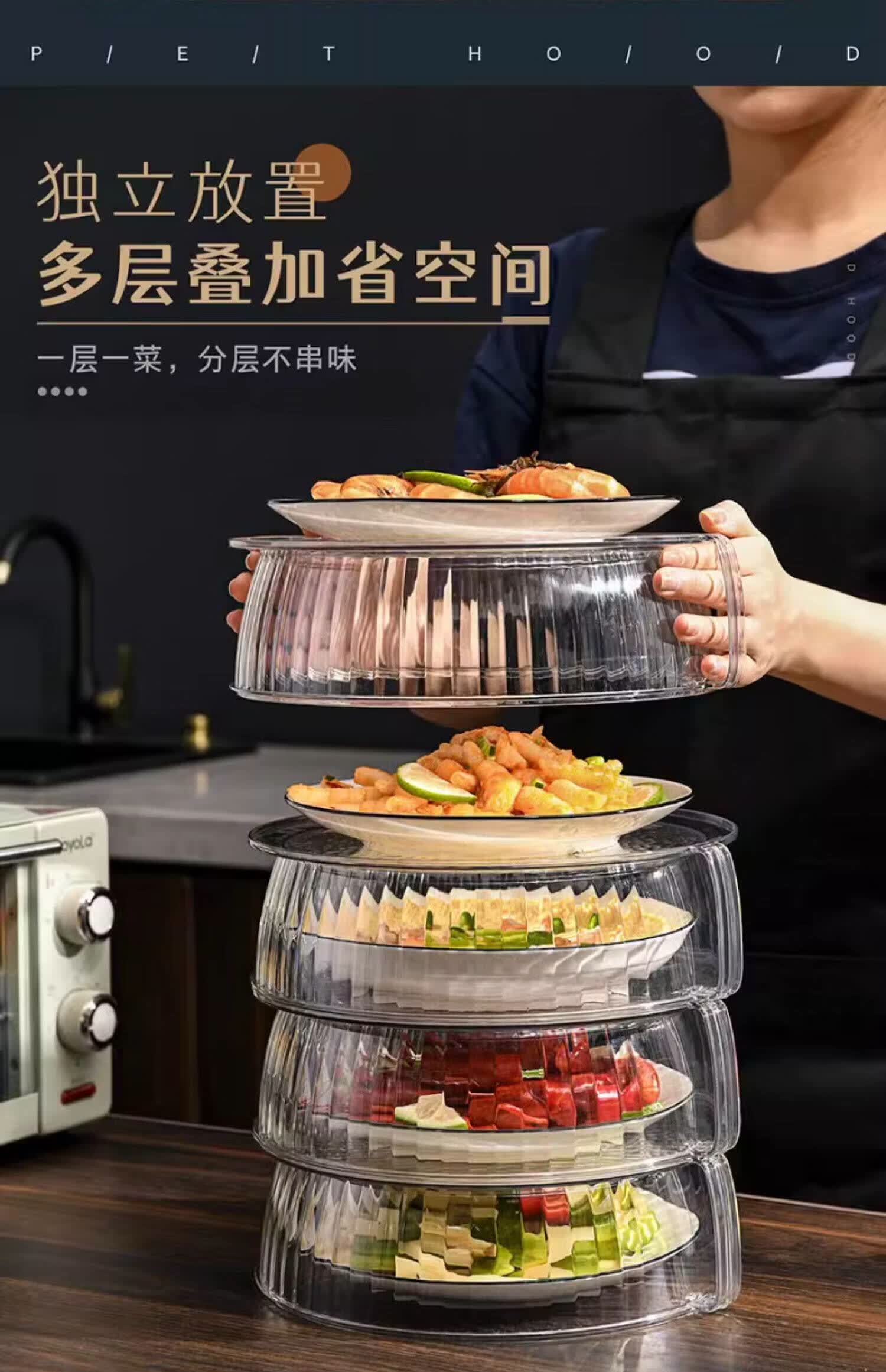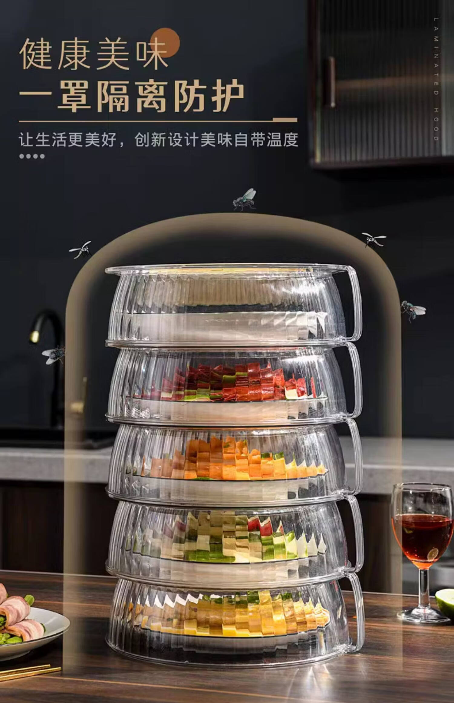 艾仕可(ASCOR)保温盖菜罩家用厨房神器餐桌罩饭菜罩盖防尘遮剩菜食物多层收纳架 五层高款 透明【食品级材质/防尘保温】