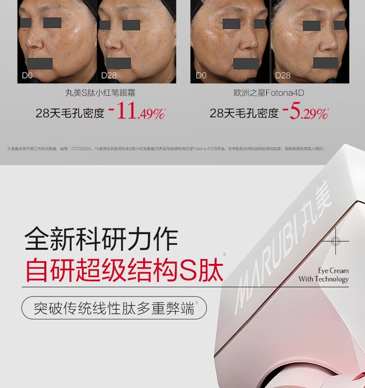 丸美眼霜 S肽小红笔眼霜30g紧致抗皱淡纹淡化黑眼圈带按摩头生日礼物